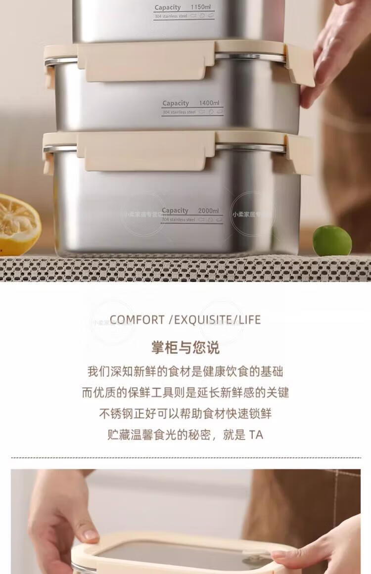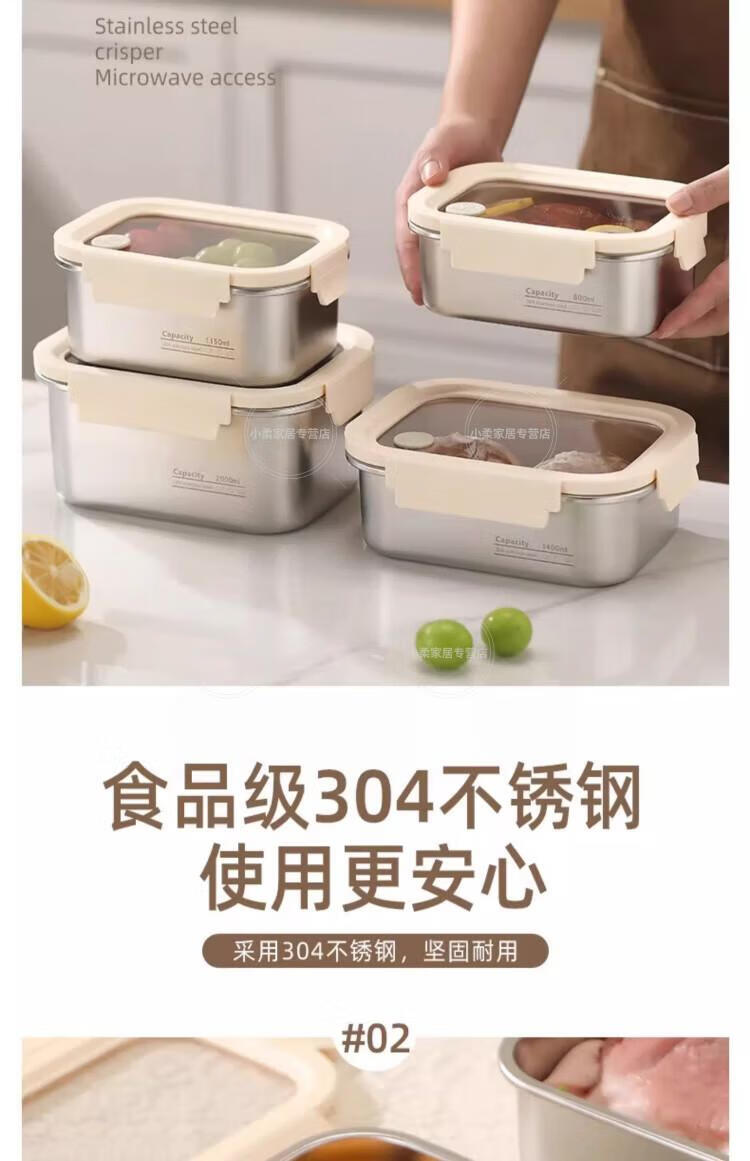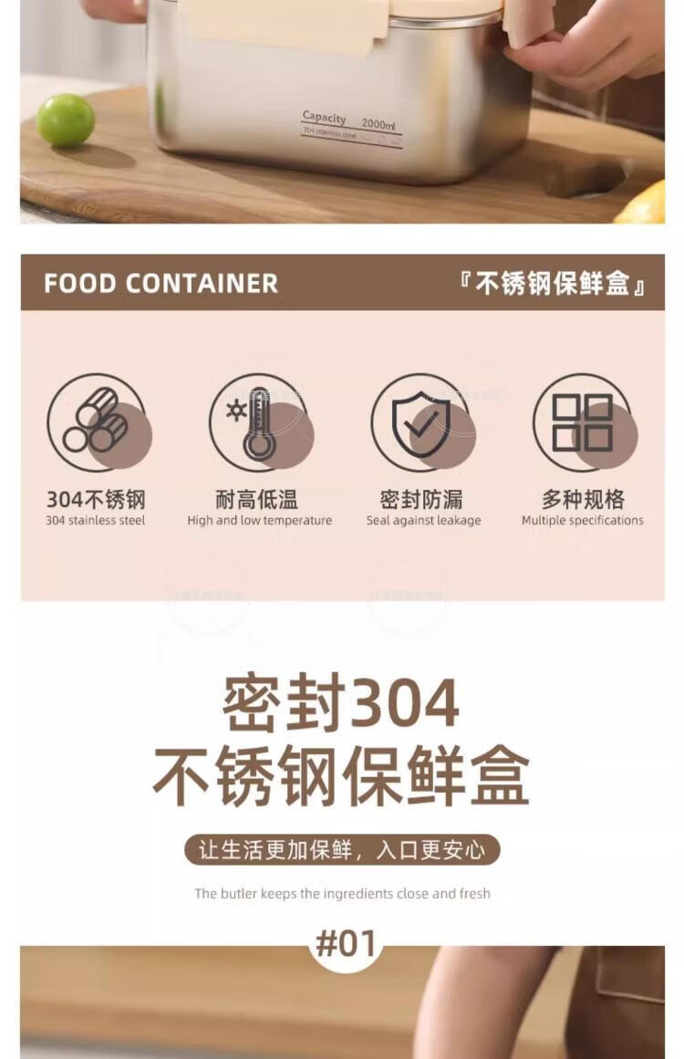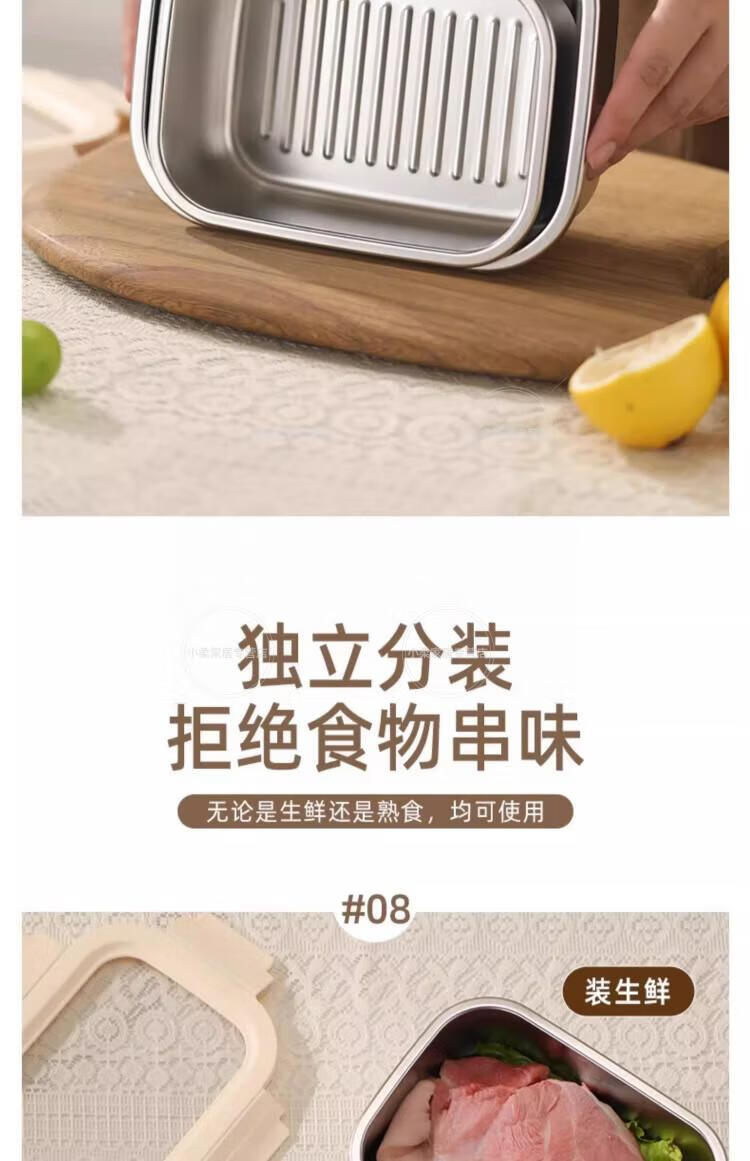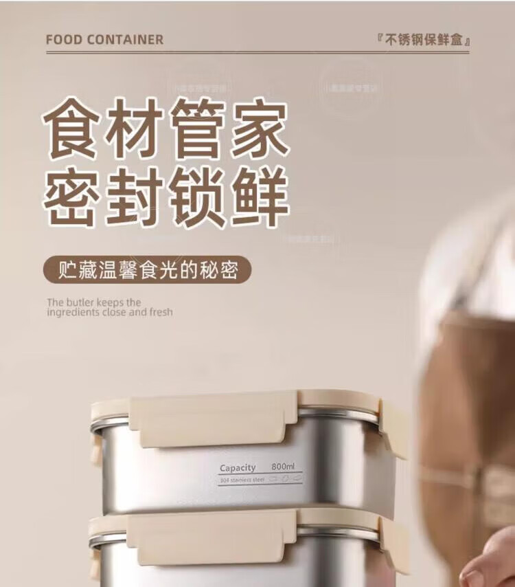 WCZ德国上班族专用不锈钢带饭盒可微波炉加热食品级便当盒轻便餐盒保 【食品级304不锈钢饭盒】 800ml