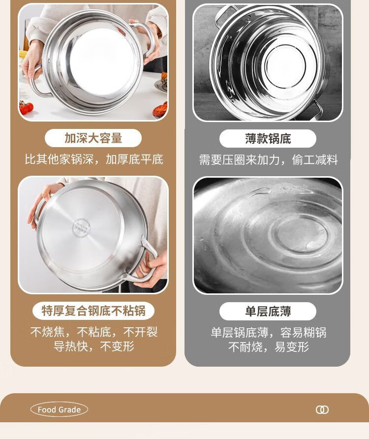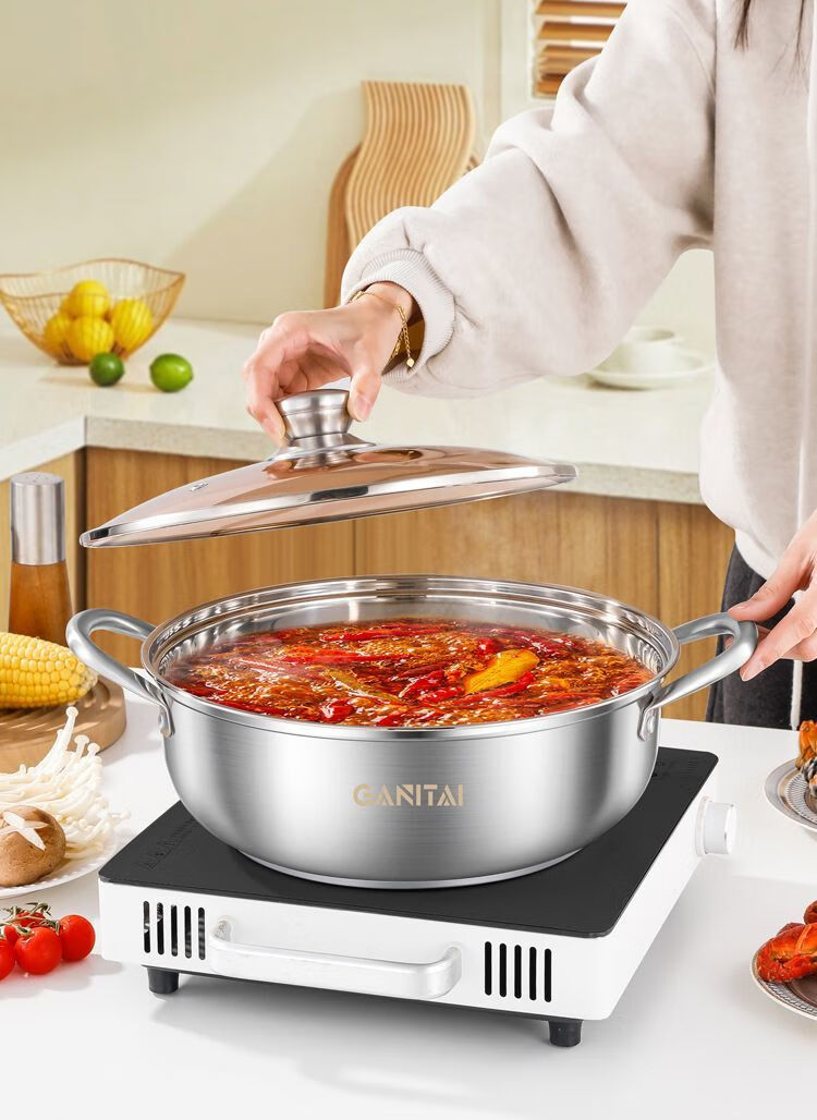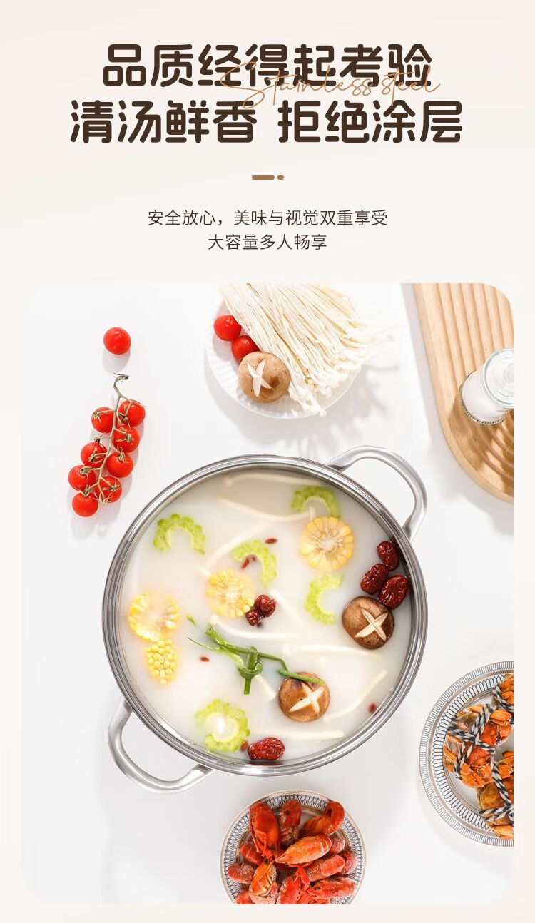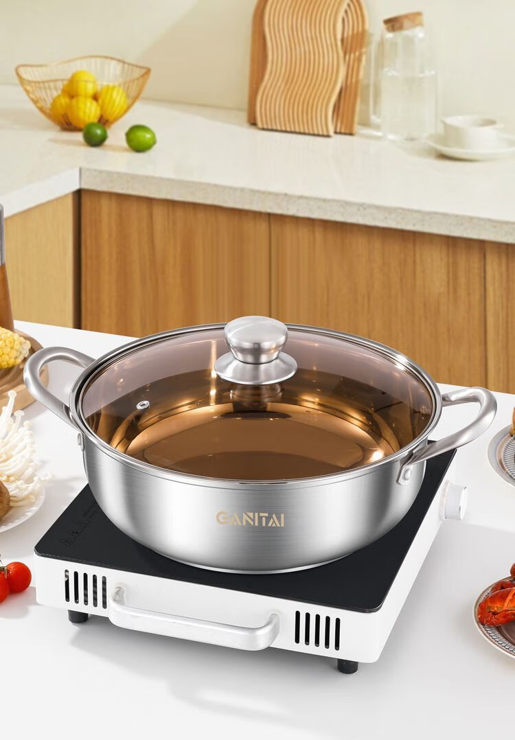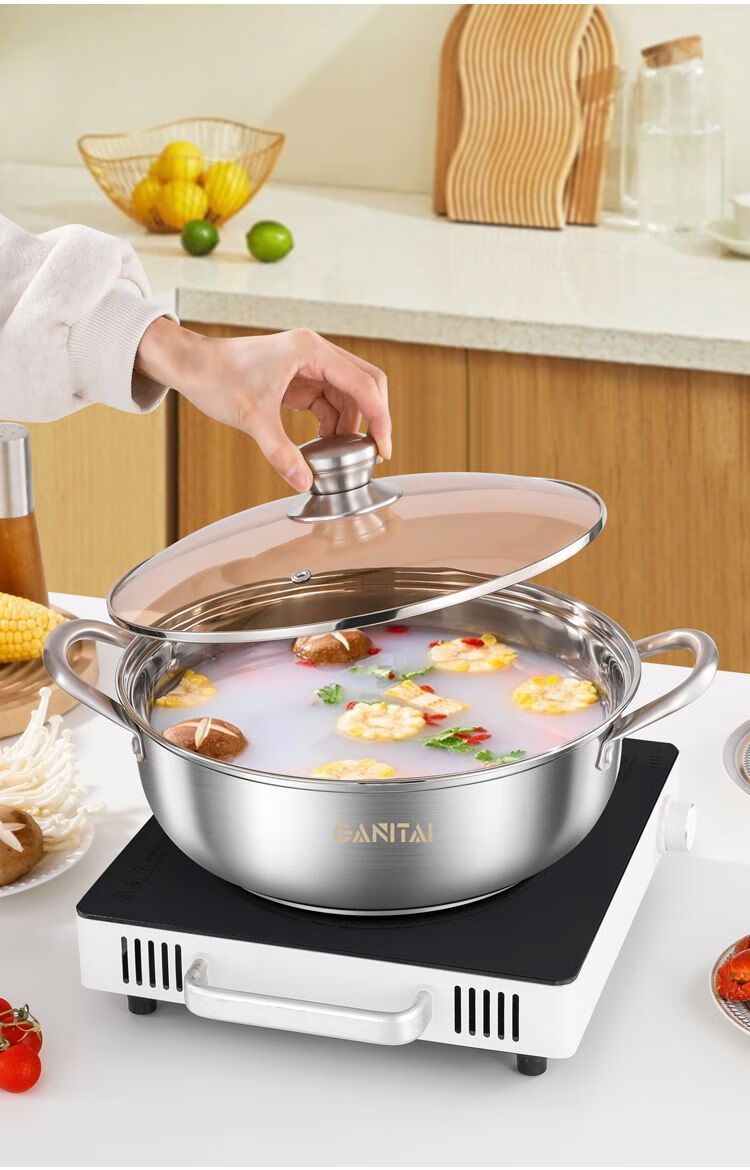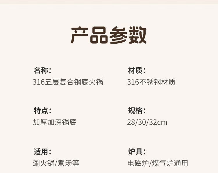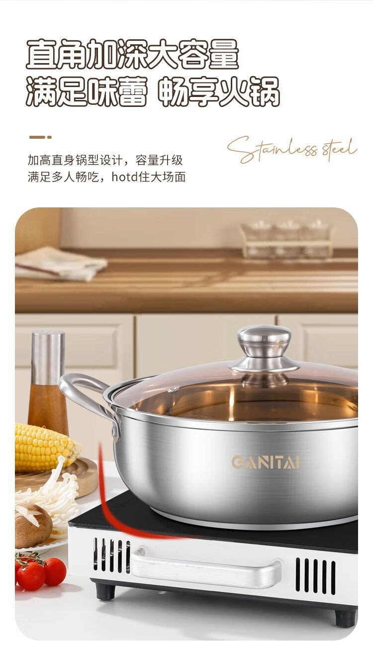 简漾316不锈钢火锅锅特厚加大加深汤锅家用大容量火锅燃气电磁炉通用 316五层复合钢底【平底0涂层】带盖 1英寸 旗舰版-28cm