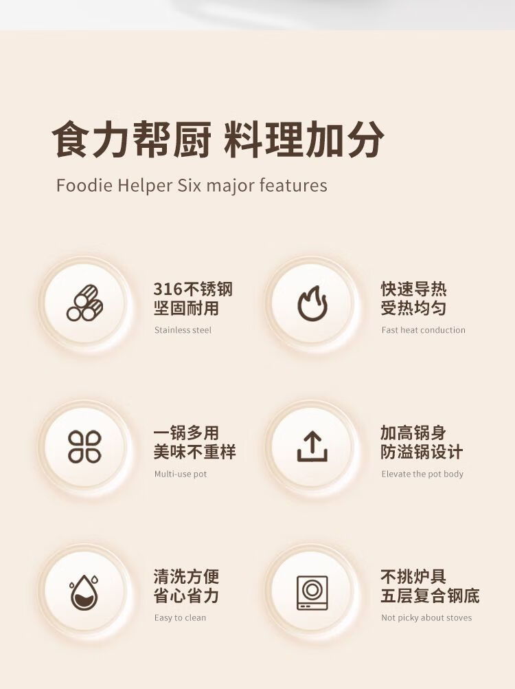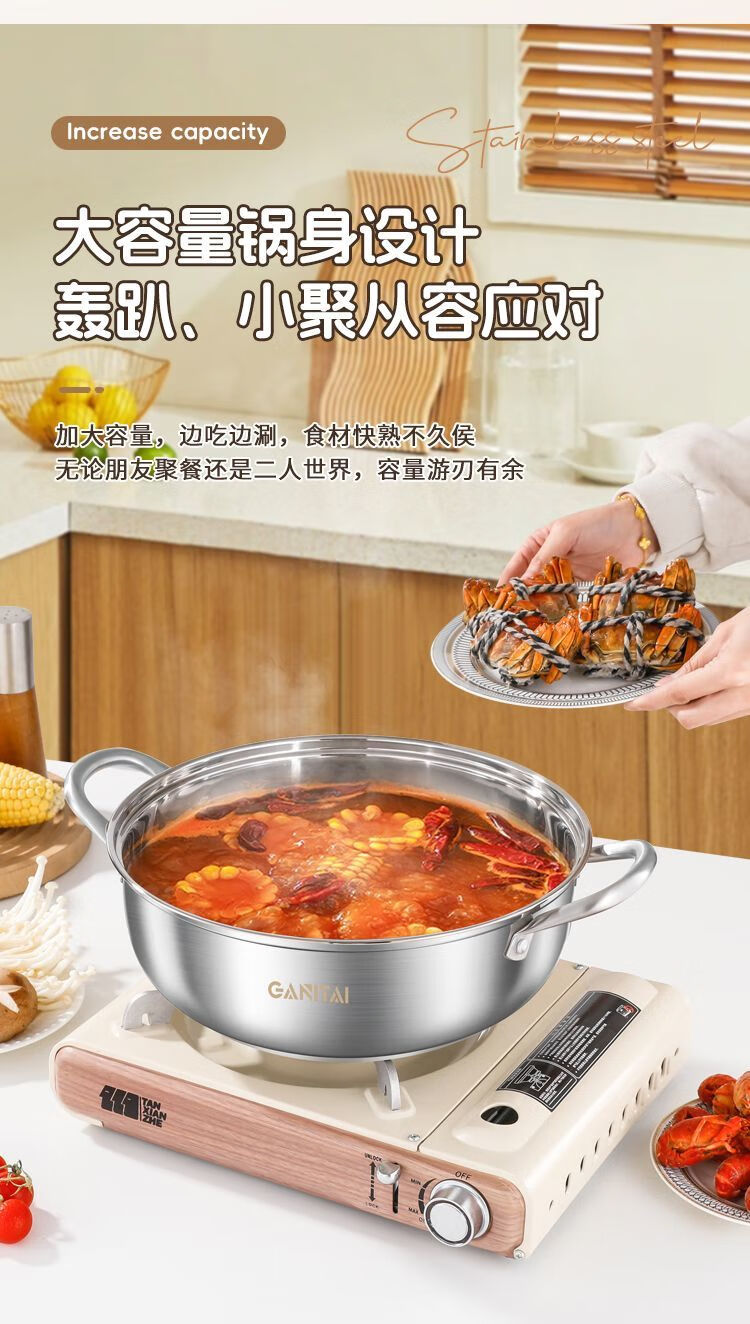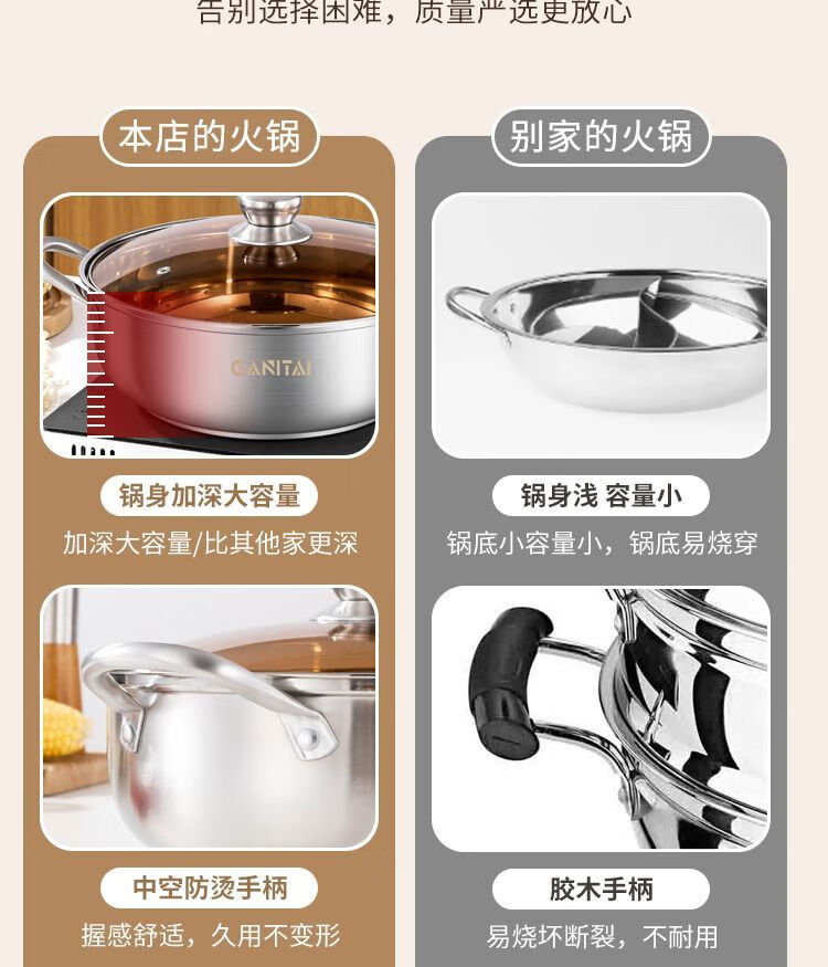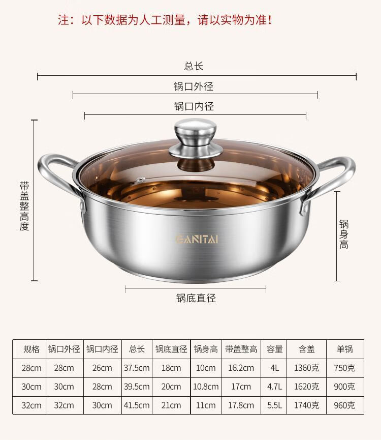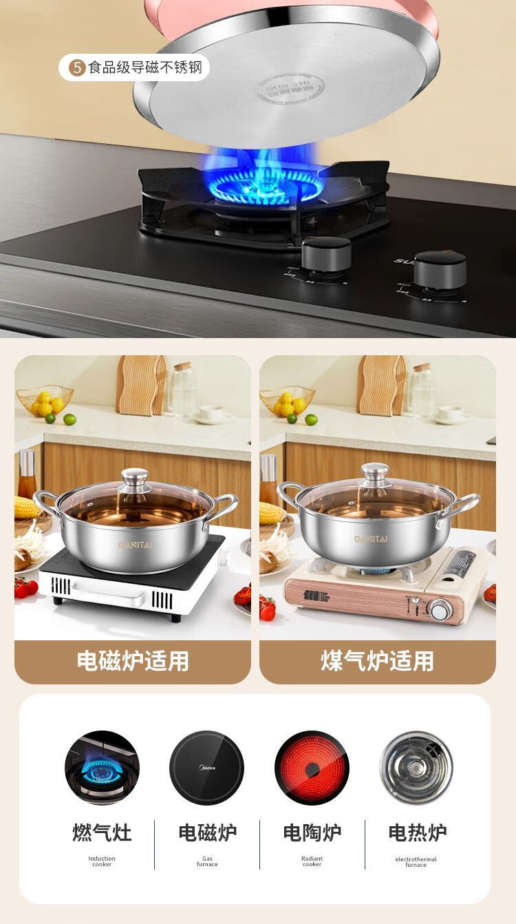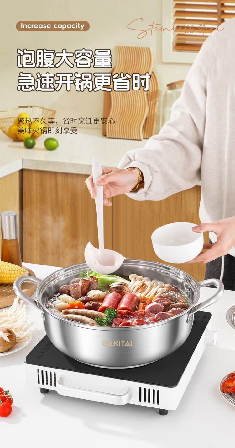 简漾316不锈钢火锅锅特厚加大加深汤锅家用大容量火锅燃气电磁炉通用 316五层复合钢底【平底0涂层】带盖 1英寸 旗舰版-28cm