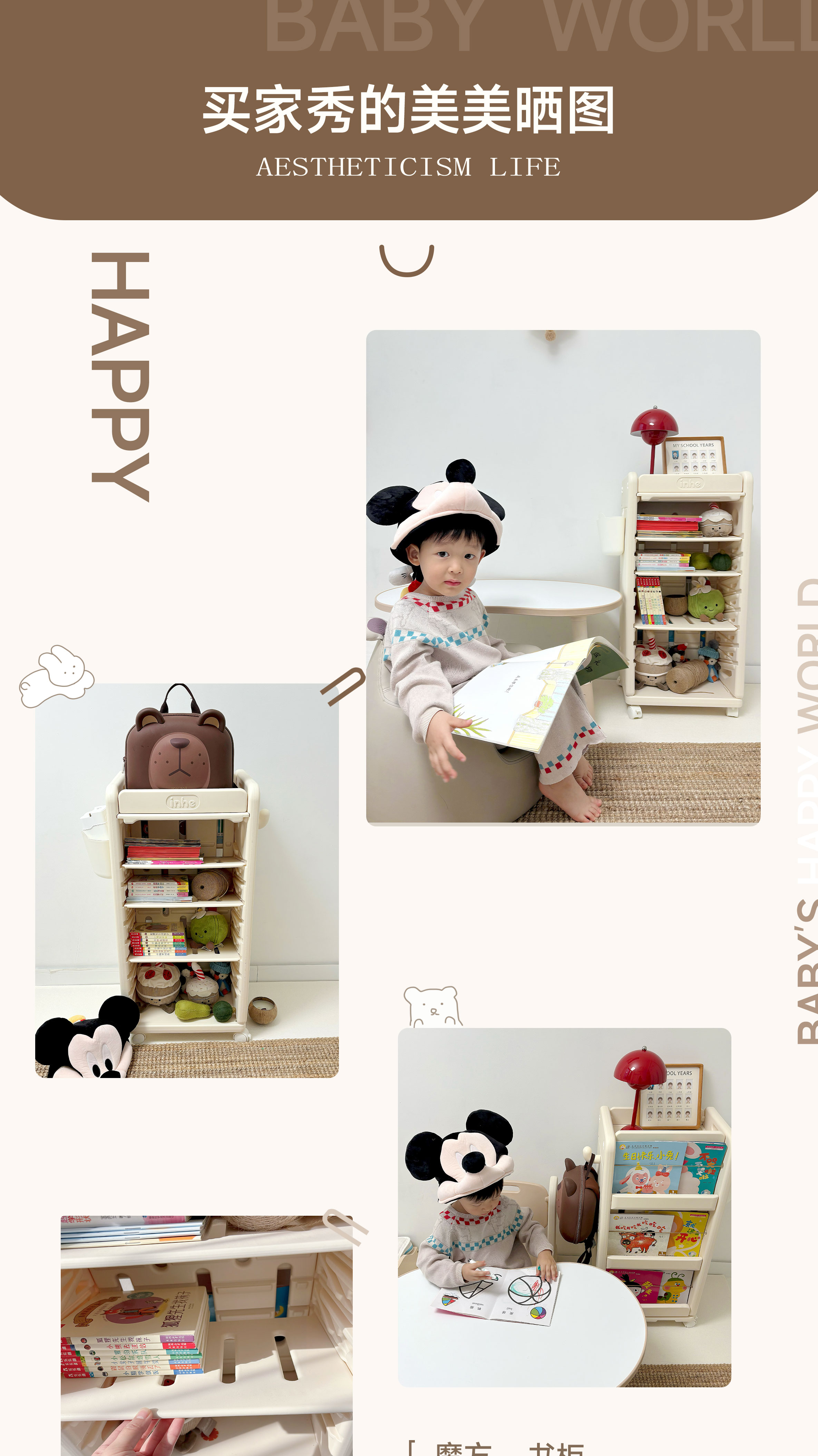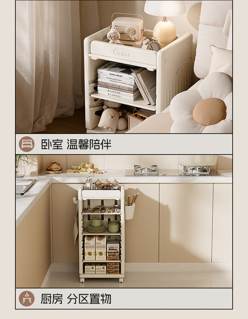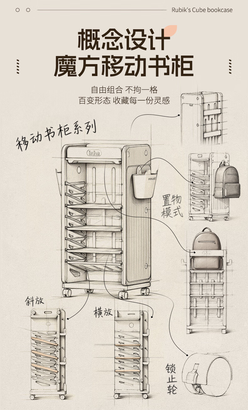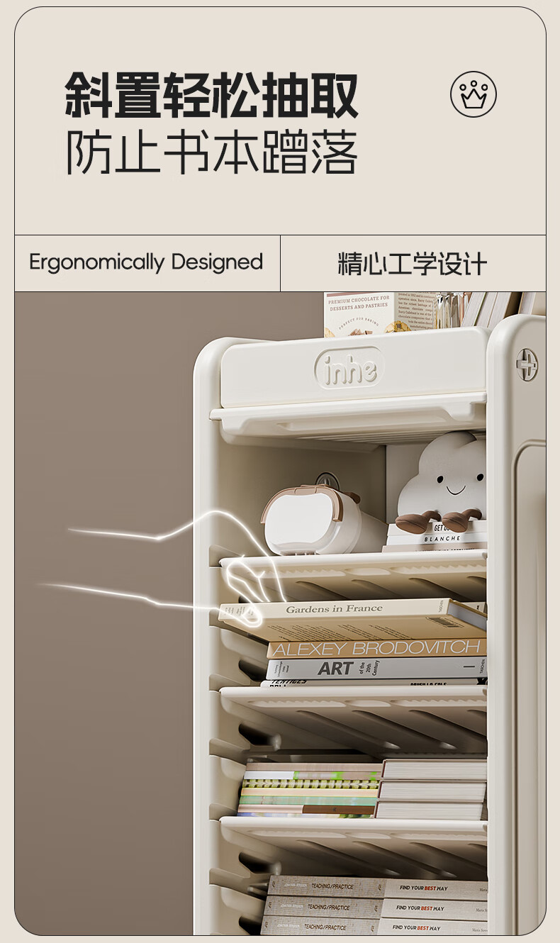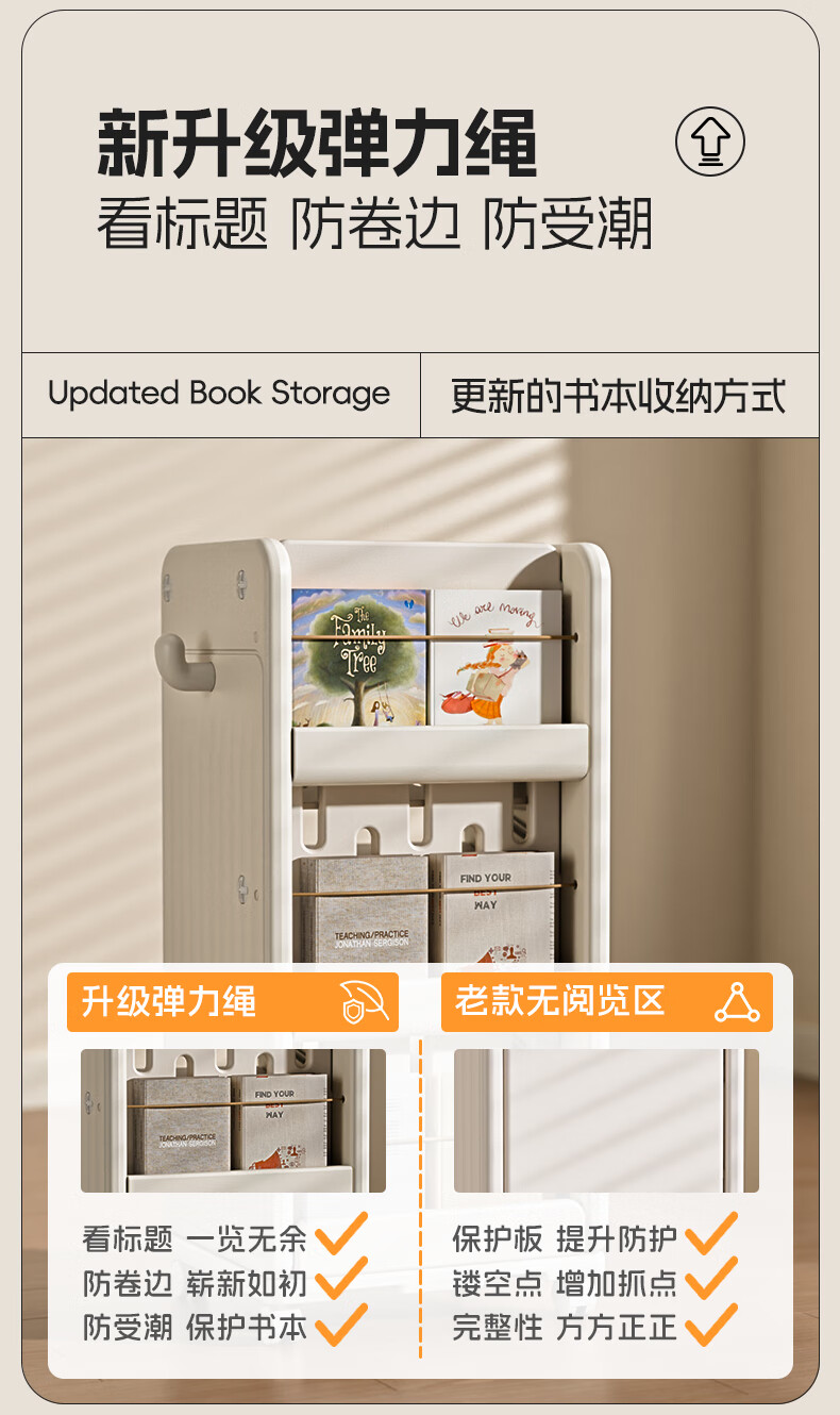 英禾儿童书架落地书包柜储物可移动小推车学习书本收纳神器简易书房 暮云灰-高款【横斜卡槽专利-顶板可移动】赠挂钩+挂盒