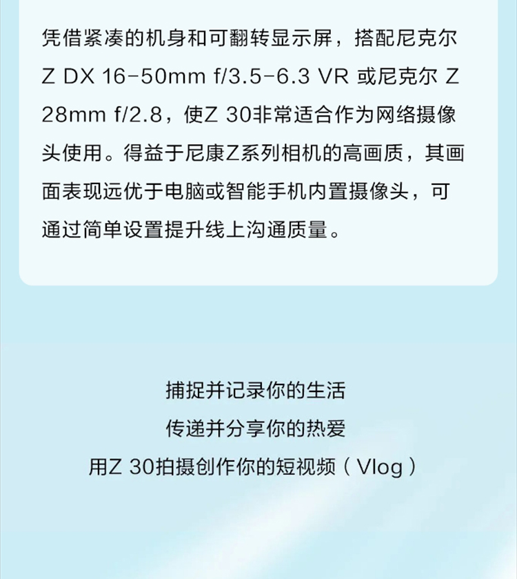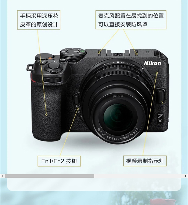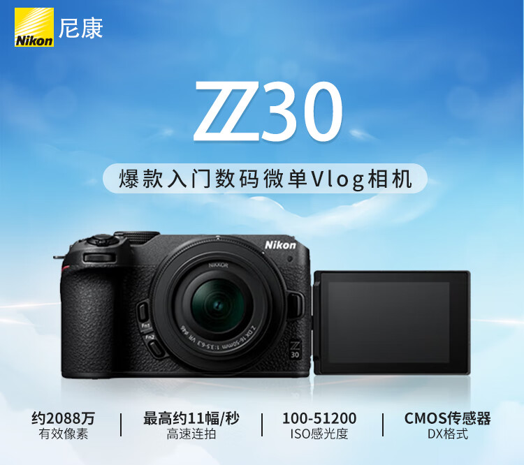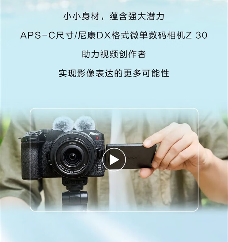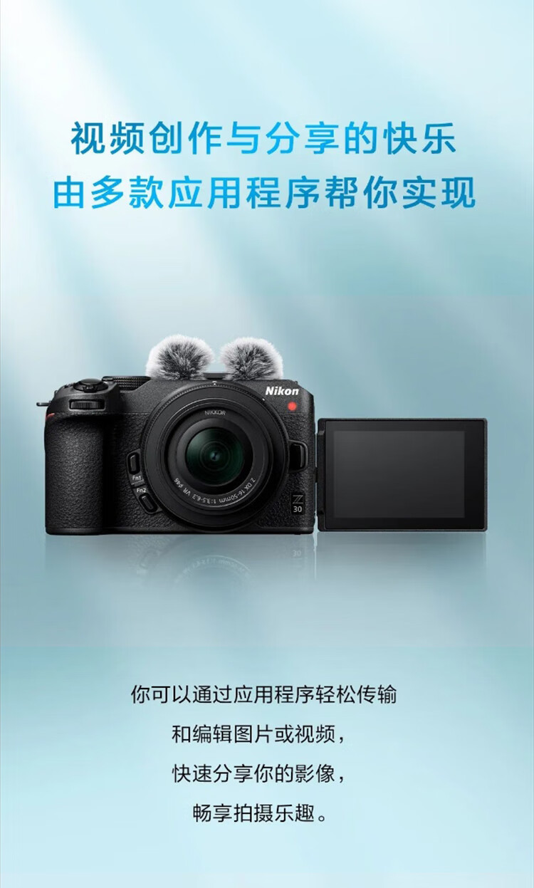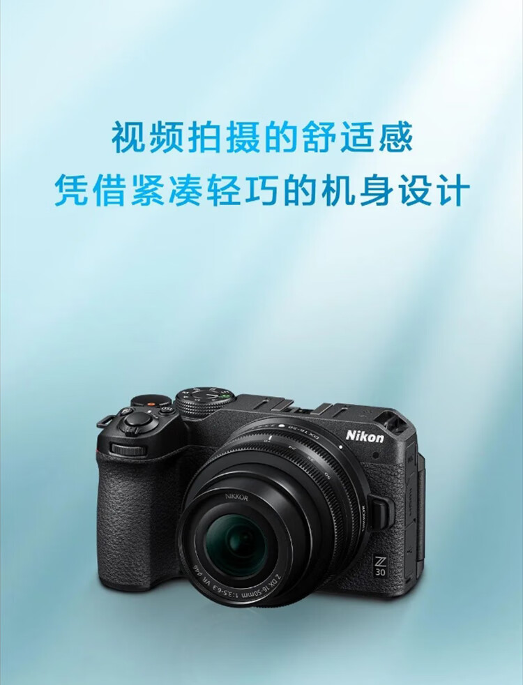 尼康(Nikon)z30入门级微单相机 Vlog自拍旅游4K高清数码照相机 小白学生家用 Z30(16-50 + 50-250) 官方标配