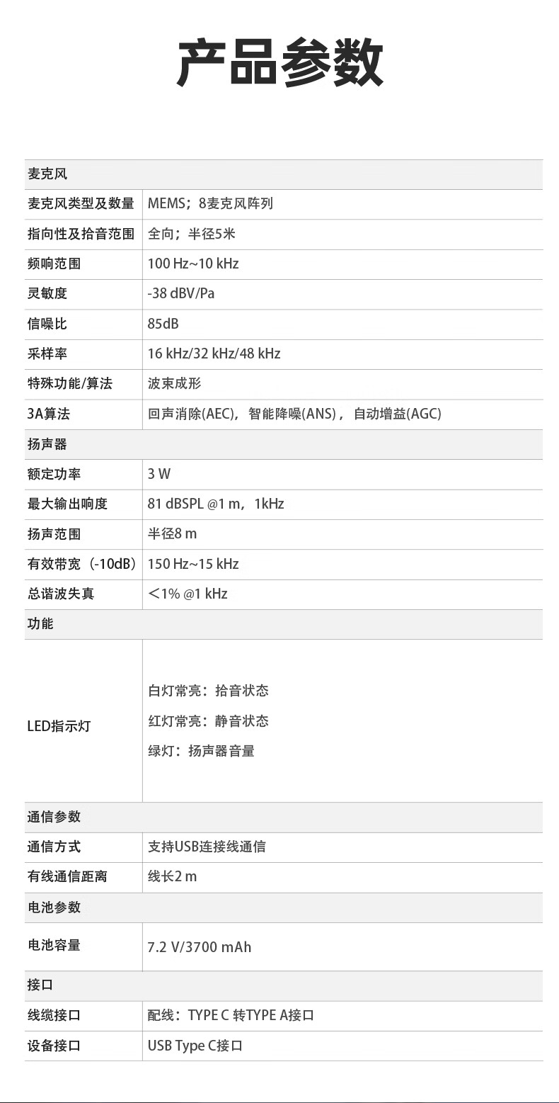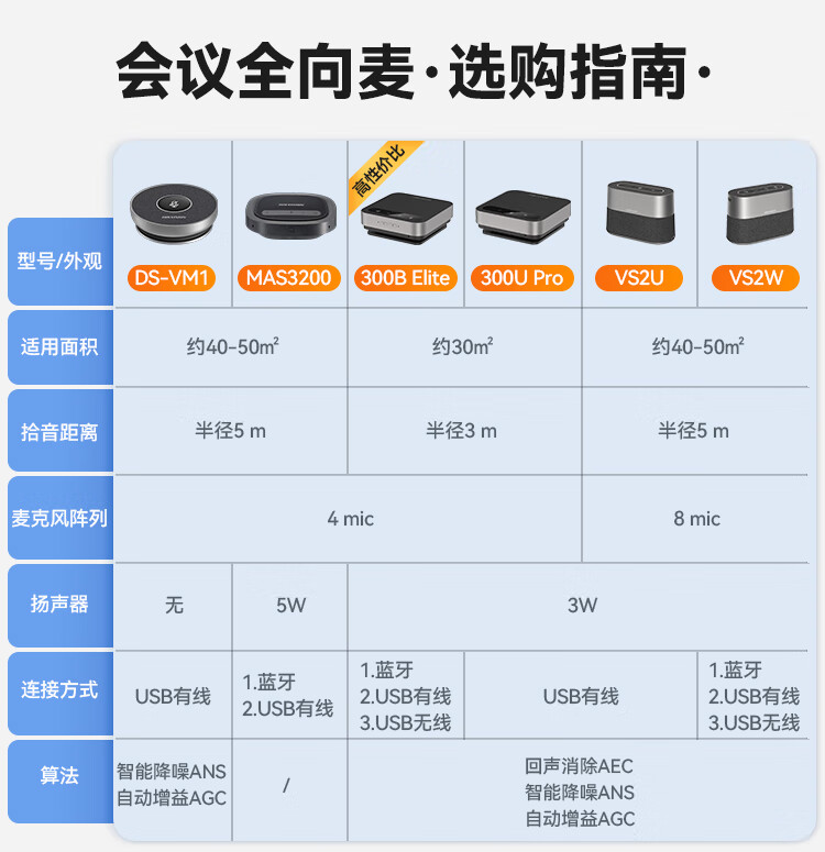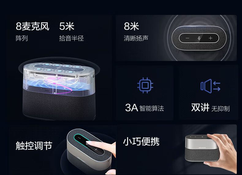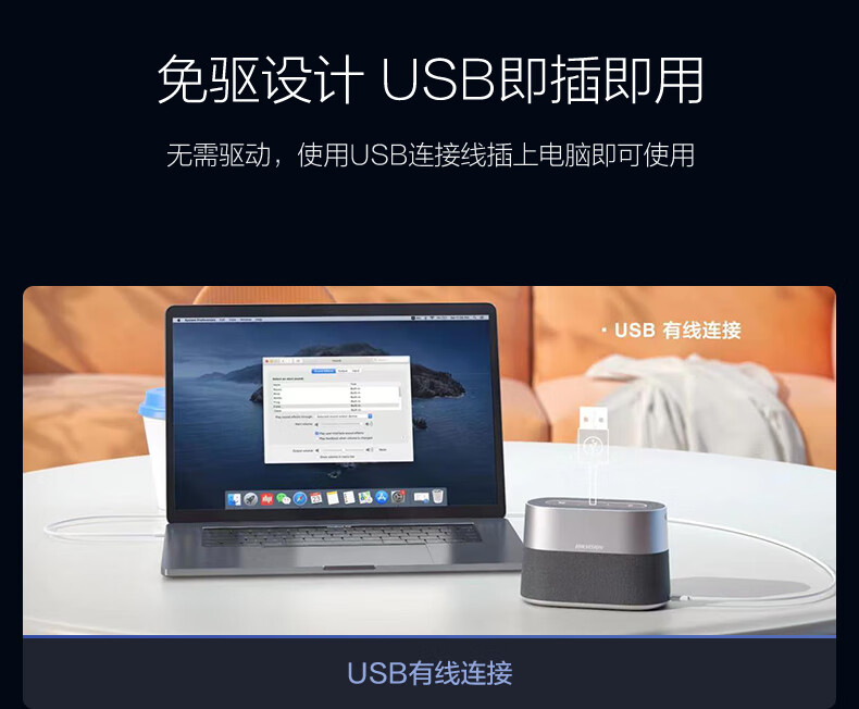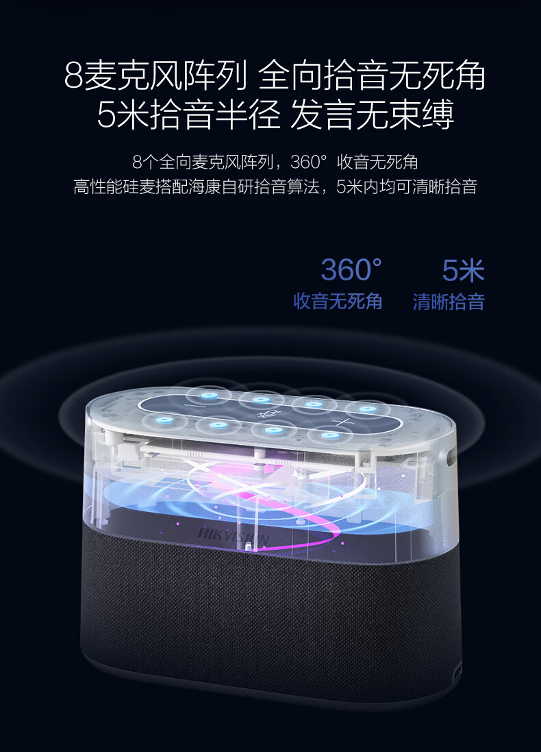 HIKVISION海康威视会议麦克风全向麦网络远程视频话筒USB连接免驱桌面型降噪音响扬声器会议解决方案VS2U