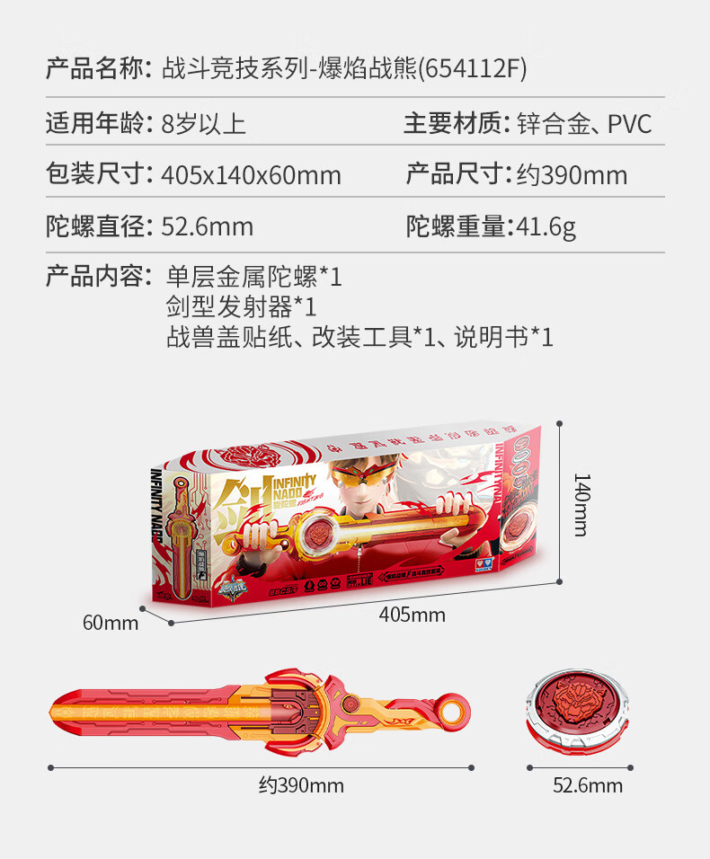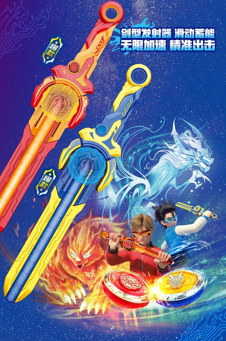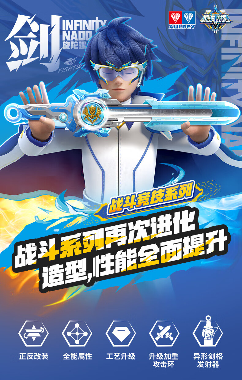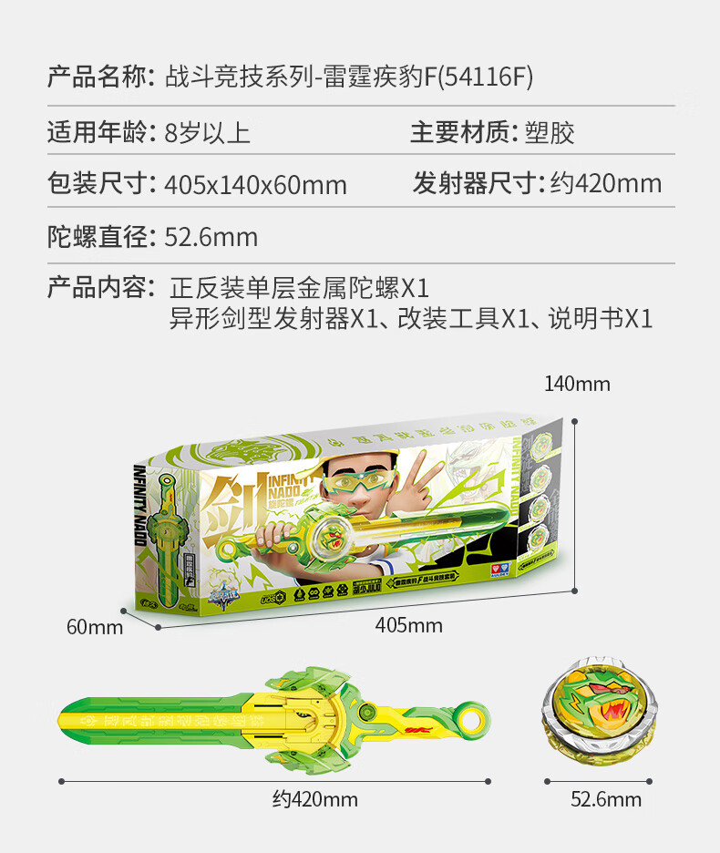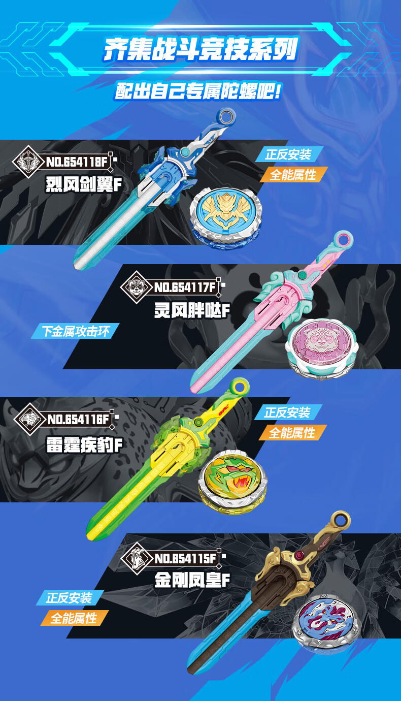 奥迪双钻飓风战魂6剑旋陀螺一系玩具互动对战儿童伙伴男孩玩具礼物 1F系雷霆疾豹(剑型发射器)