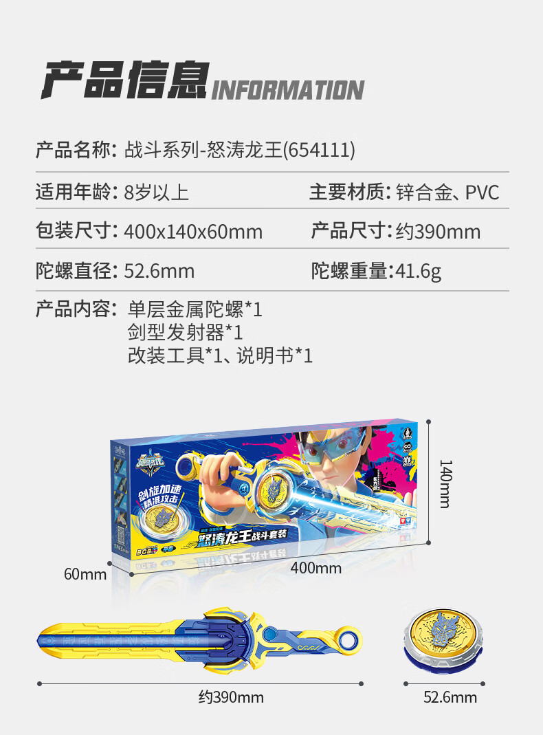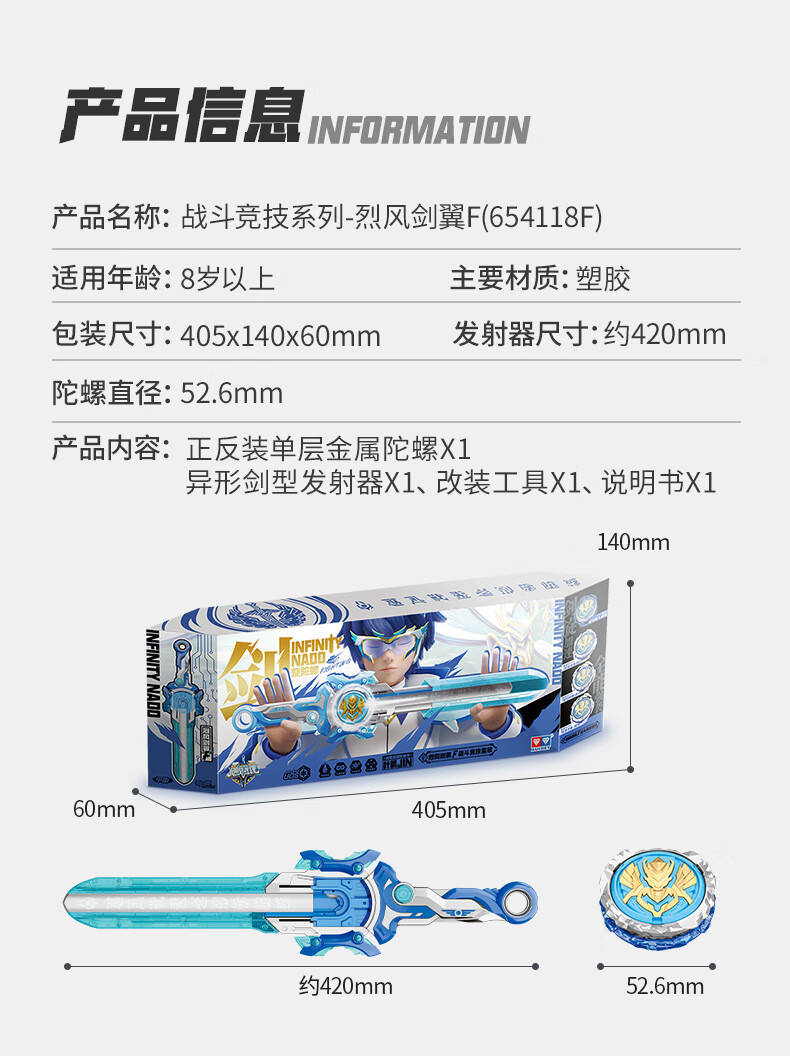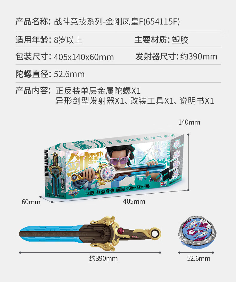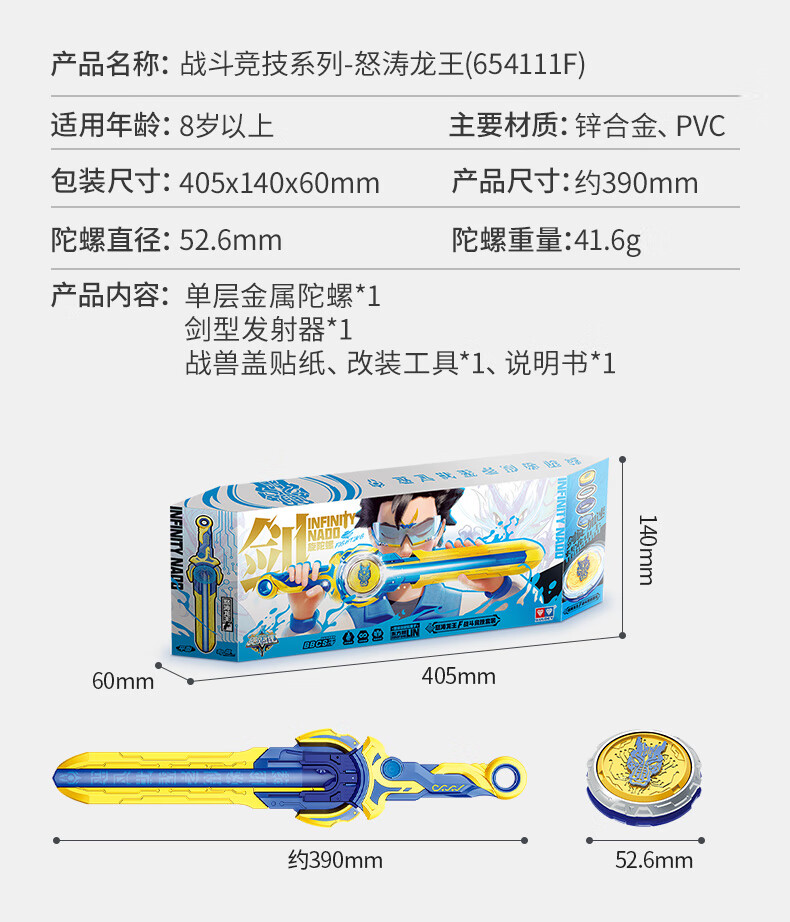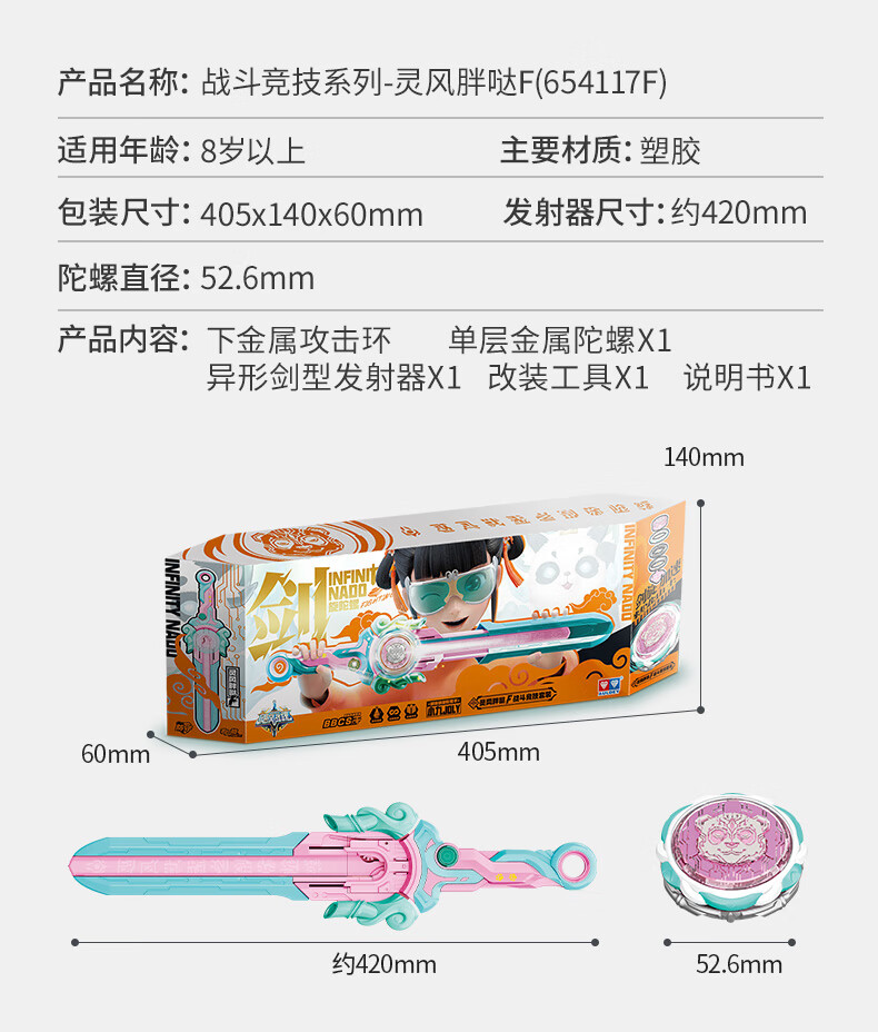 奥迪双钻飓风战魂6剑旋陀螺一系玩具互动对战儿童伙伴男孩玩具礼物 1F系雷霆疾豹(剑型发射器)