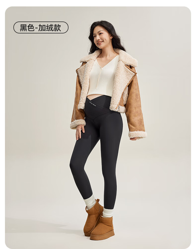 十月结晶孕妇打底裤子秋冬外穿瑜伽鲨鱼裤无缝托腹孕妇无痕裤 【秋冬加绒款】黑色-(V悬浮托腹) 推荐0-18℃ L
