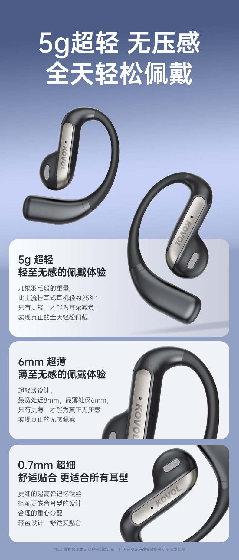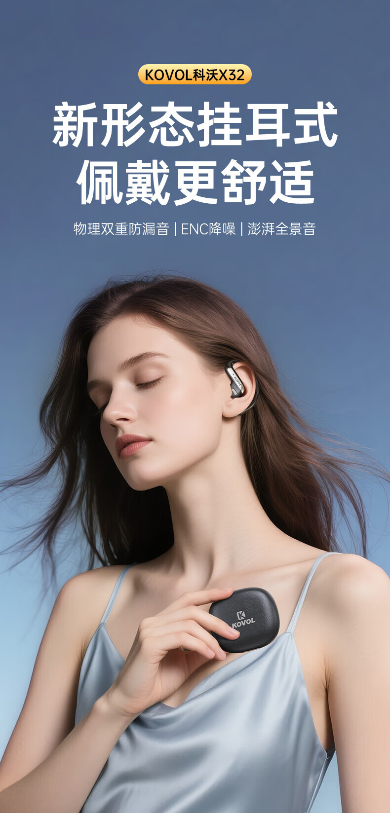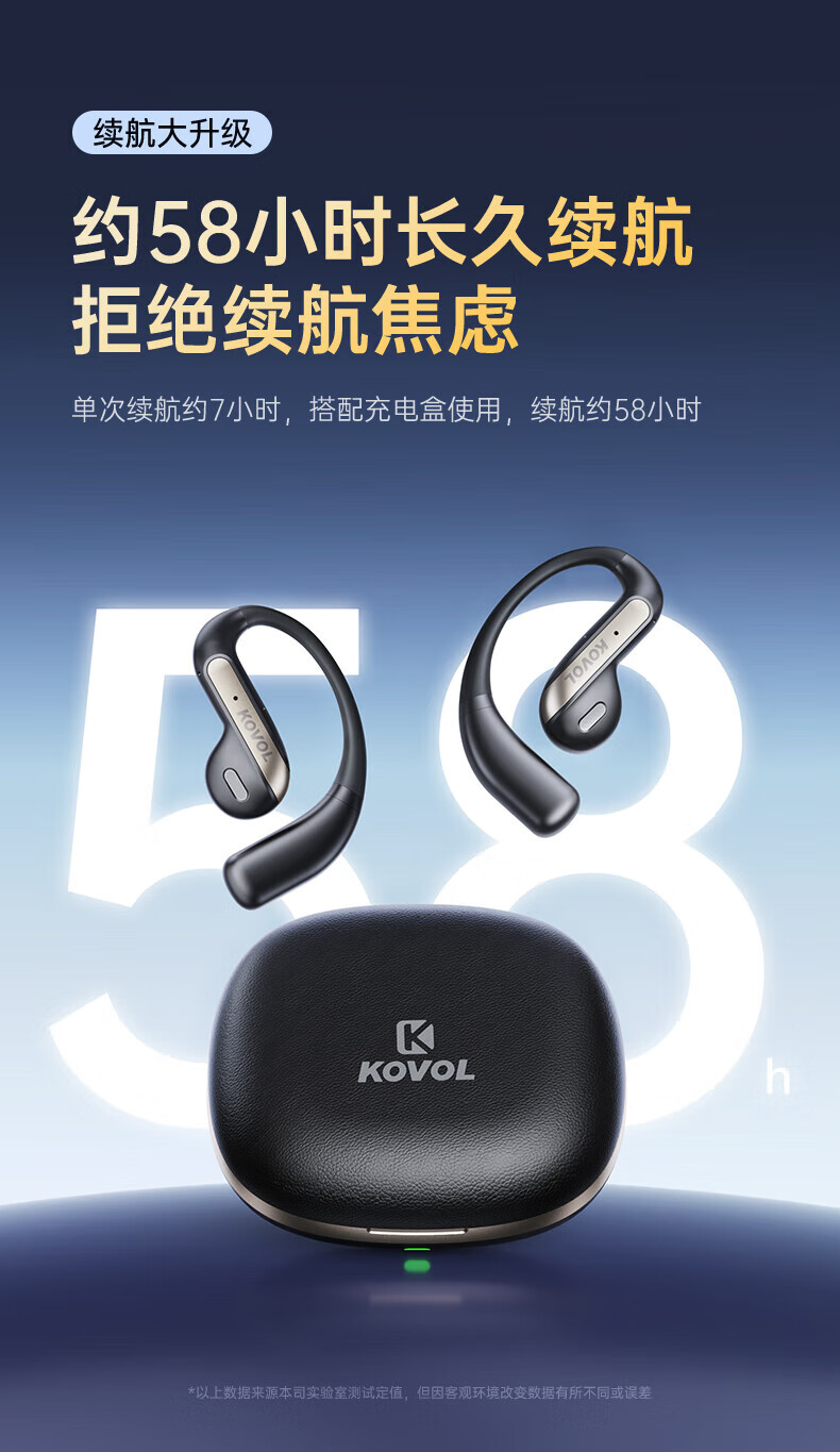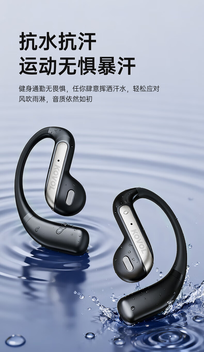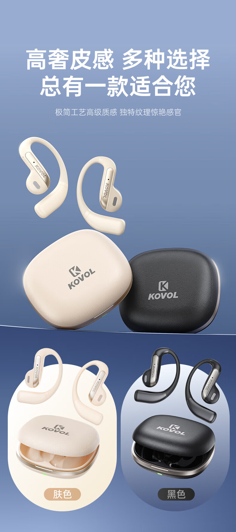 科沃(KOVOL)【2025最新款丨AI翻译】蓝牙耳机无线智能翻译骨传导概念挂耳式久戴不痛耳夹超长续航跑步通话降噪