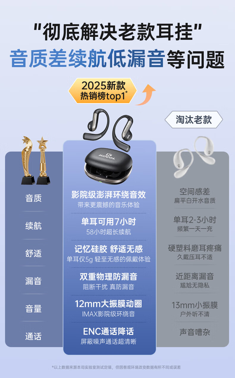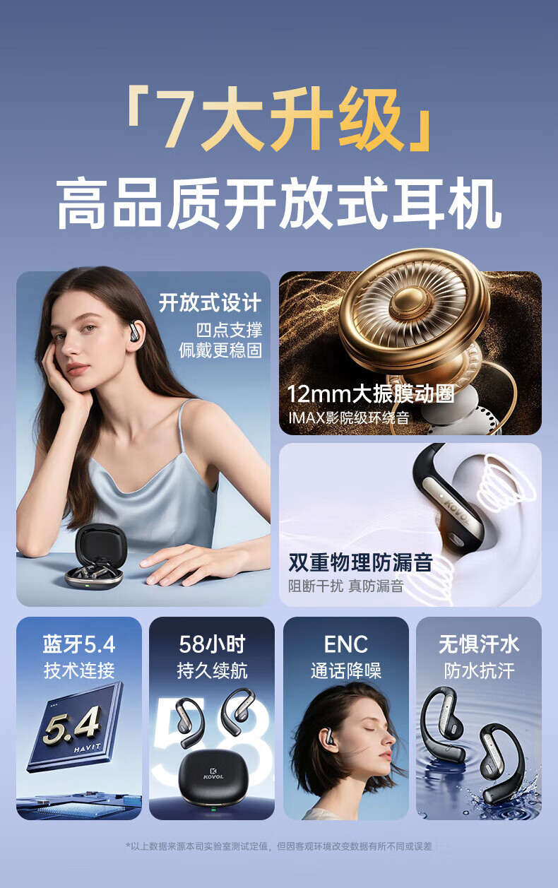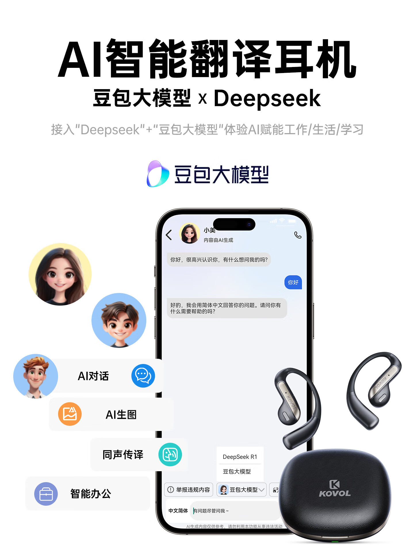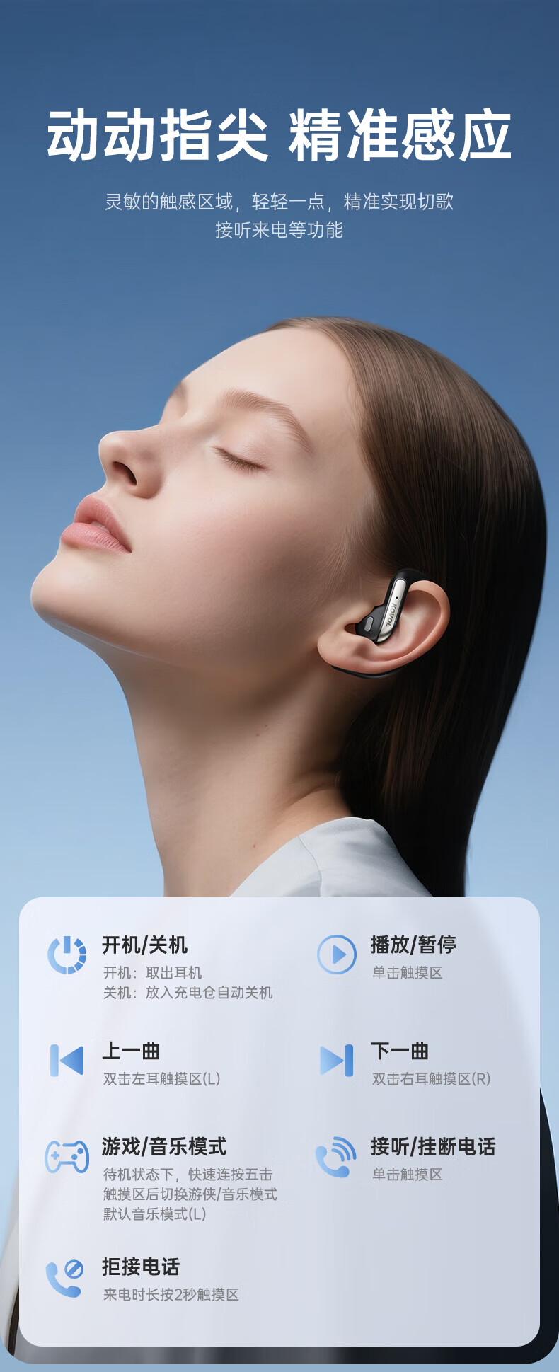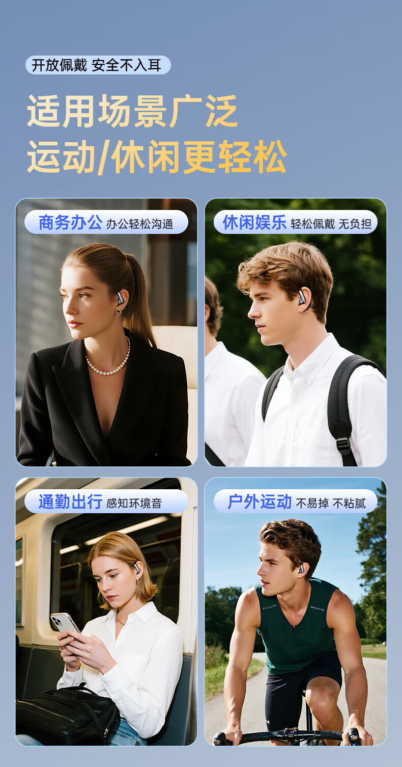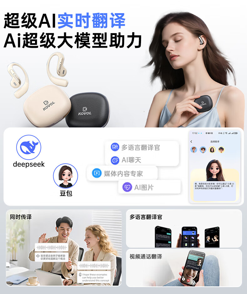 科沃(KOVOL)【2025最新款丨AI翻译】蓝牙耳机无线智能翻译骨传导概念挂耳式久戴不痛耳夹超长续航跑步通话降噪