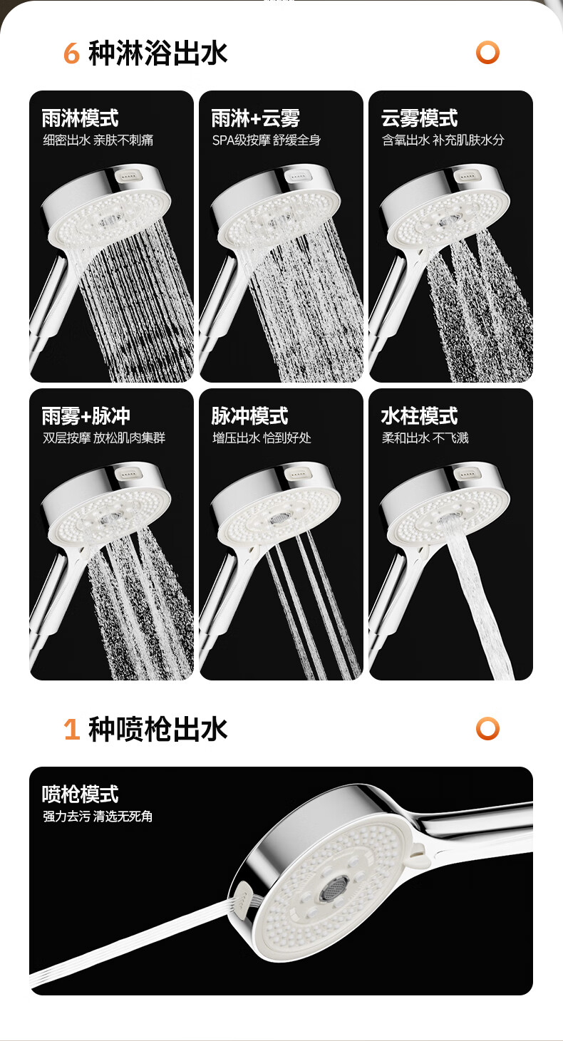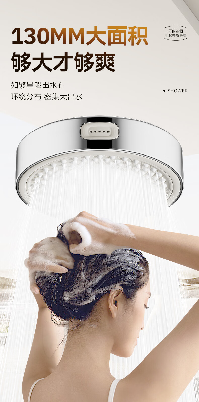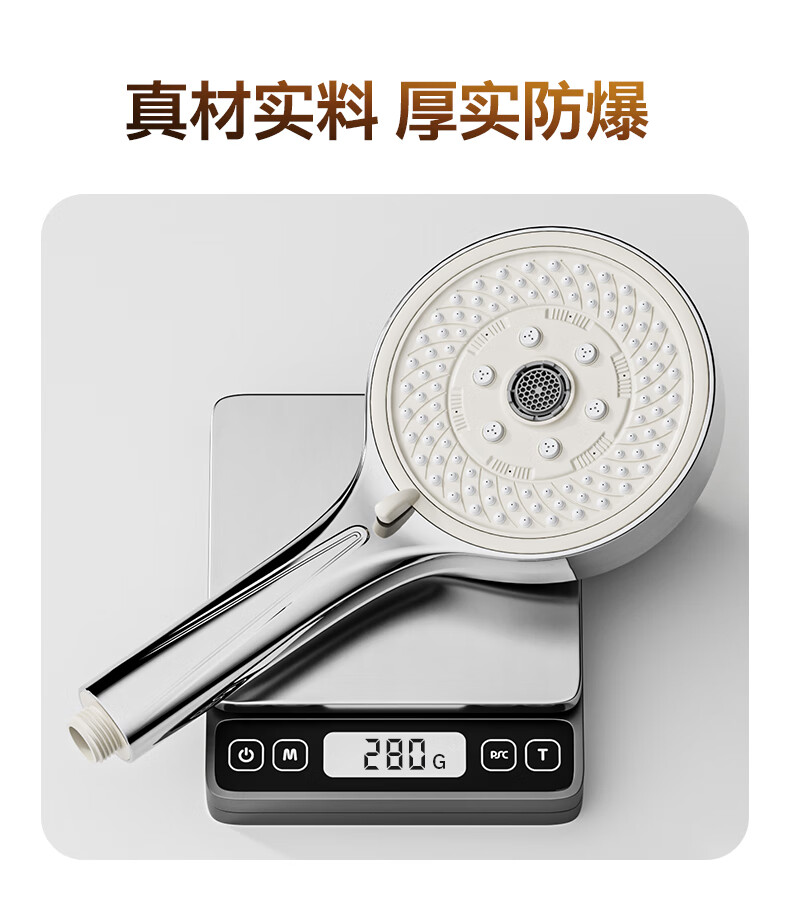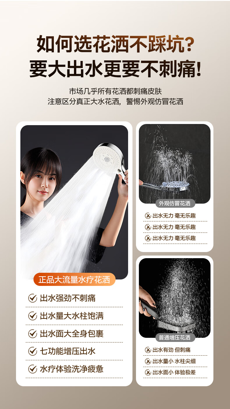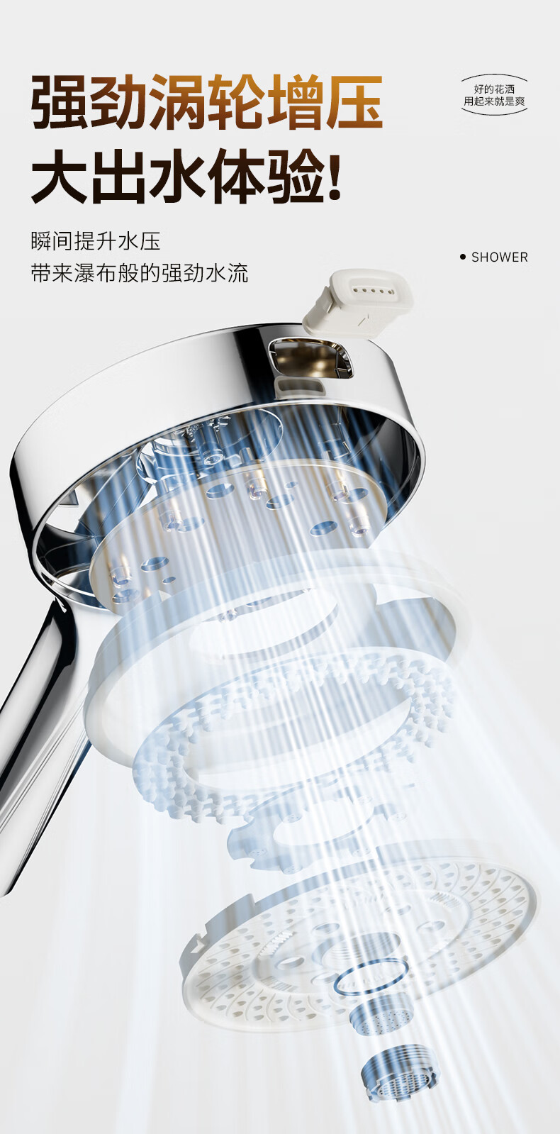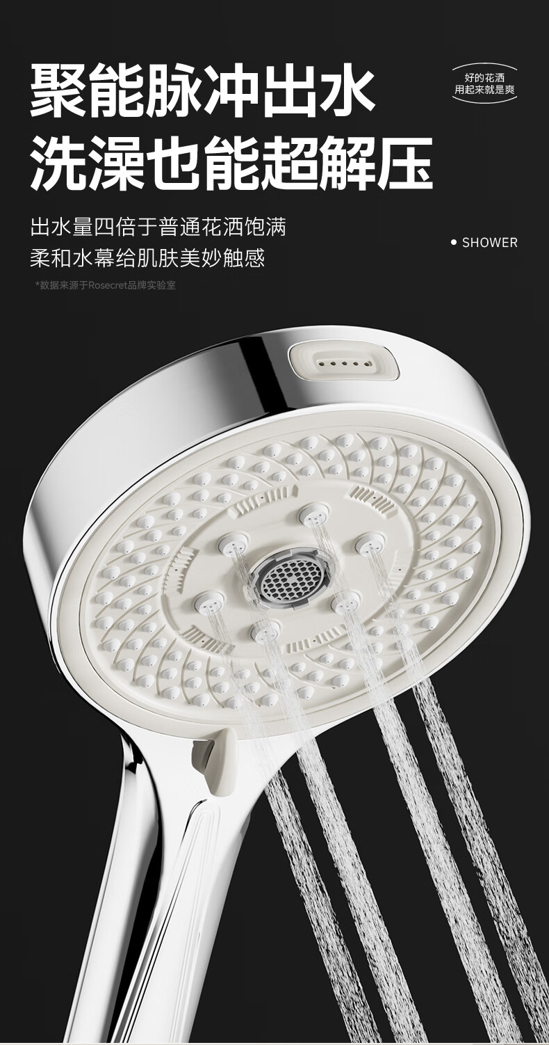 Rosecret【德国】增压花洒淋浴喷头多功能家用浴室洗澡大面板手持莲蓬喷头 7档涡轮增压【单花洒】宿舍家庭通用安装 大流量出水丨真材实料丨厚实防爆