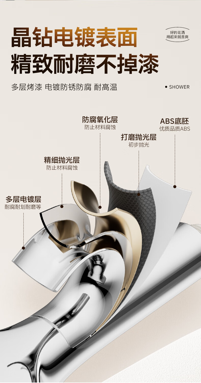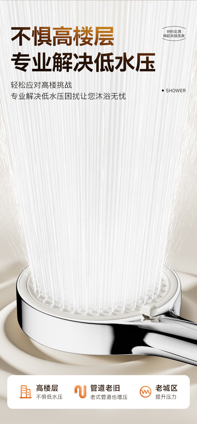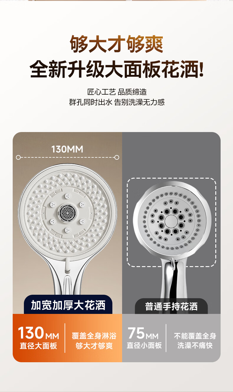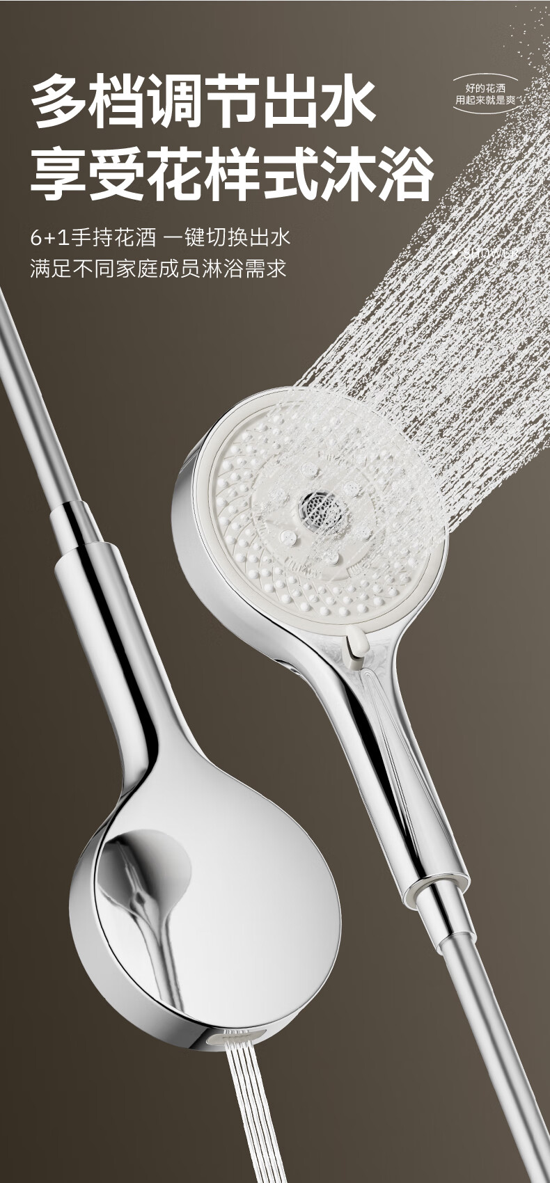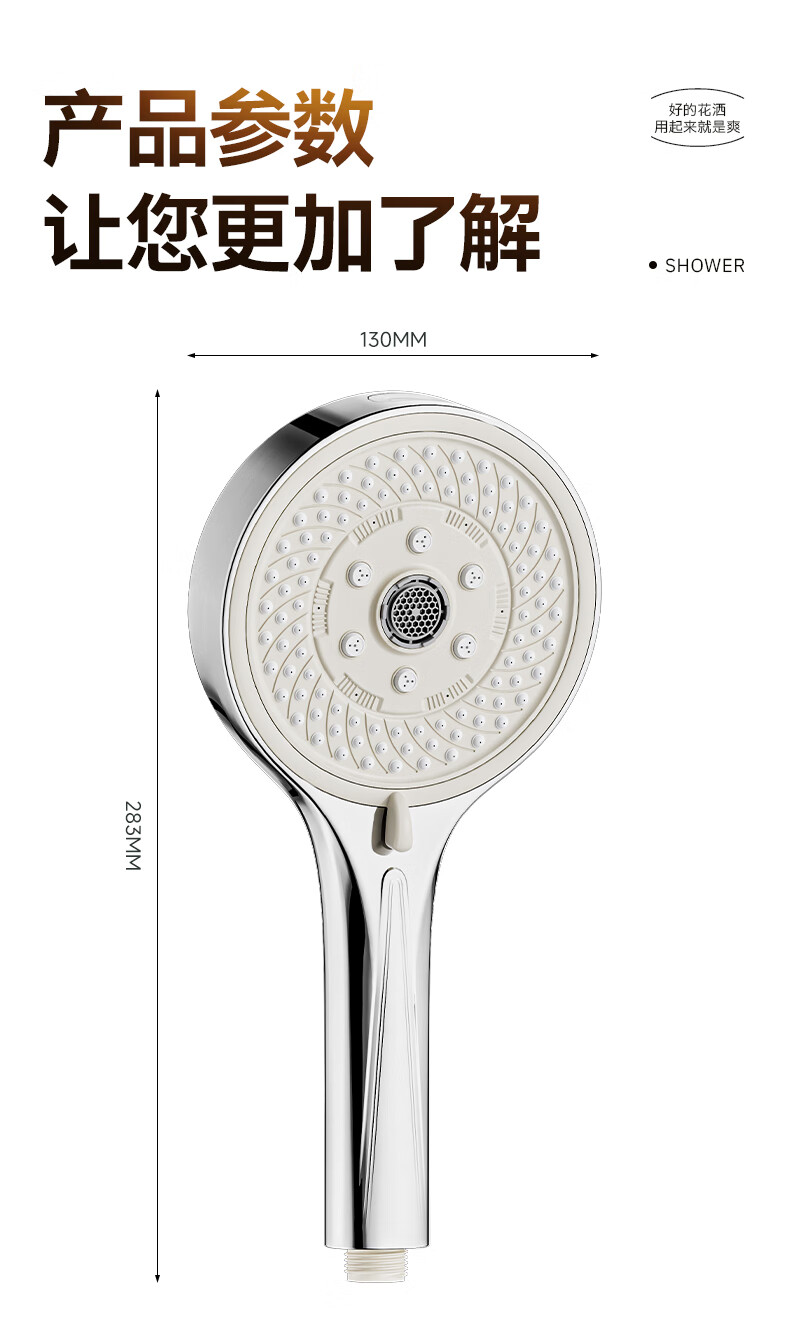 Rosecret【德国】增压花洒淋浴喷头多功能家用浴室洗澡大面板手持莲蓬喷头 7档涡轮增压【单花洒】宿舍家庭通用安装 大流量出水丨真材实料丨厚实防爆