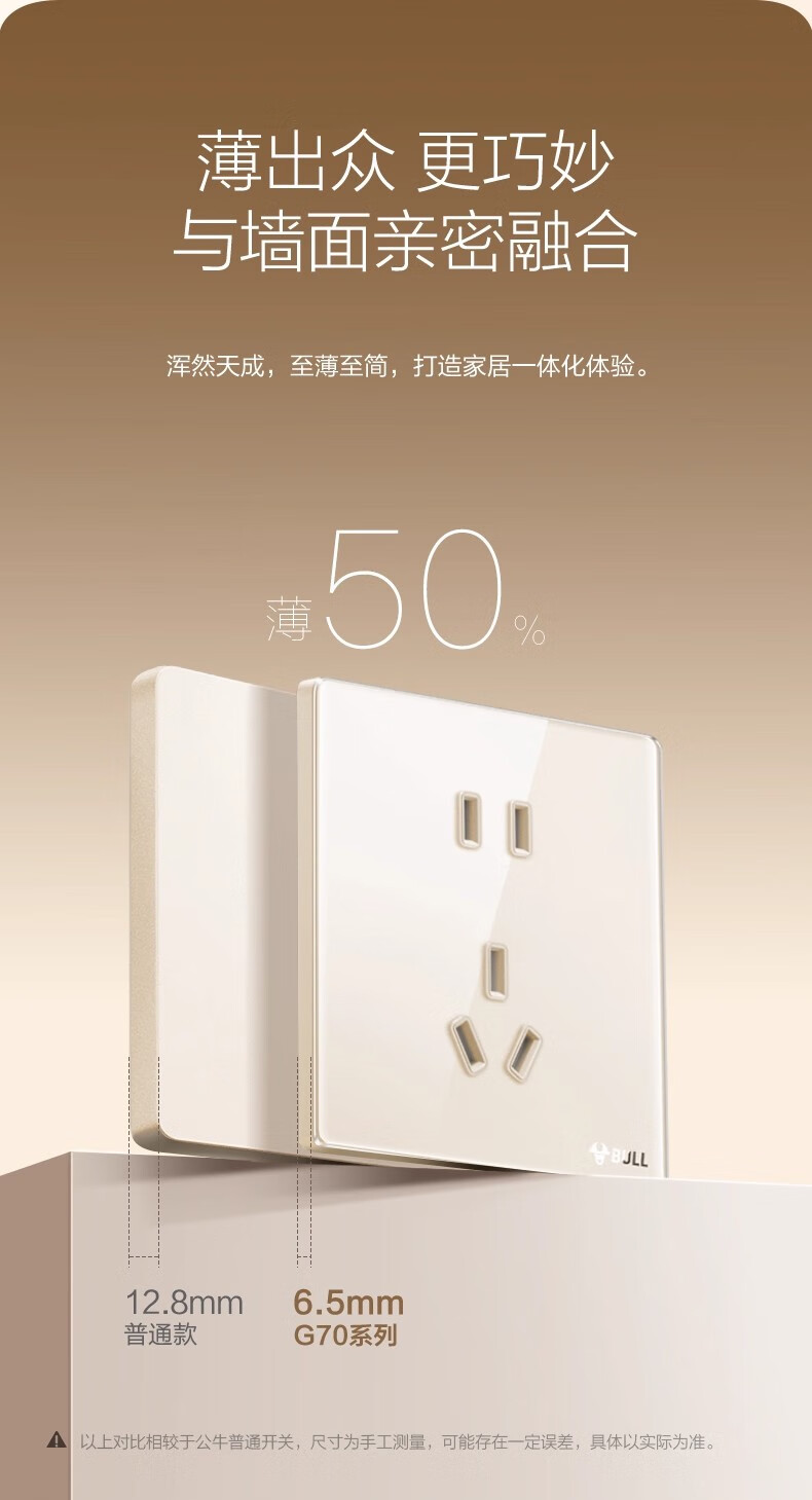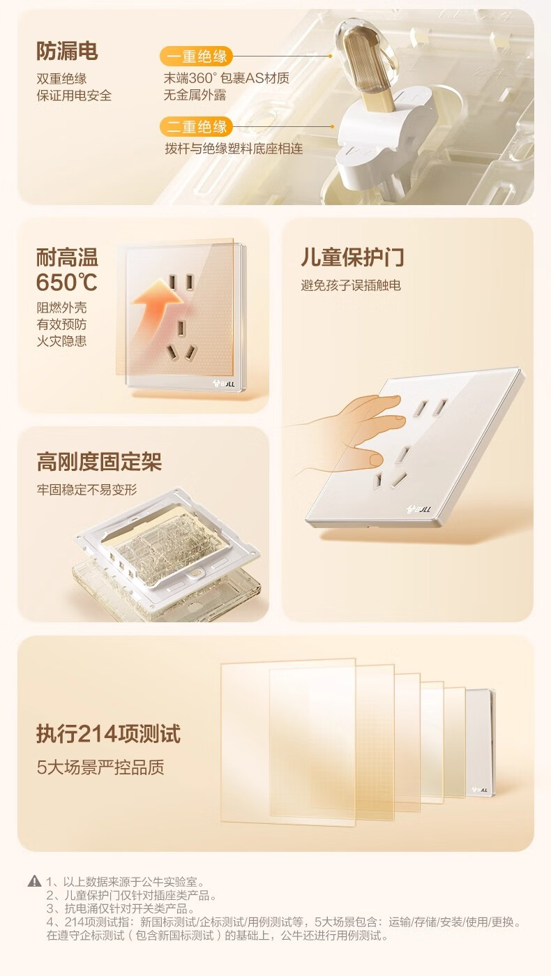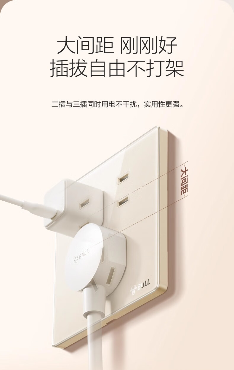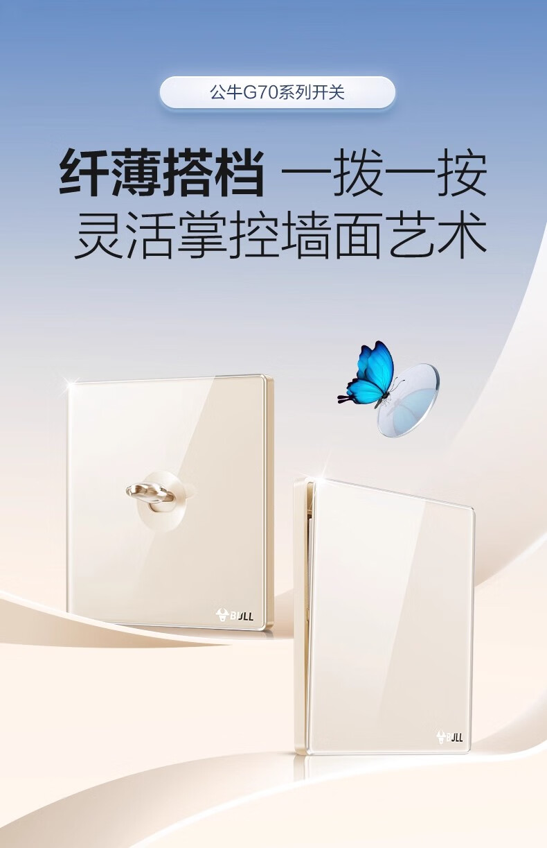 公牛复古开关G70拨杆5孔插座奶油金肤感可可蛋奶超薄有机玻璃面板 五孔插座+30W快充 插座