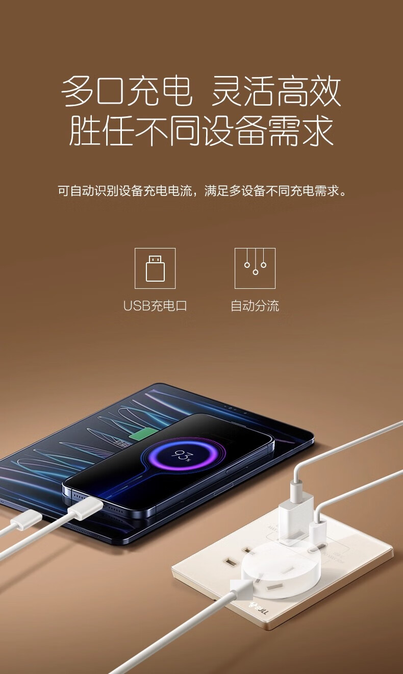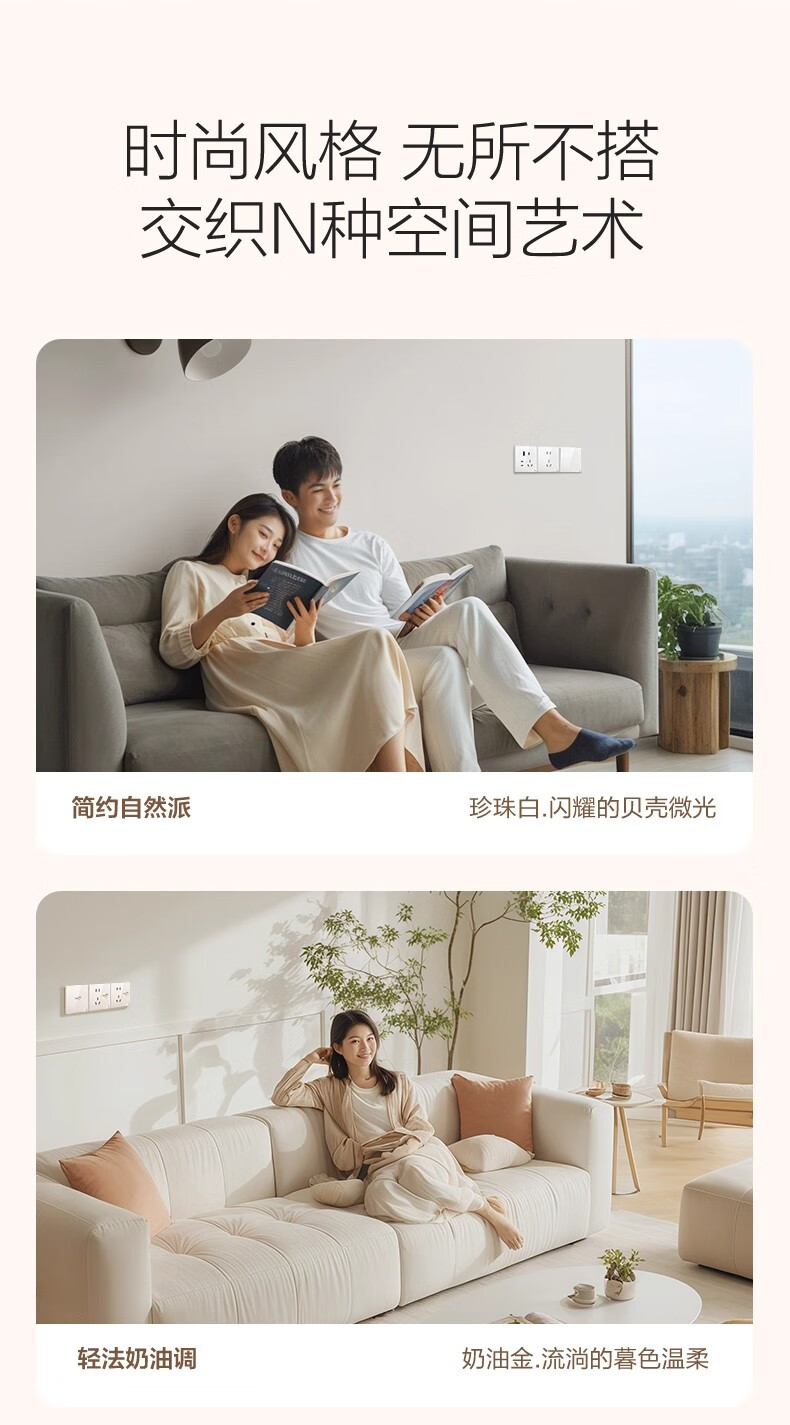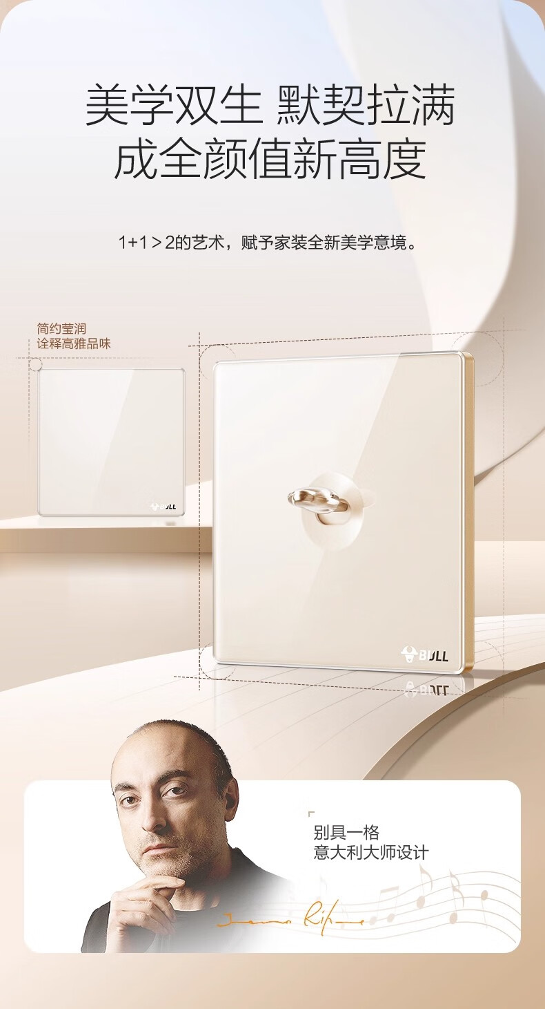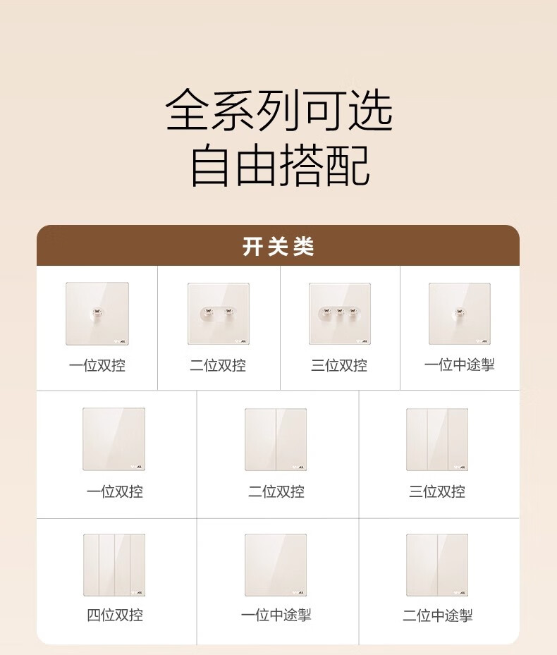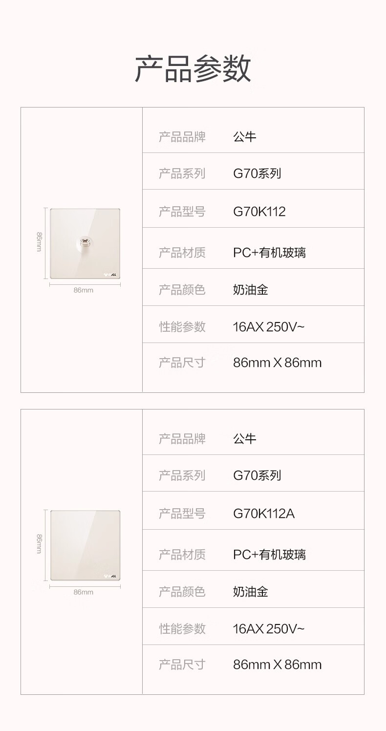 公牛复古开关G70拨杆5孔插座奶油金肤感可可蛋奶超薄有机玻璃面板 五孔插座+30W快充 插座