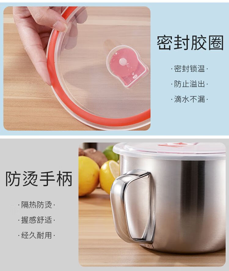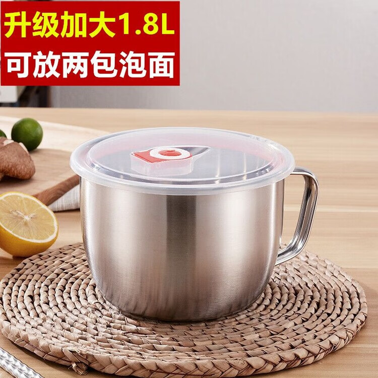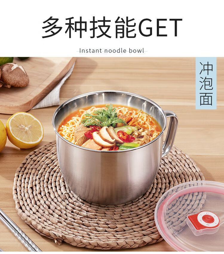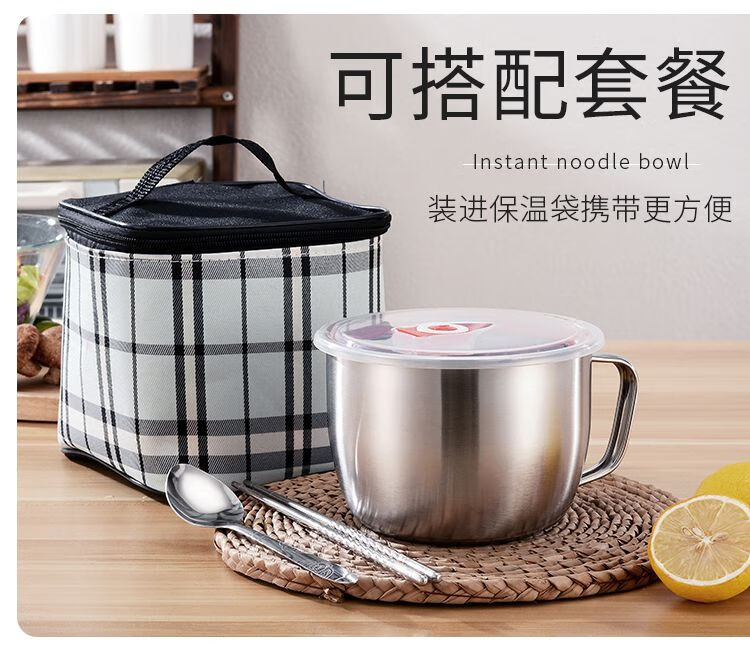DEATKN德国不锈钢泡面碗带盖汤碗学生饭盒食堂打饭碗快餐方便面杯带筷勺 1.3L泡面杯【普通款】
