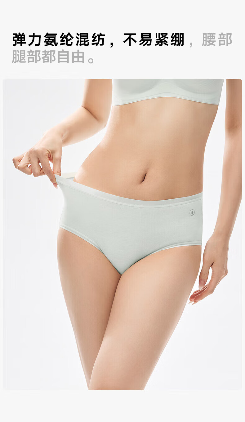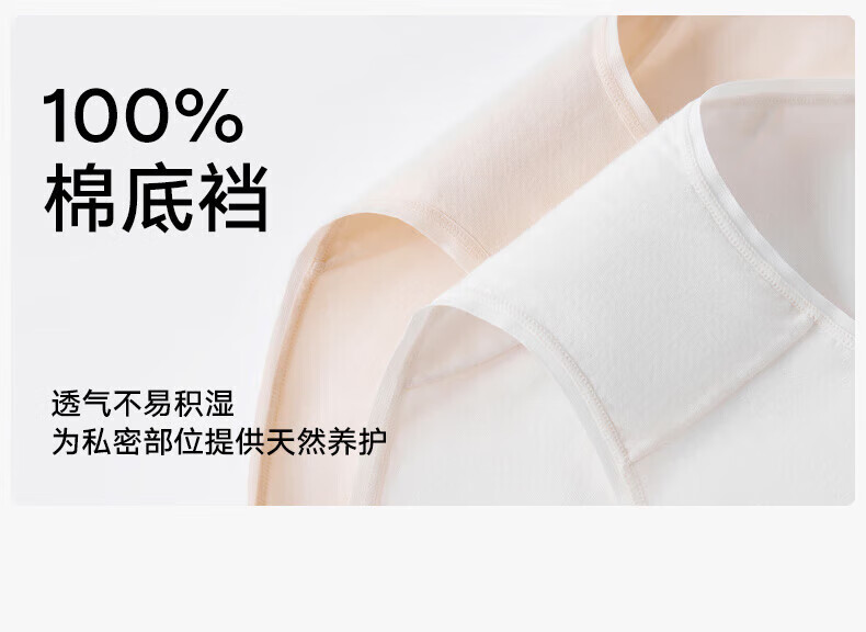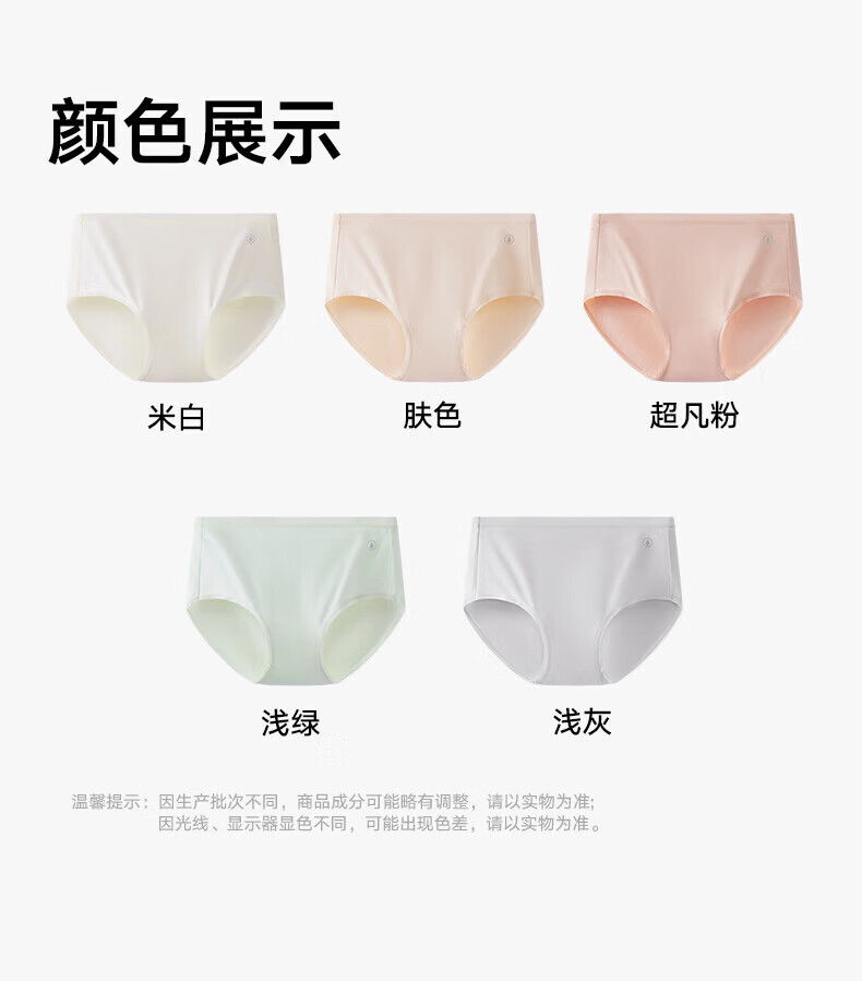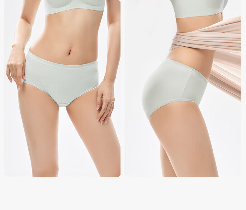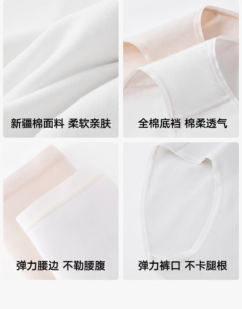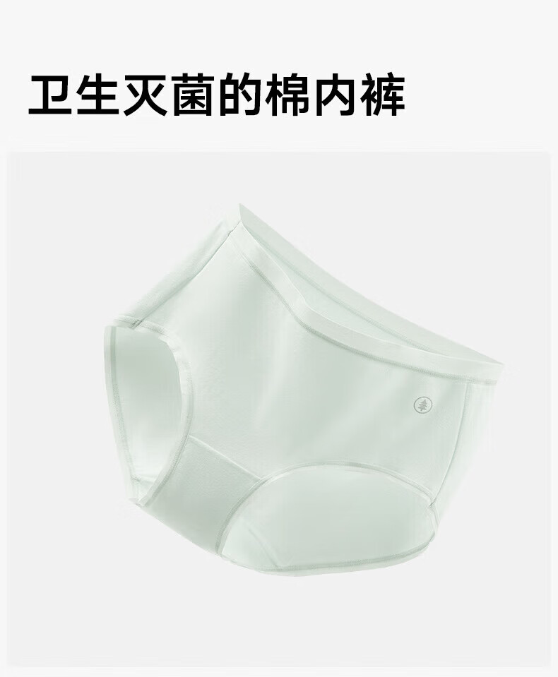 松山棉店新疆棉抗菌内裤女士无痕透气三角裤中腰灭菌女士内裤 米白+浅绿+肤色 3条 L