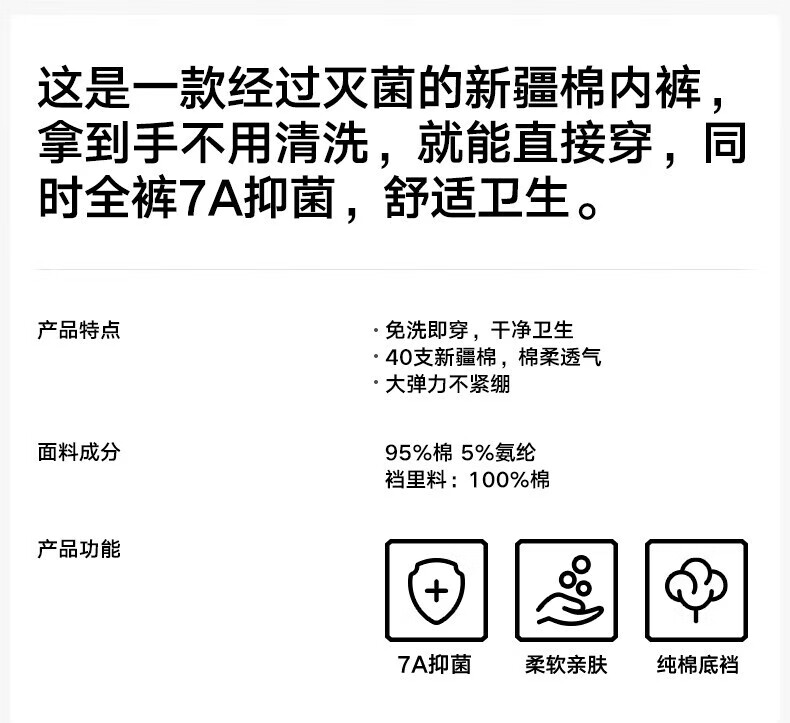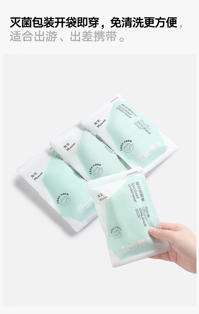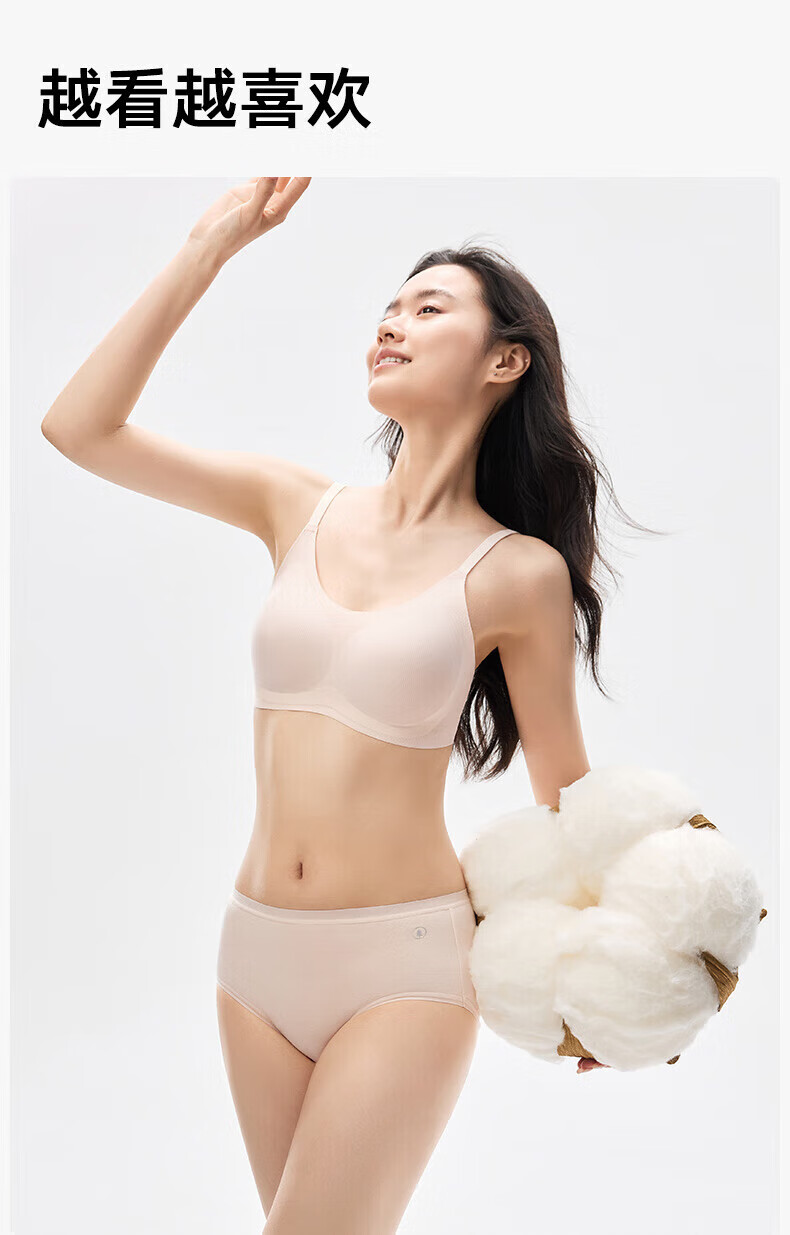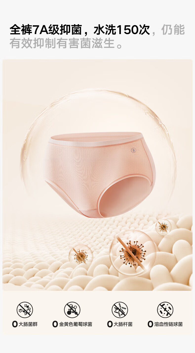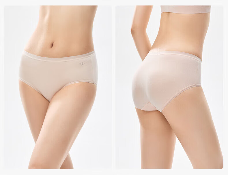松山棉店新疆棉抗菌内裤女士无痕透气三角裤中腰灭菌女士内裤 米白+浅绿+肤色 3条 L