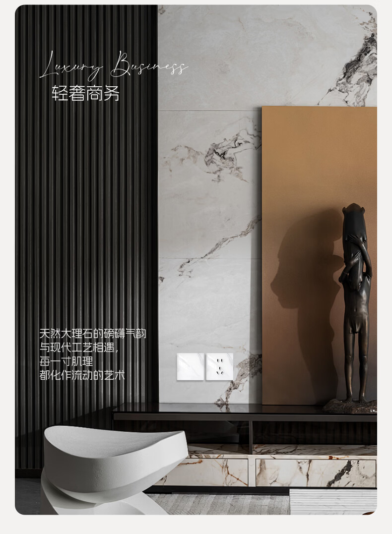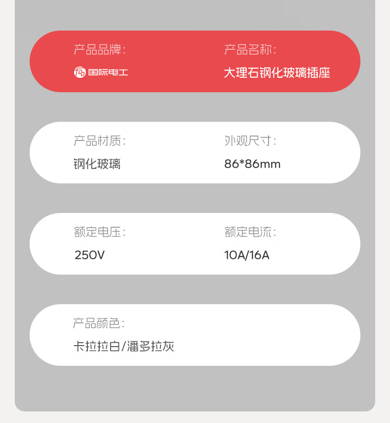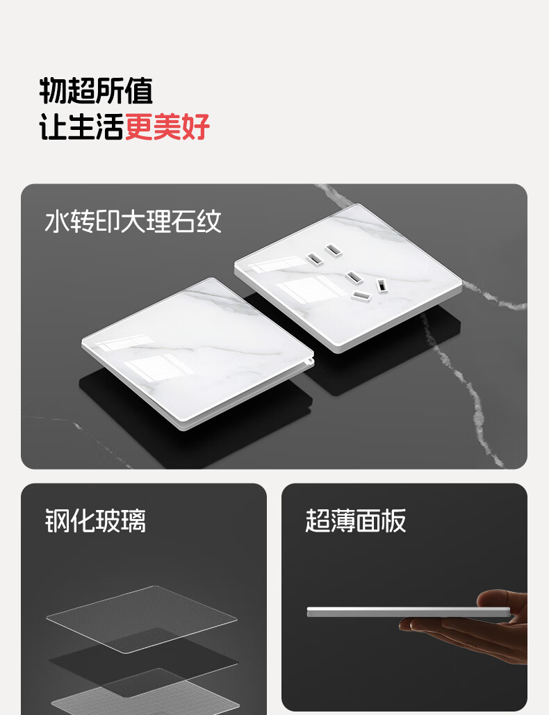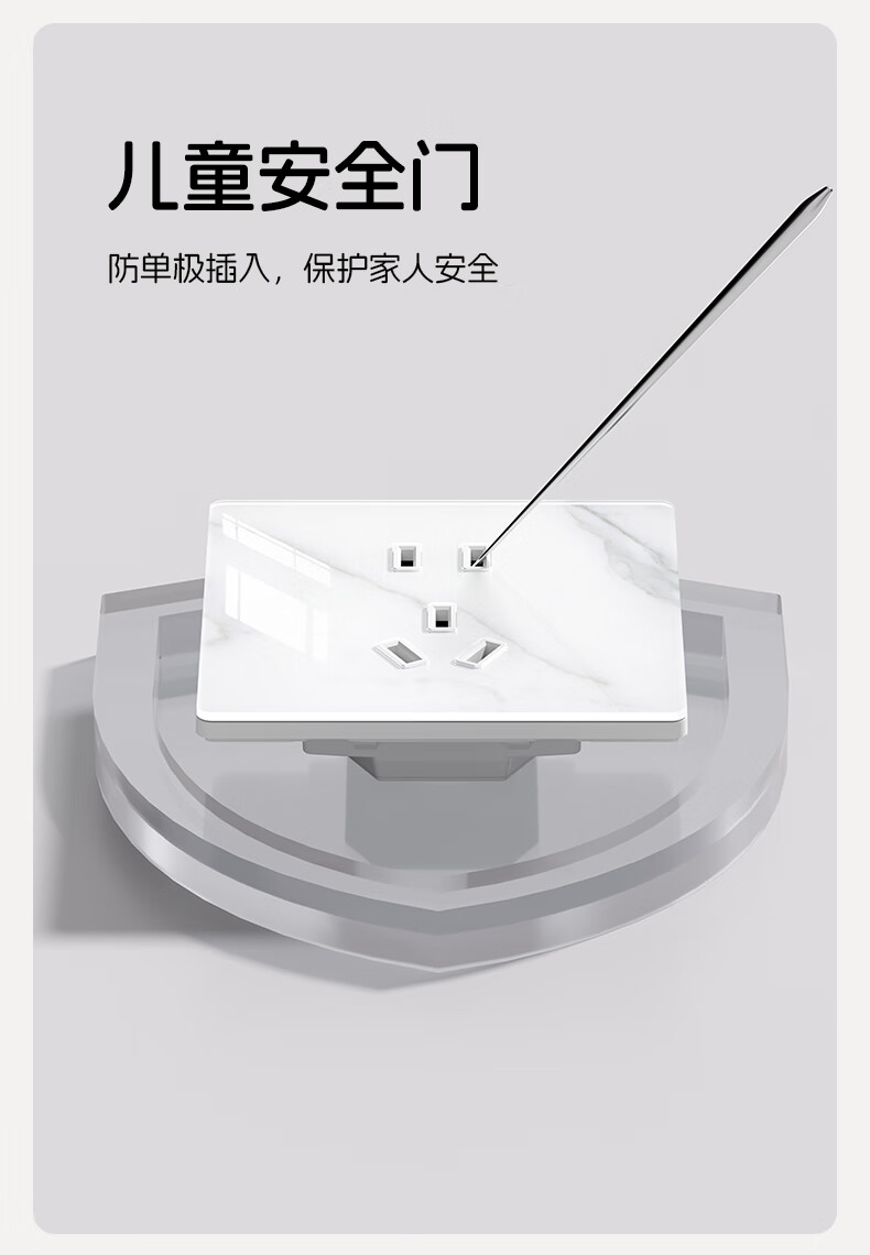 国际电工超薄大理石纹钢化玻璃开关插座家用暗装墙面86型一开双控五孔面板 穿线面板 配件类