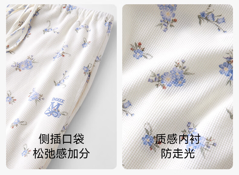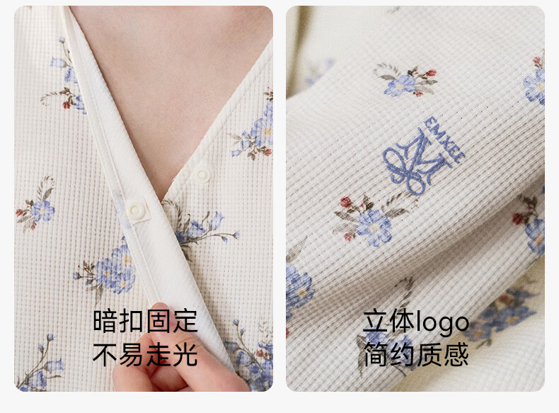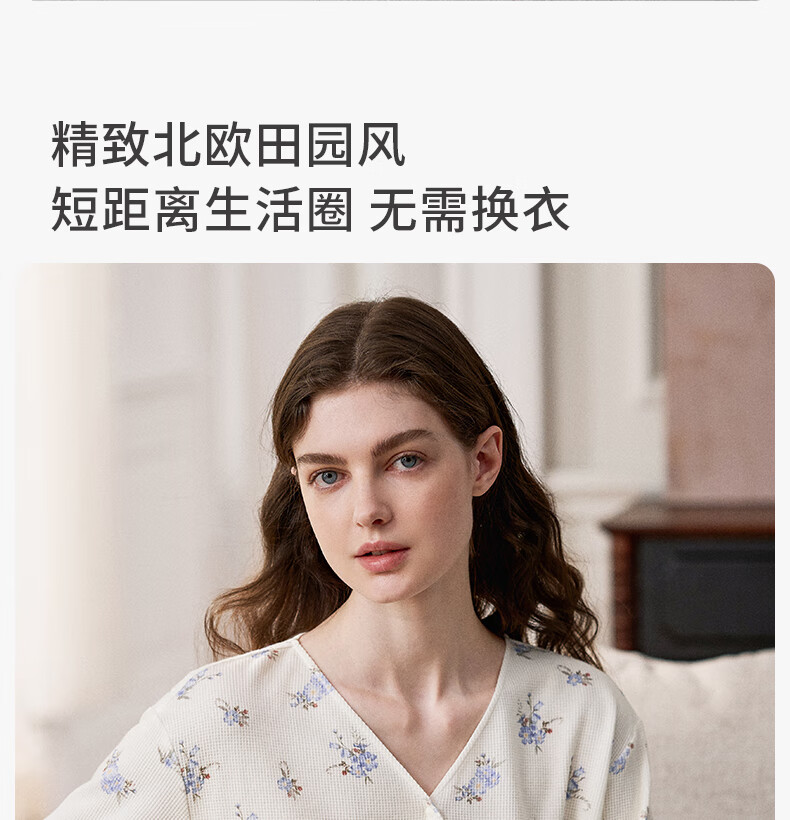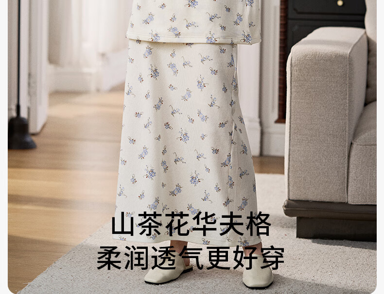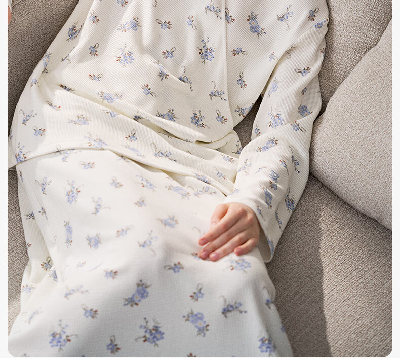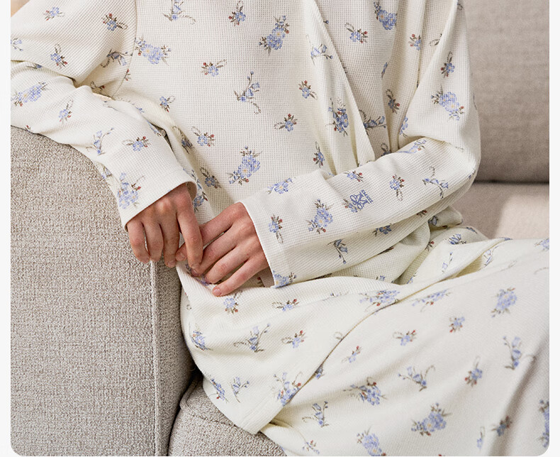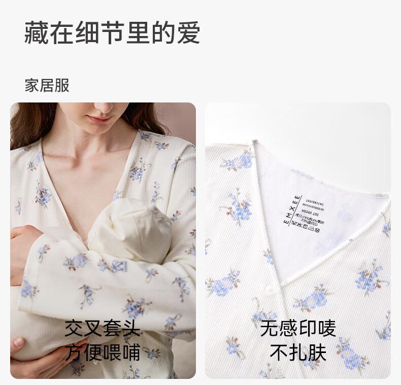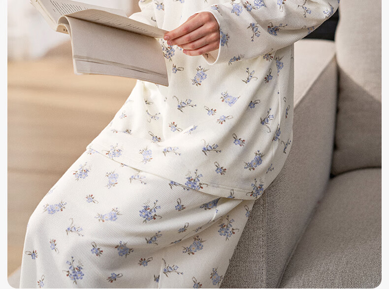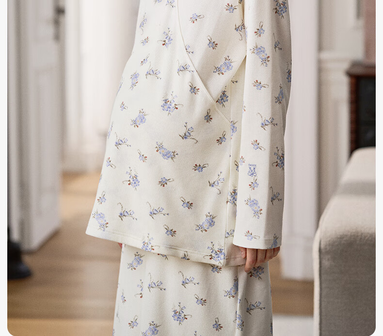 嫚熙(EMXEE)秋冬季山茶花华夫格月子服孕妇哺乳睡衣可外穿产后家居服套装 星辰花海(上衣+半身裙) XL