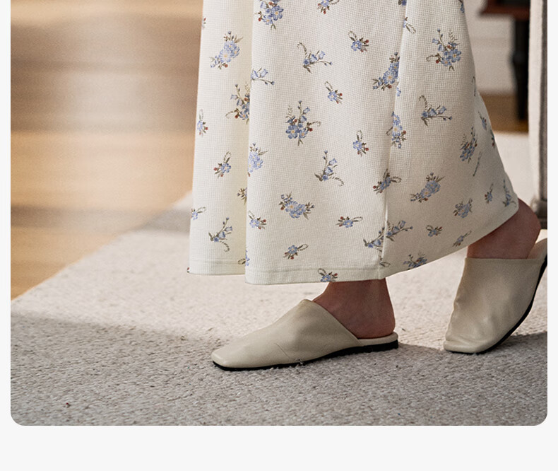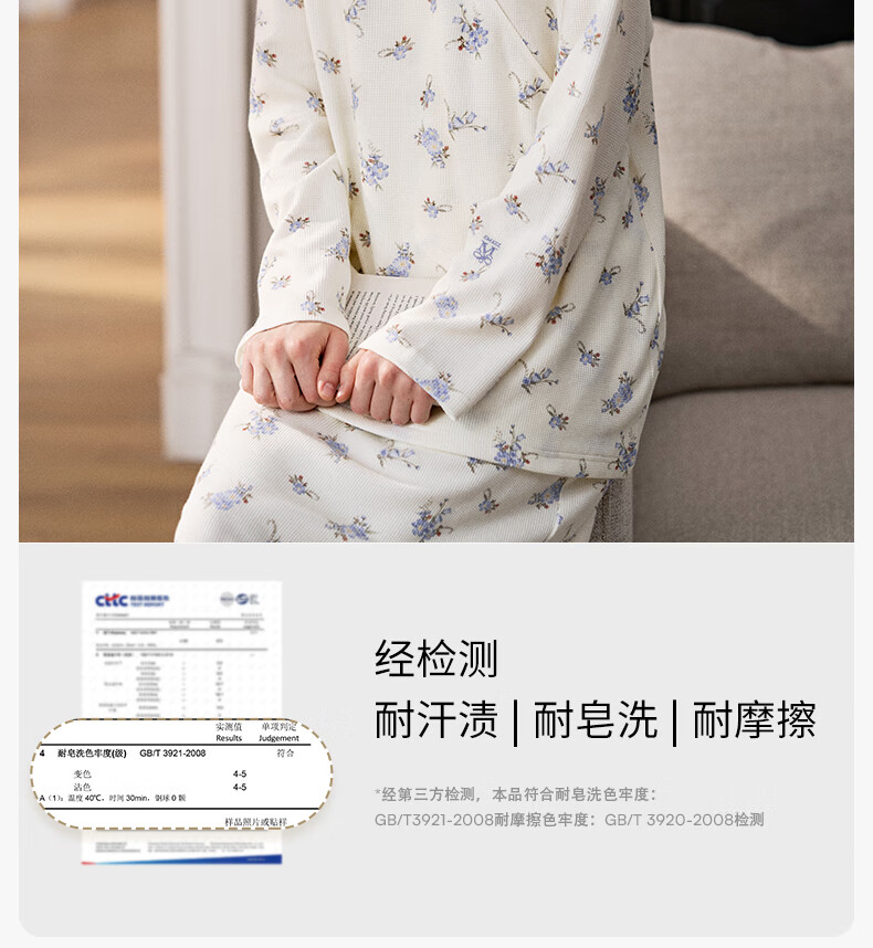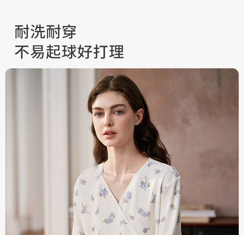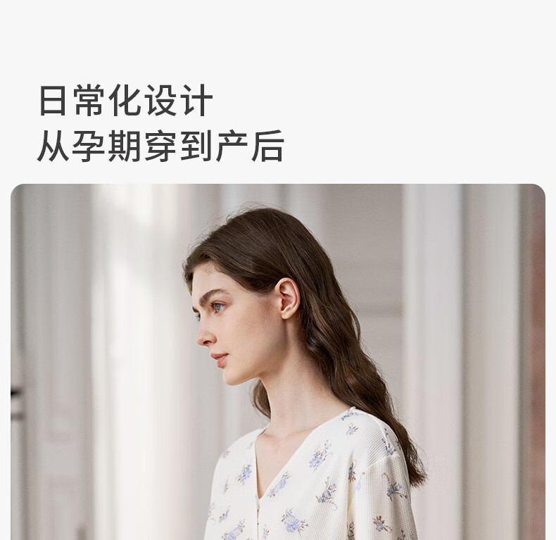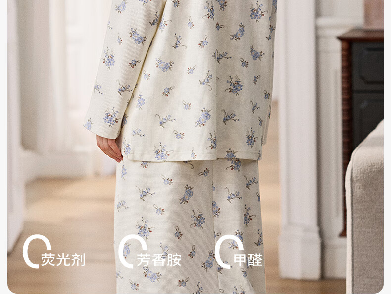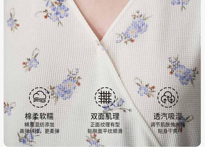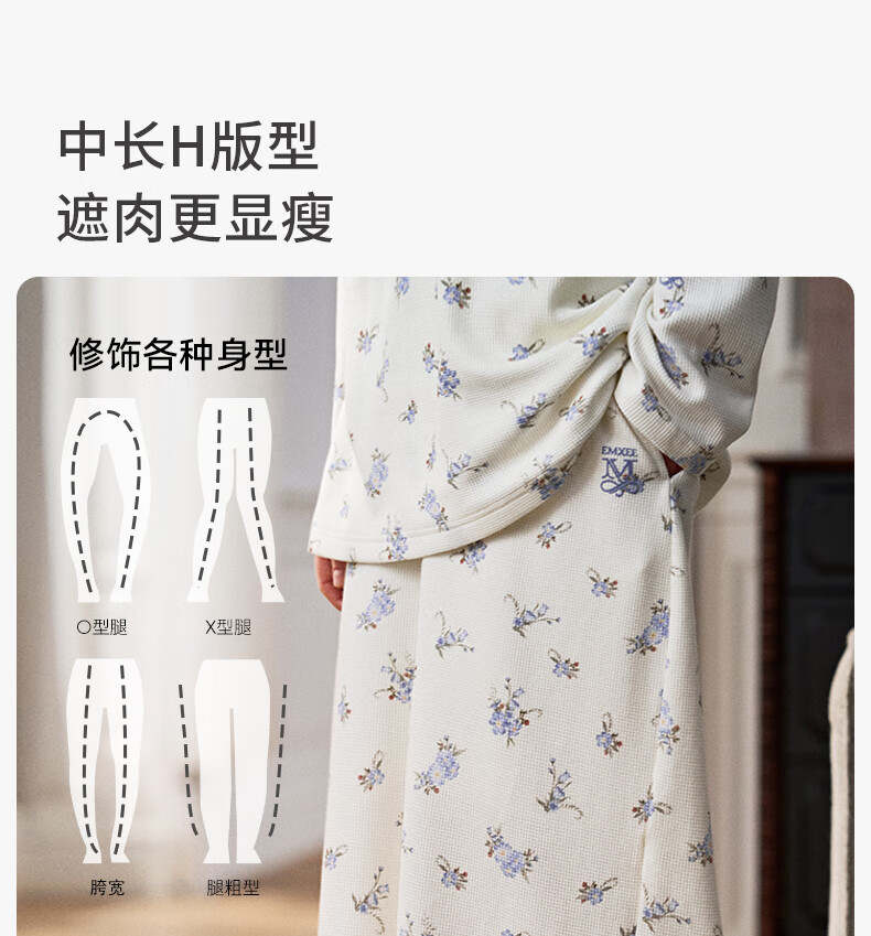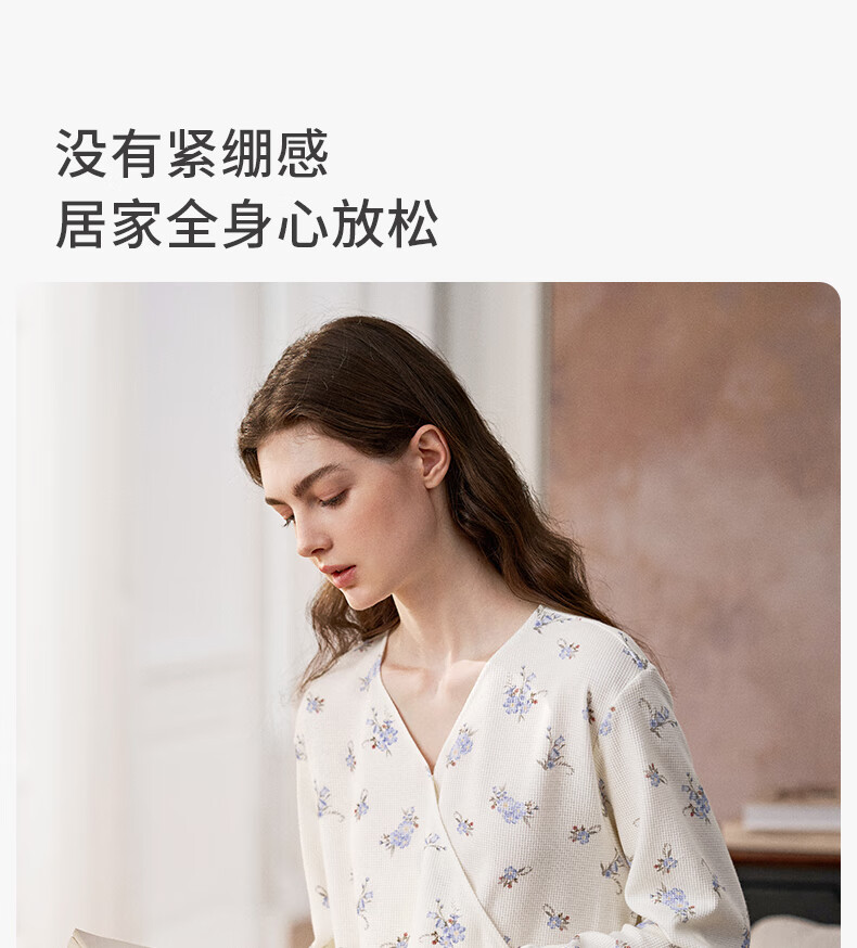 嫚熙(EMXEE)秋冬季山茶花华夫格月子服孕妇哺乳睡衣可外穿产后家居服套装 星辰花海(上衣+半身裙) XL