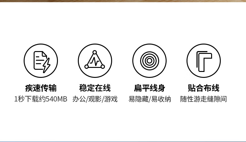 绿联六类网线 千兆网络宽带线 CAT6类家用电脑监控扁平网线 8芯双绞成品跳线 2米 黑色50174