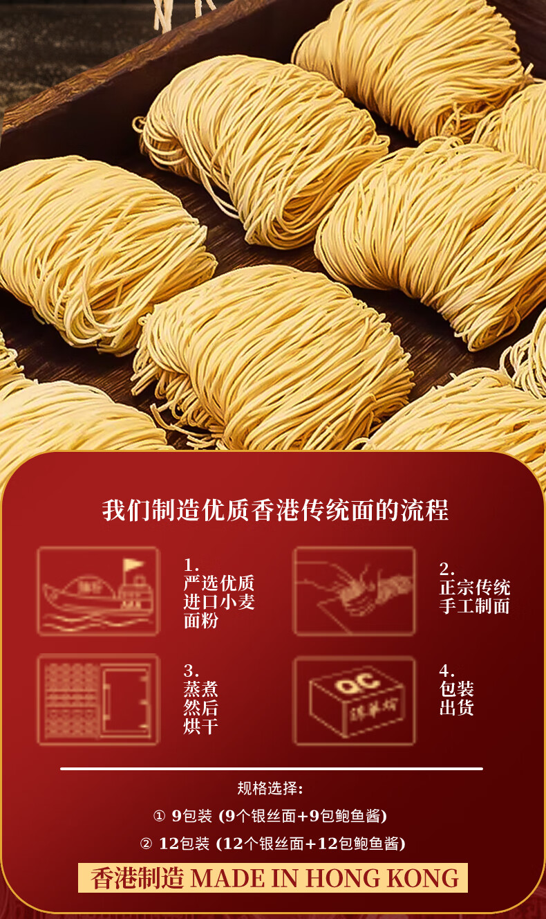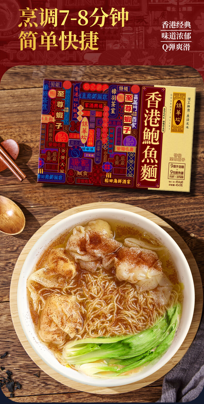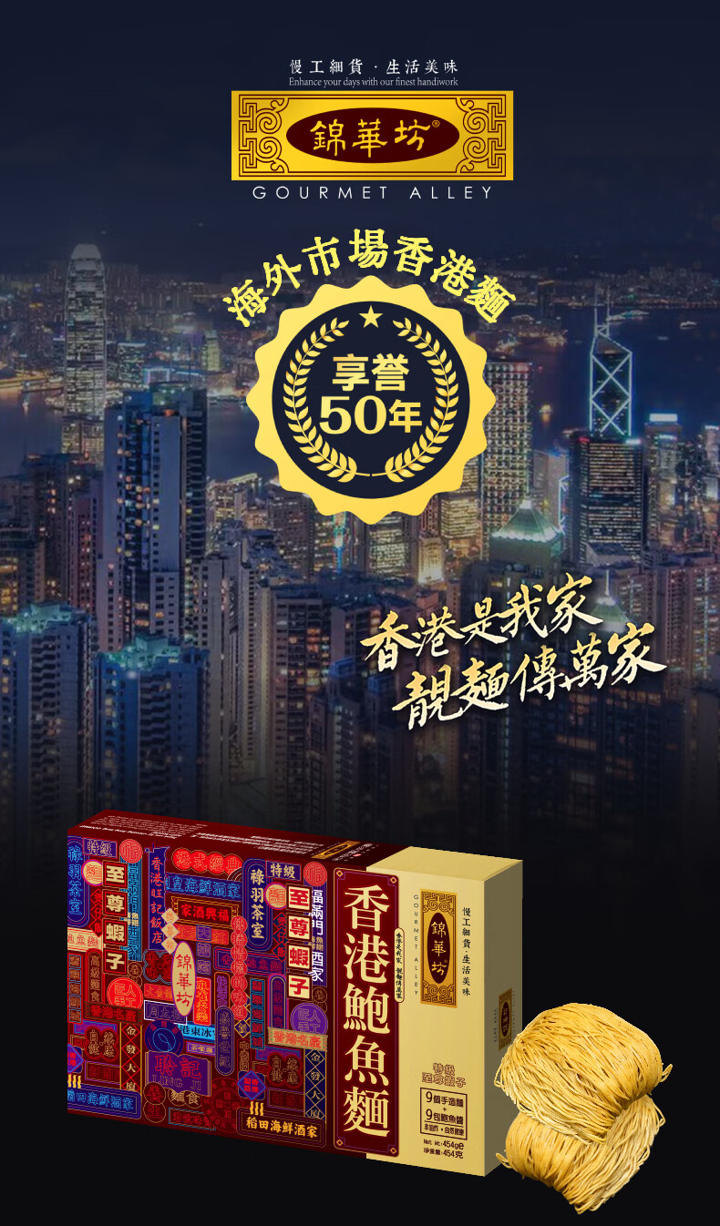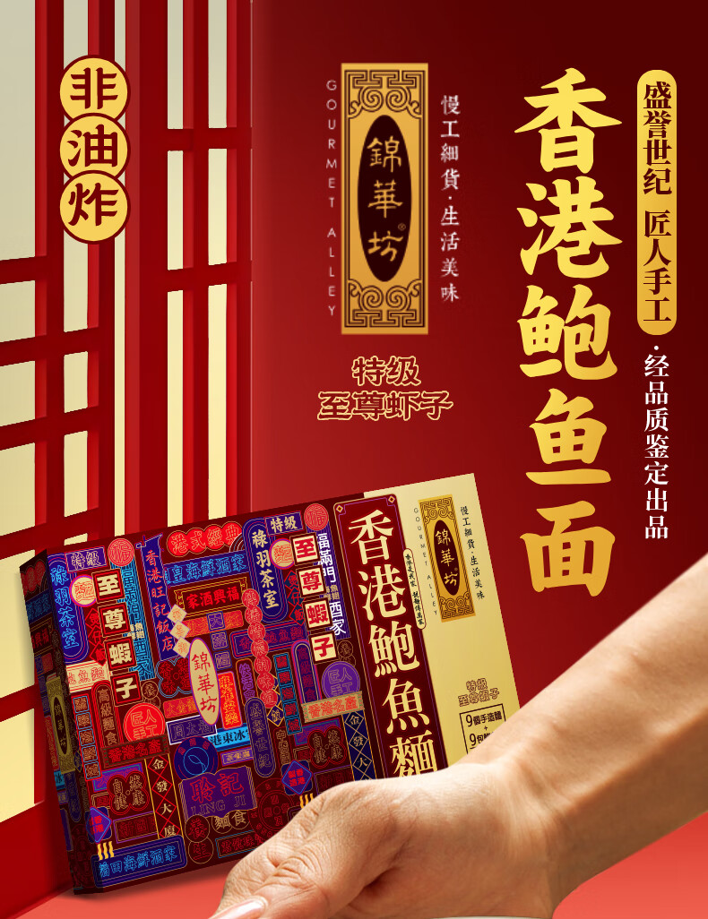 GOURMET ALLEY 錦華坊特级虾子鲍鱼面 香港传统手工竹升面鲍鱼熬汁顶级虾籽粒粒鲜味 特级虾子鲍鱼面 454g*1盒