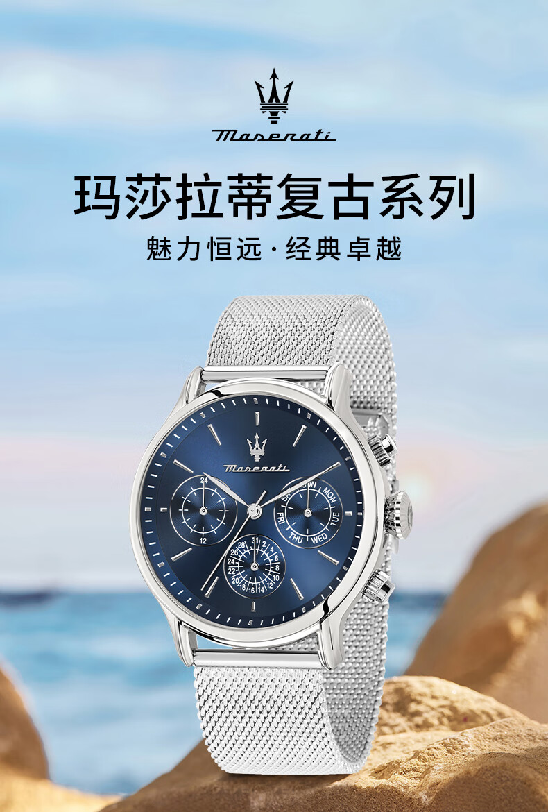 玛莎拉蒂手表男士休闲时尚潮流石英表商务休闲防水腕表男表生日礼物钢带 R8853118019
