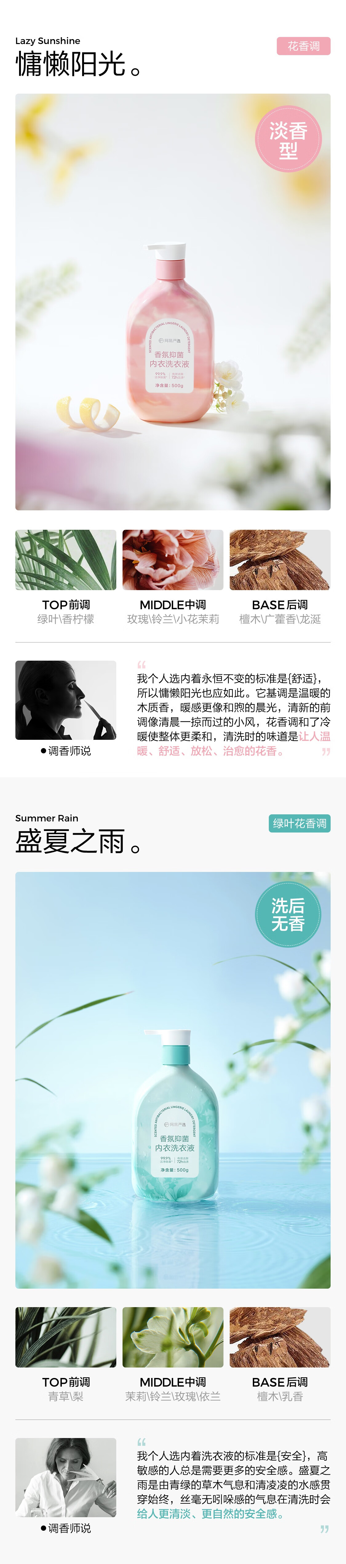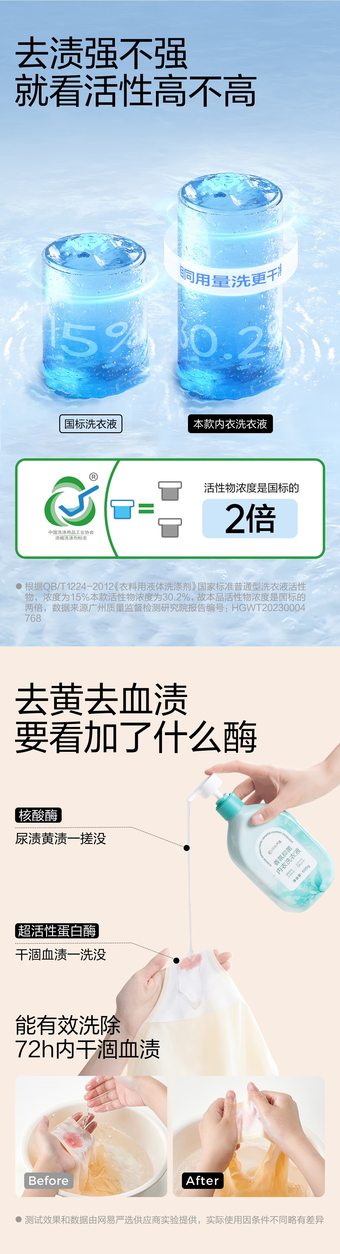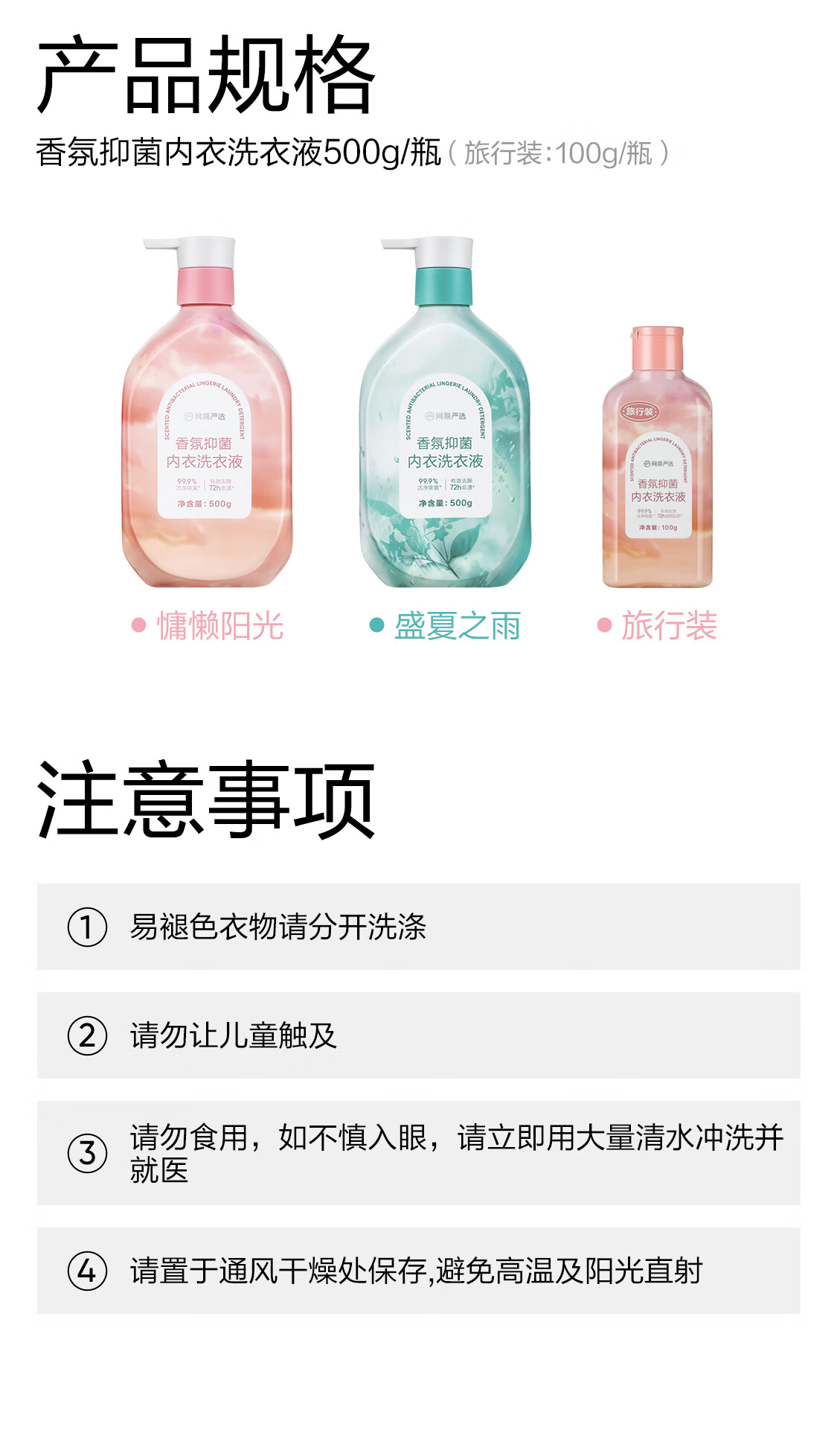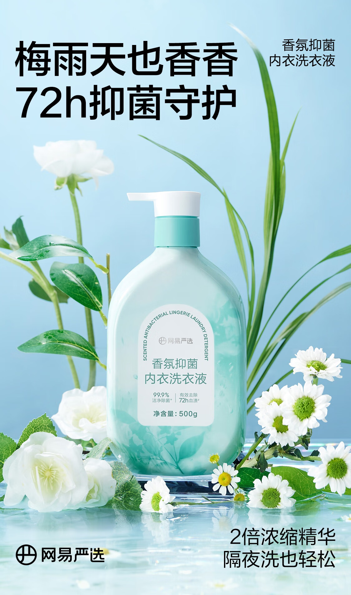 网易严选 内衣洗衣液 99%除菌率 酵素抑菌内衣洗衣液 淡香型 500g*1瓶 升级款慵懒阳光500g