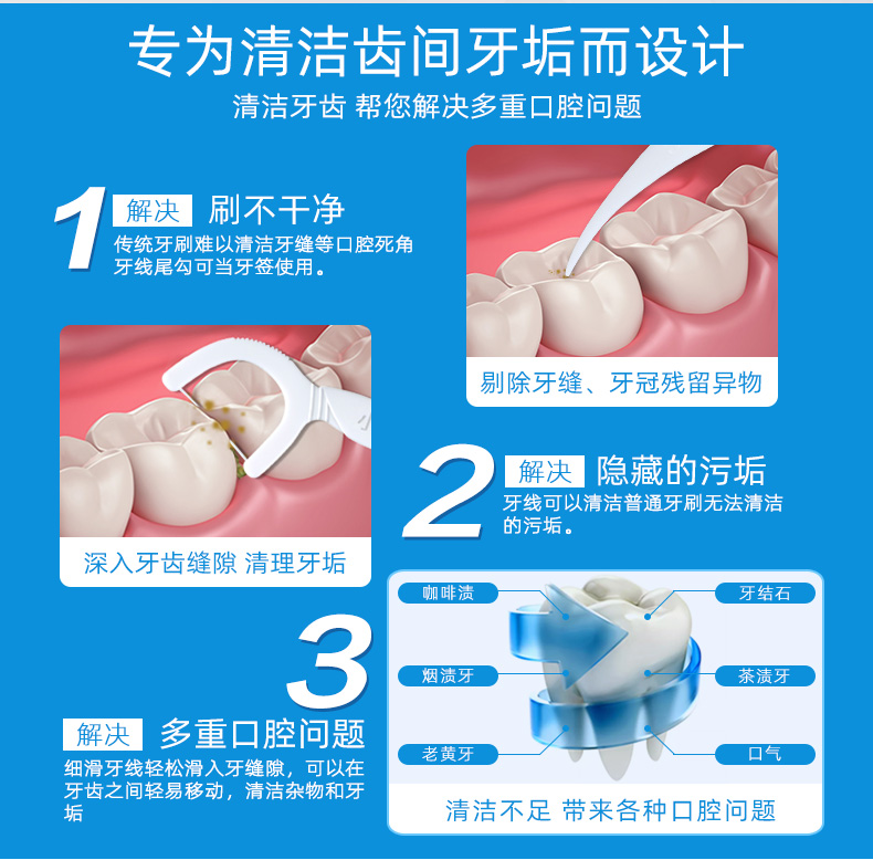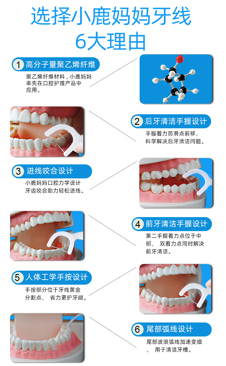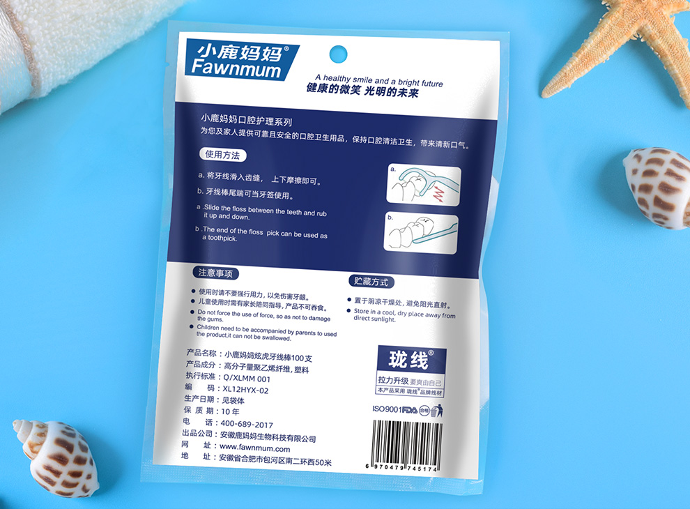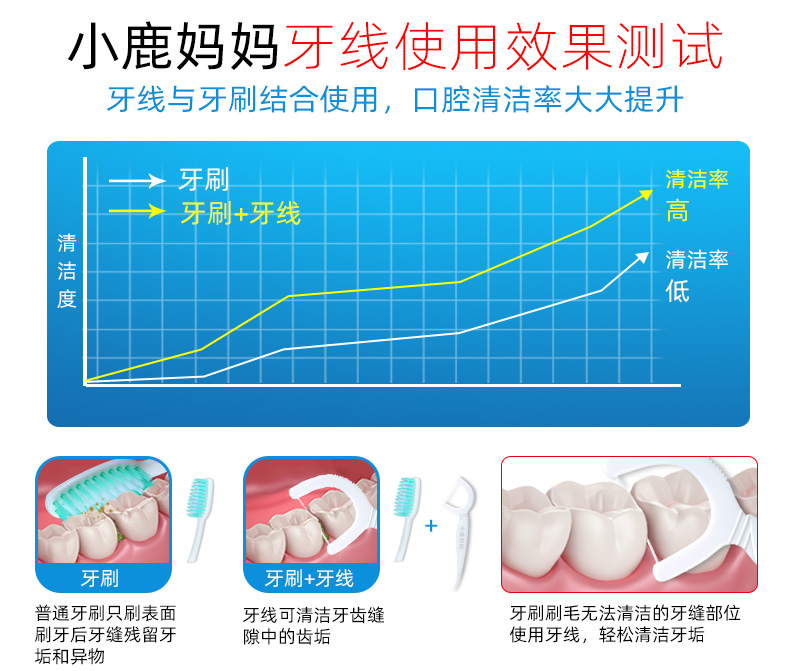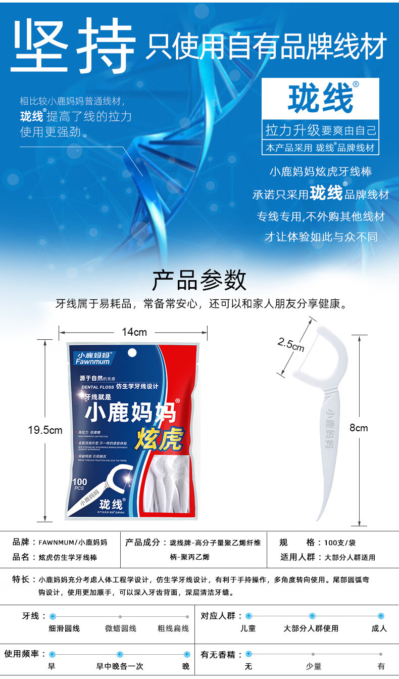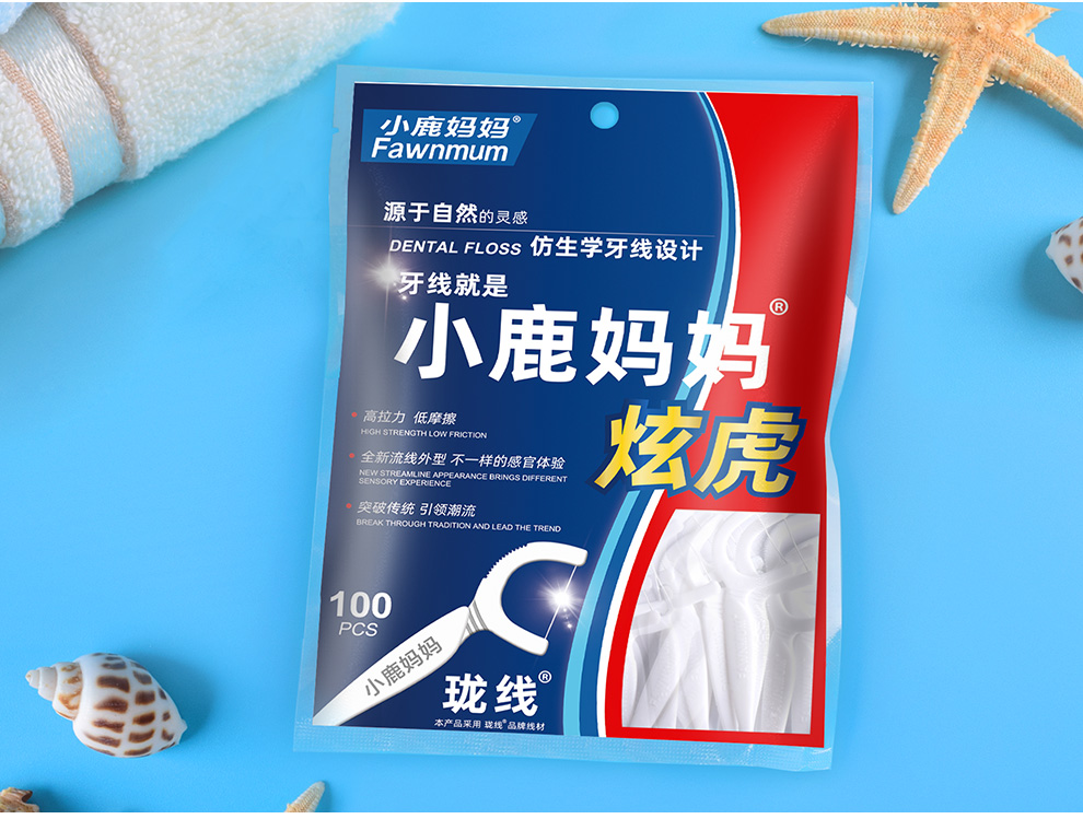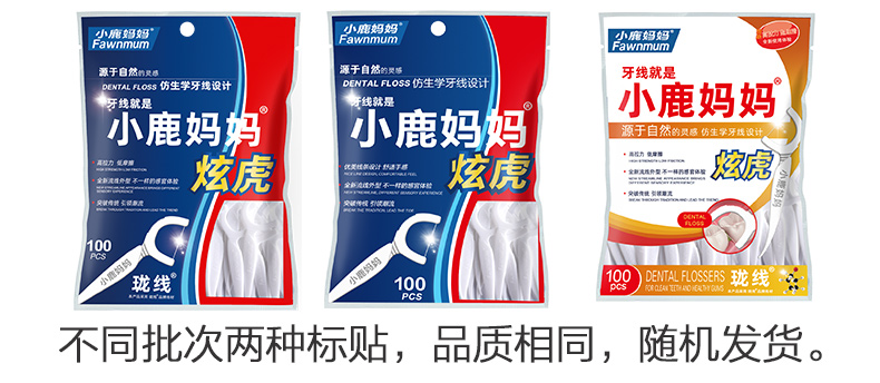 小鹿妈妈【主推】细滑牙线洁齿牙签袋装大包 贵虎款 100支 3包