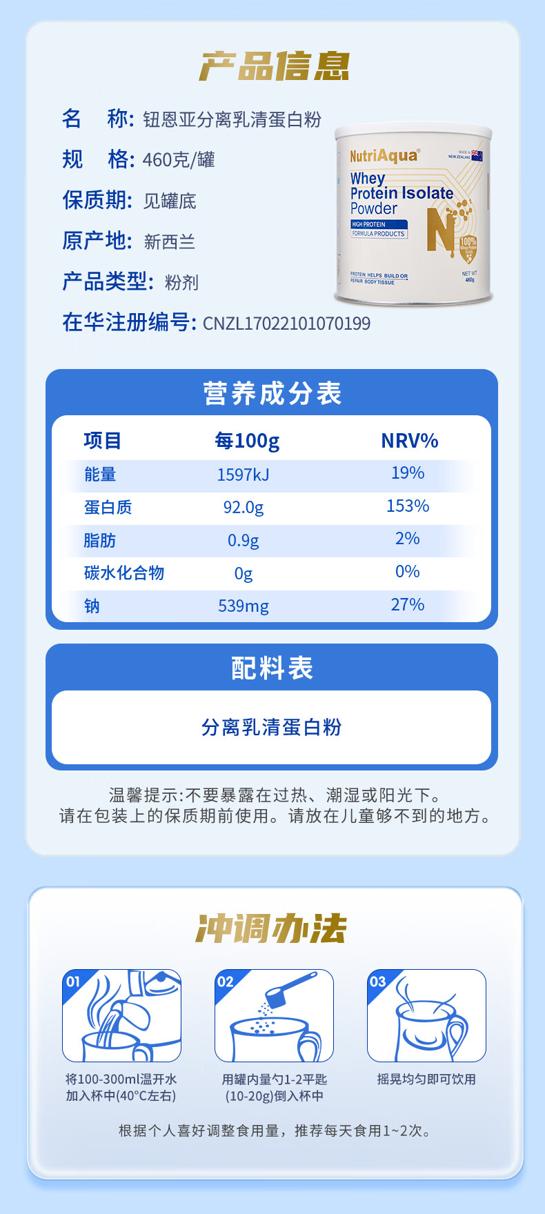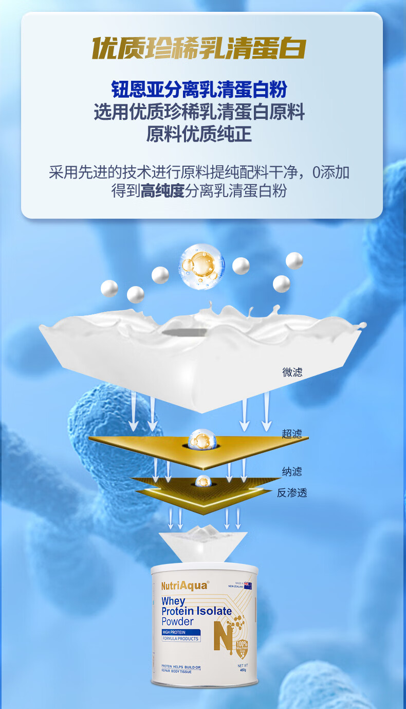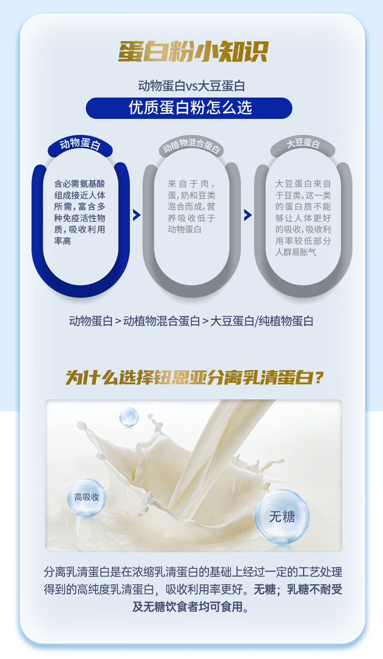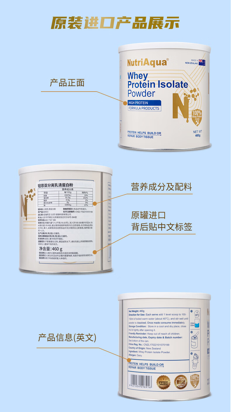 钮恩亚纯分离乳清蛋白粉动物蛋白中老年无糖术后营养补充新西兰进口 1罐送冲饮杯【92克高蛋白】