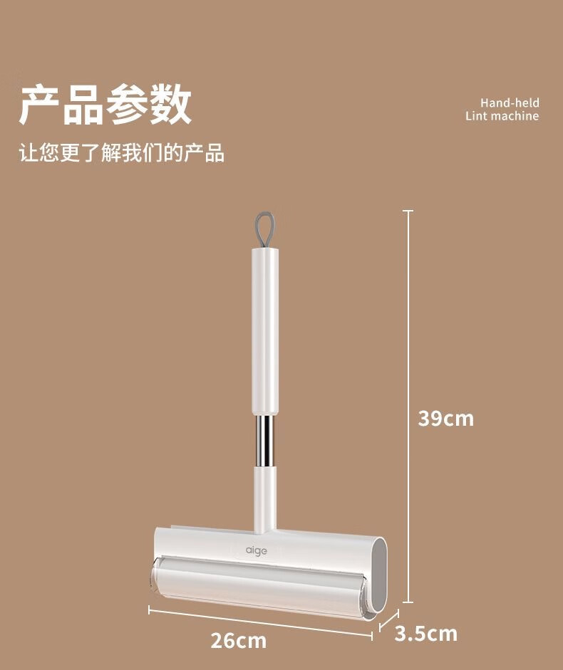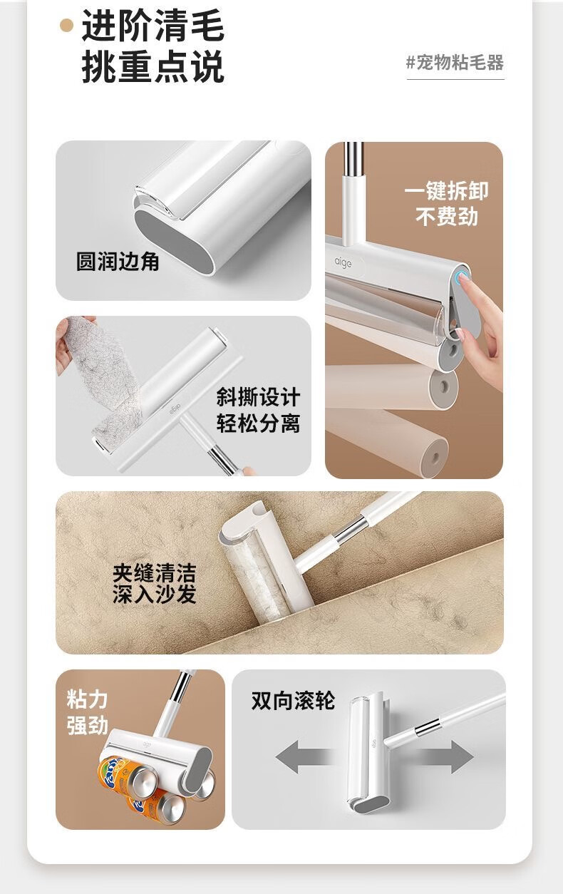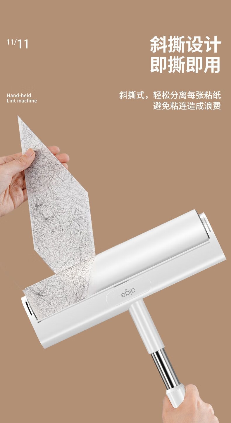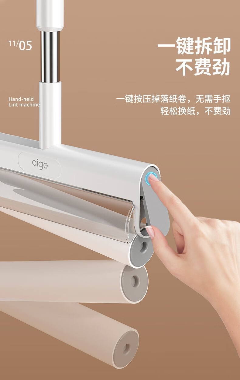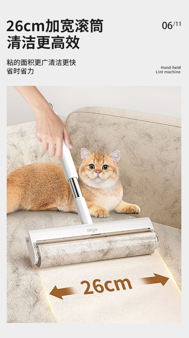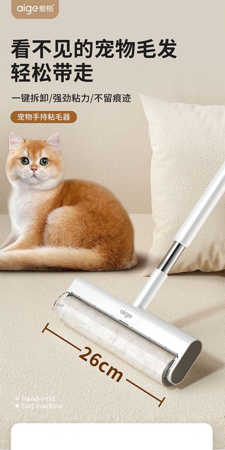 爱格粘毛器滚刷粘尘纸滚筒滚轮长柄长杆扫床刷滚床单除灰尘毛发神器 26cm(3卷撕纸-240张)手持折叠款