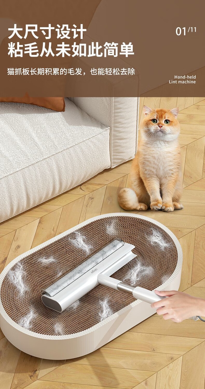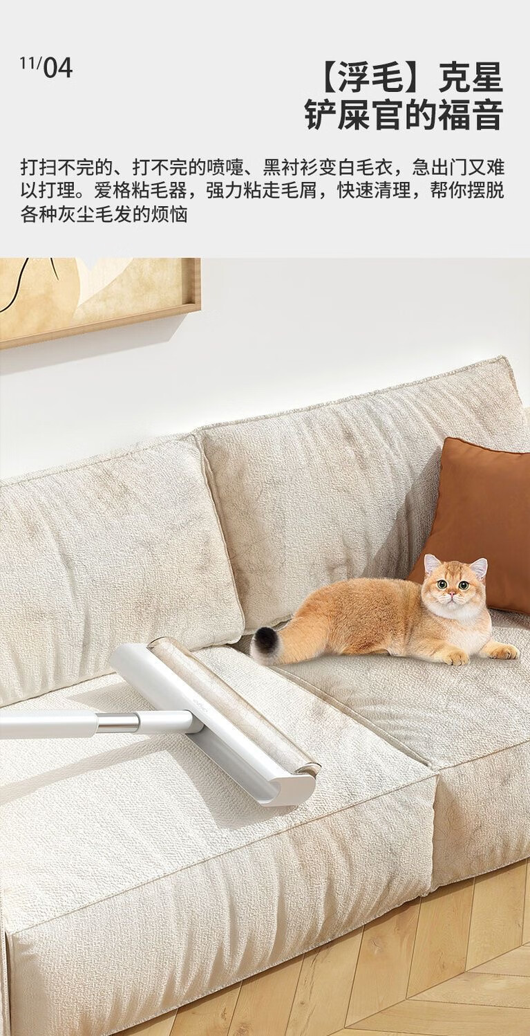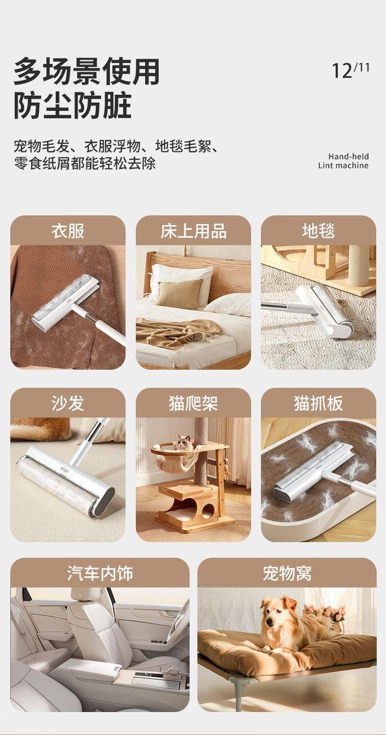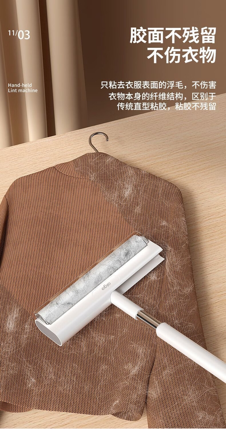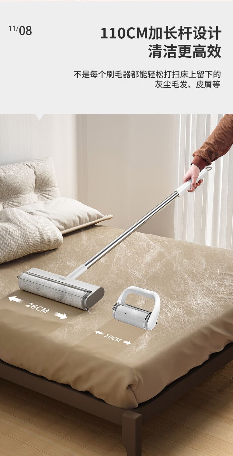 爱格粘毛器滚刷粘尘纸滚筒滚轮长柄长杆扫床刷滚床单除灰尘毛发神器 26cm(3卷撕纸-240张)手持折叠款