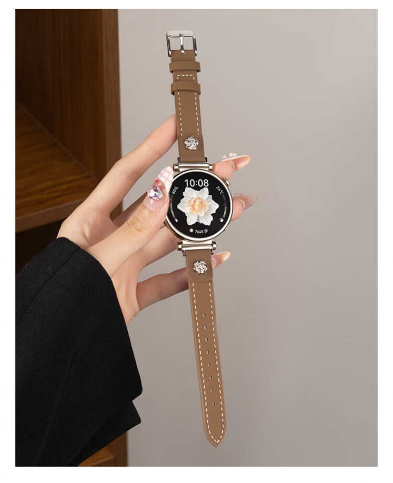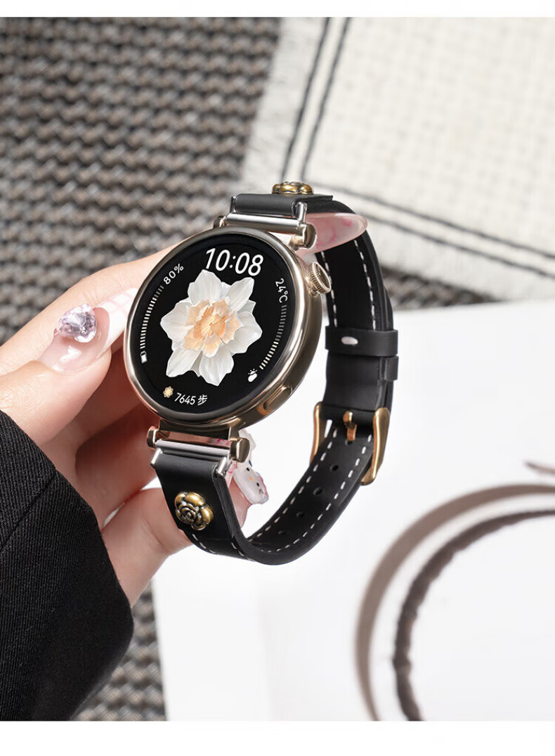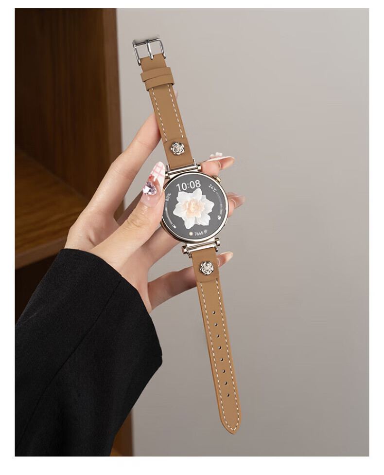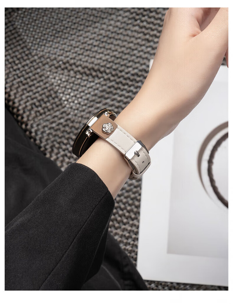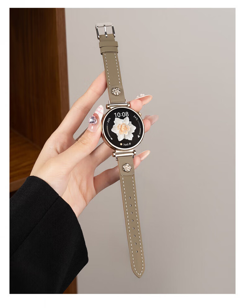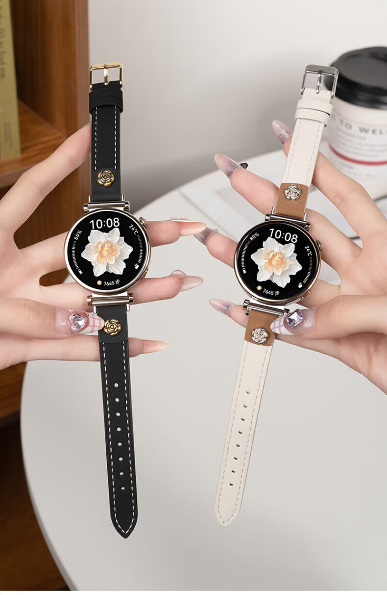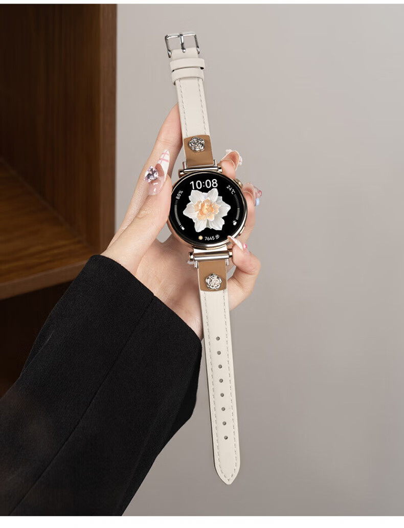 格汇【真皮表带】适用华为手表gt6/gt5/gt4表带watch5/watch4pro小蛮腰腕带gt5pro轻奢高级感女款表带 山茶花皮【米白】 华为GT6/GT5/GT4【41MM表盘】18mm