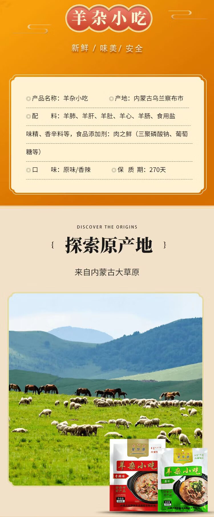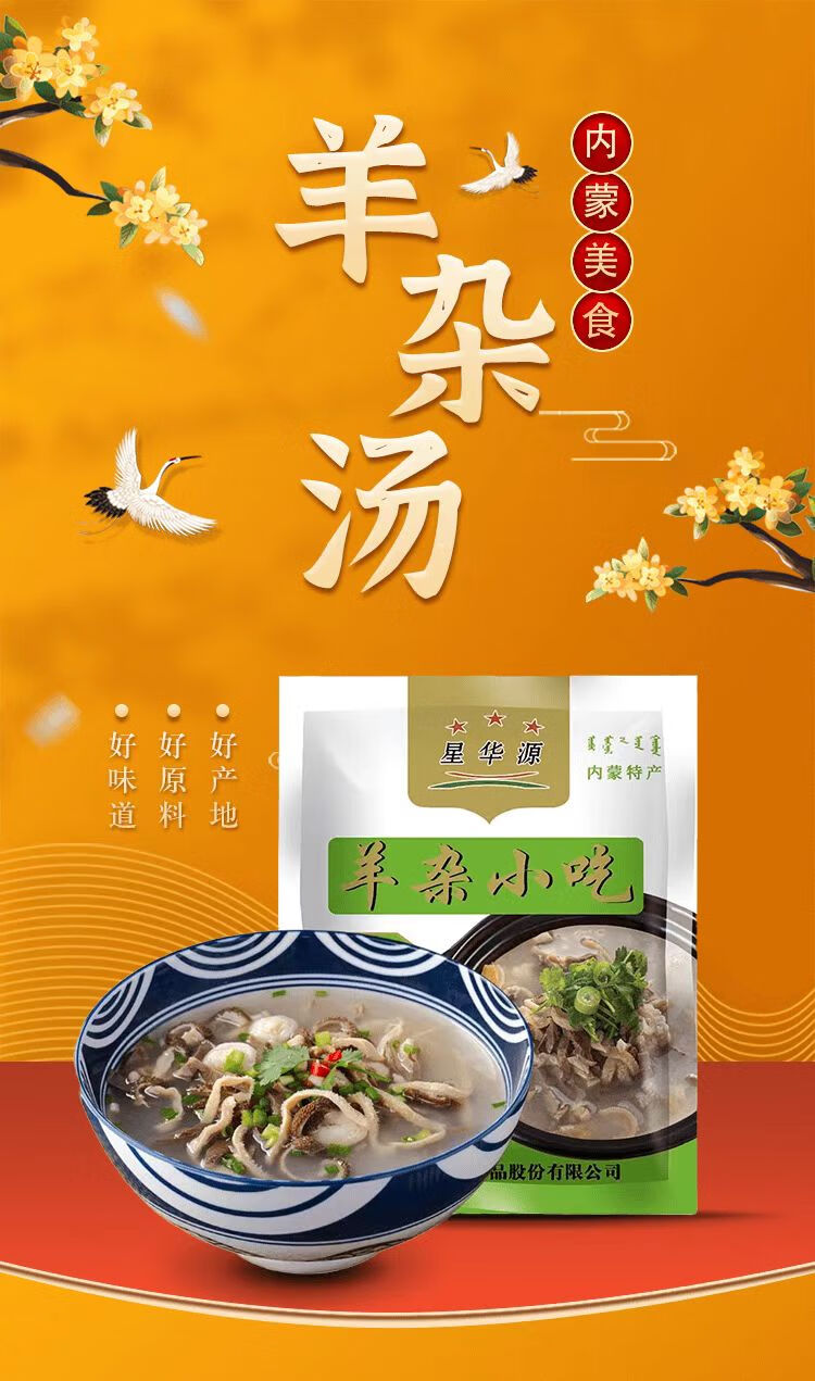 星华源 内蒙古羊杂汤500g 速食羊杂碎羊肉汤小吃羊下水草原特产 原味250g+香辣味250g