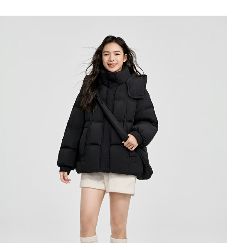 太平鸟女装轻羽绒合集反季清仓白鸭绒羽绒服简约时尚短款中长款 羽绒服黑色 M