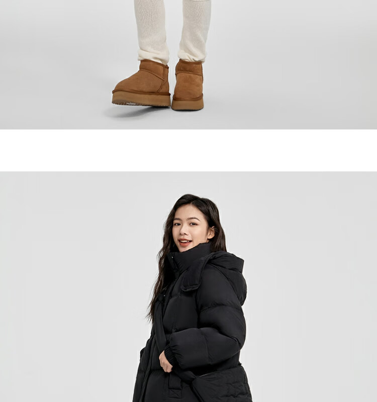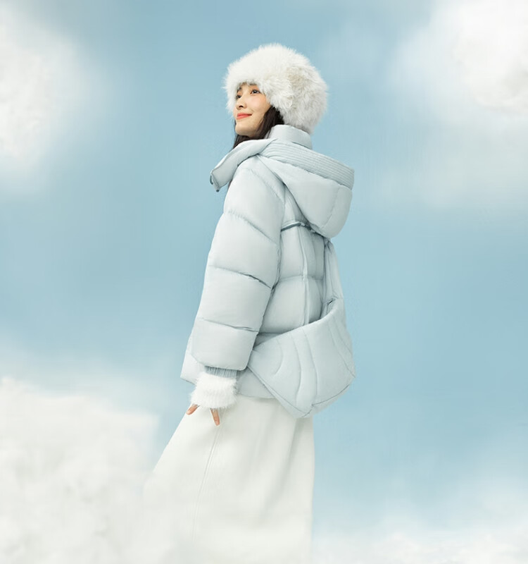 太平鸟女装轻羽绒合集反季清仓白鸭绒羽绒服简约时尚短款中长款 咖色连帽中长款羽绒服 L
