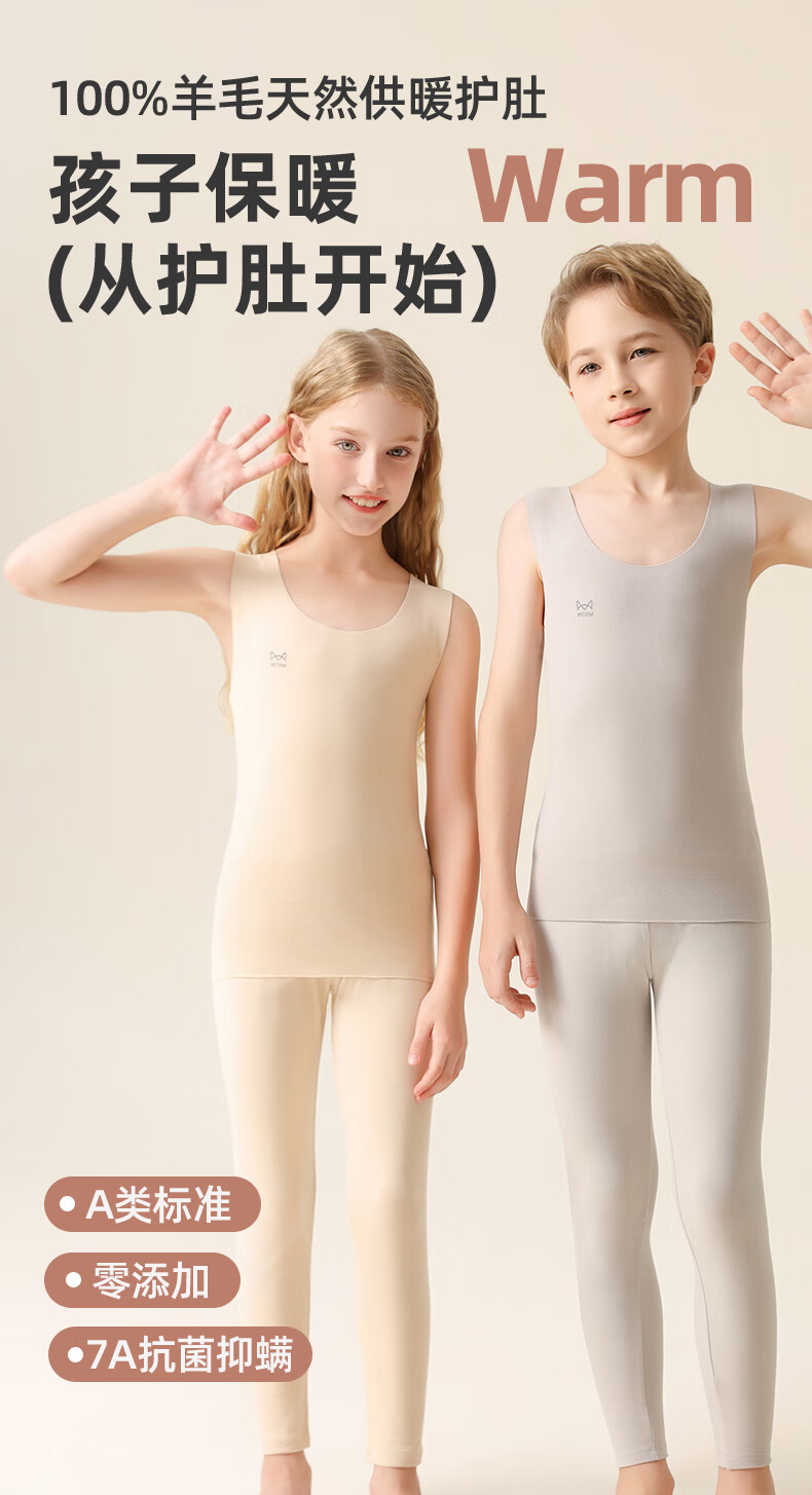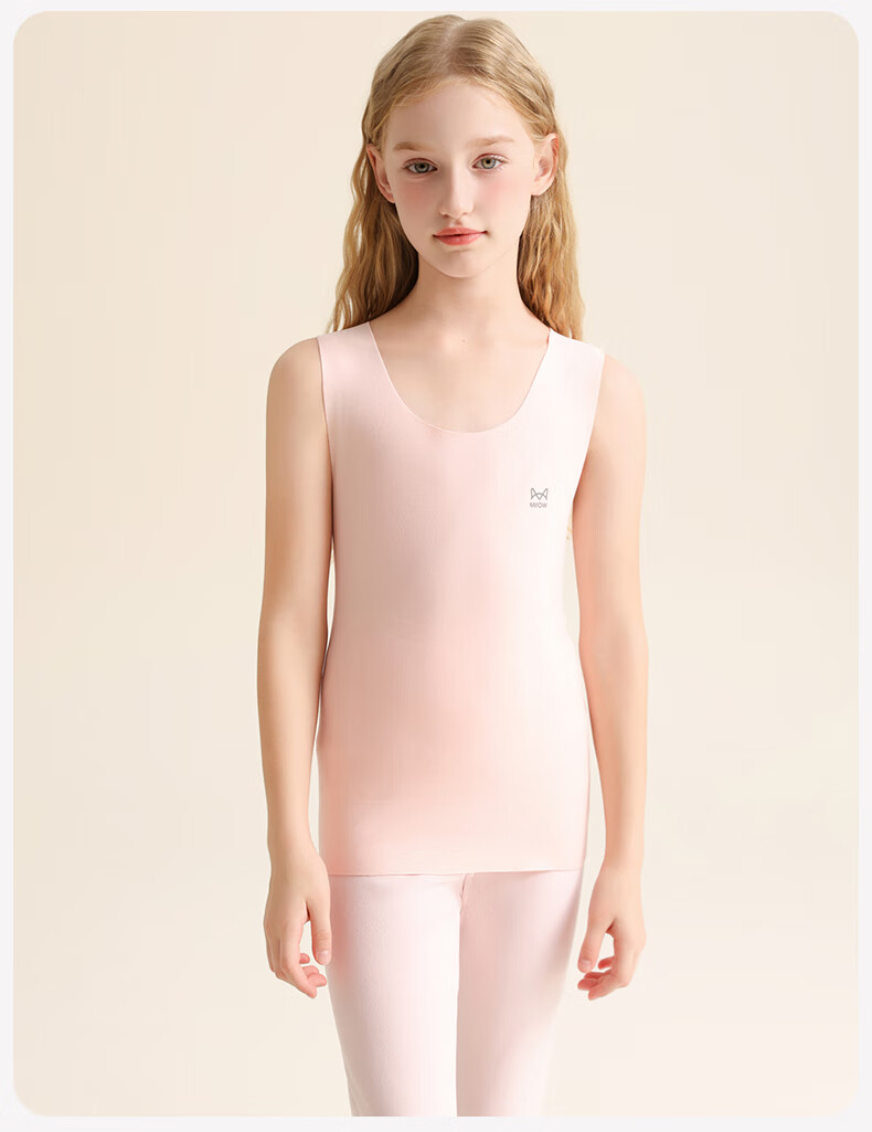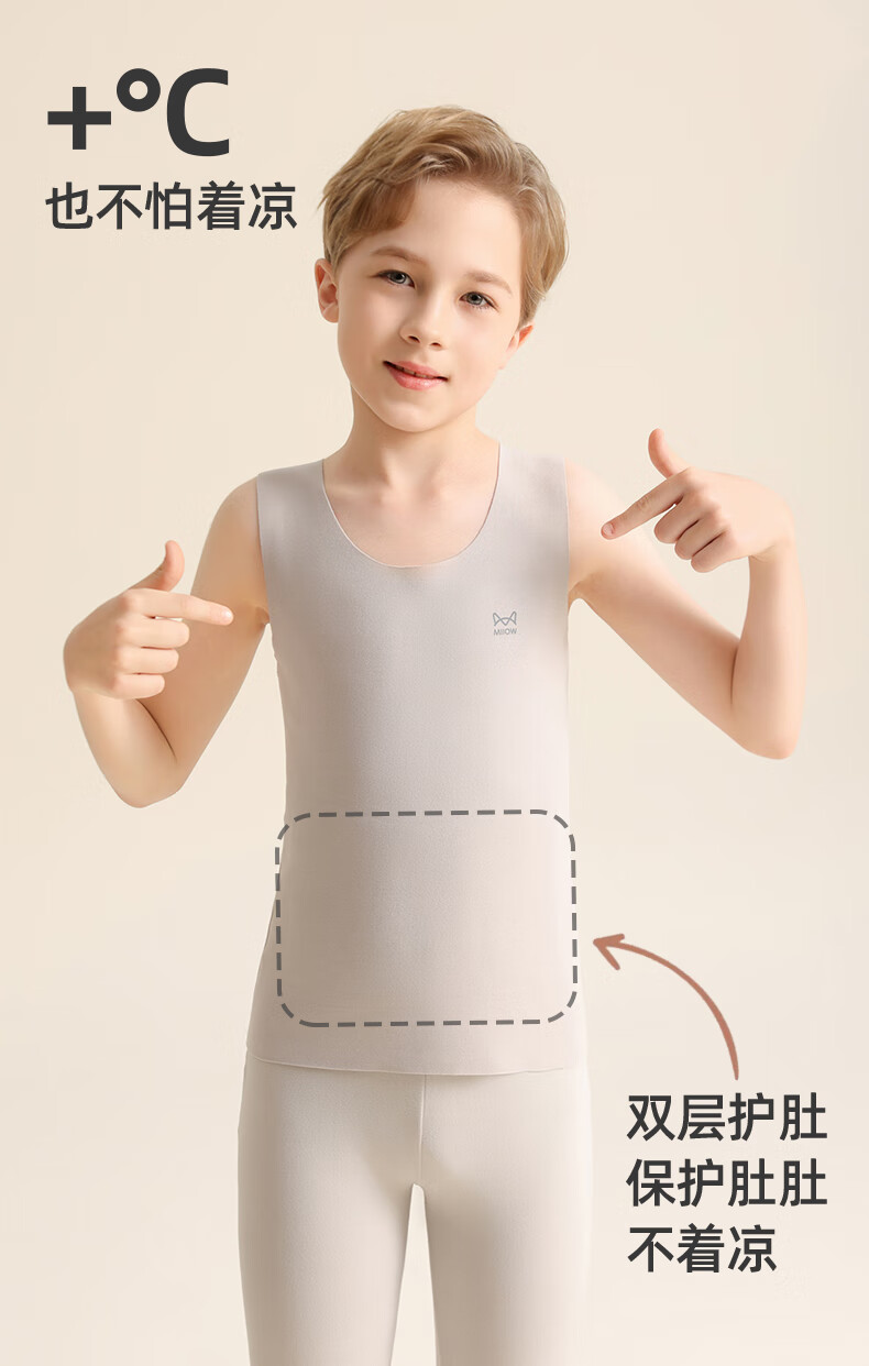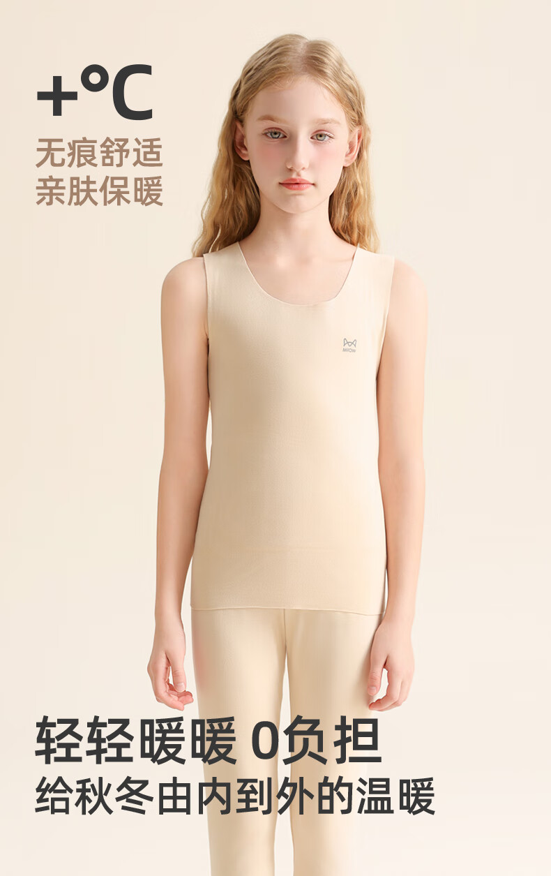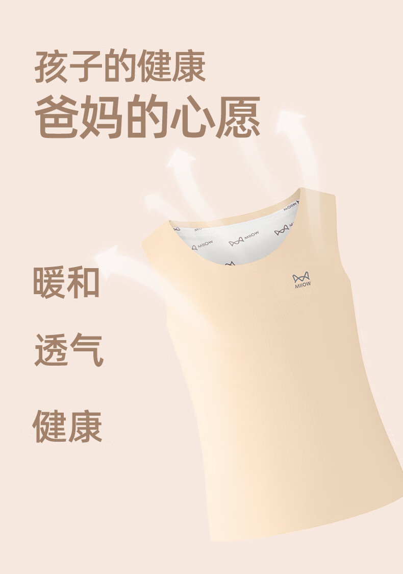猫人(MiiOW)德绒保暖马甲女童100%羊毛贴片背心秋冬内穿男童护肚加绒马甲 樱花粉 120 建议体重17-45斤