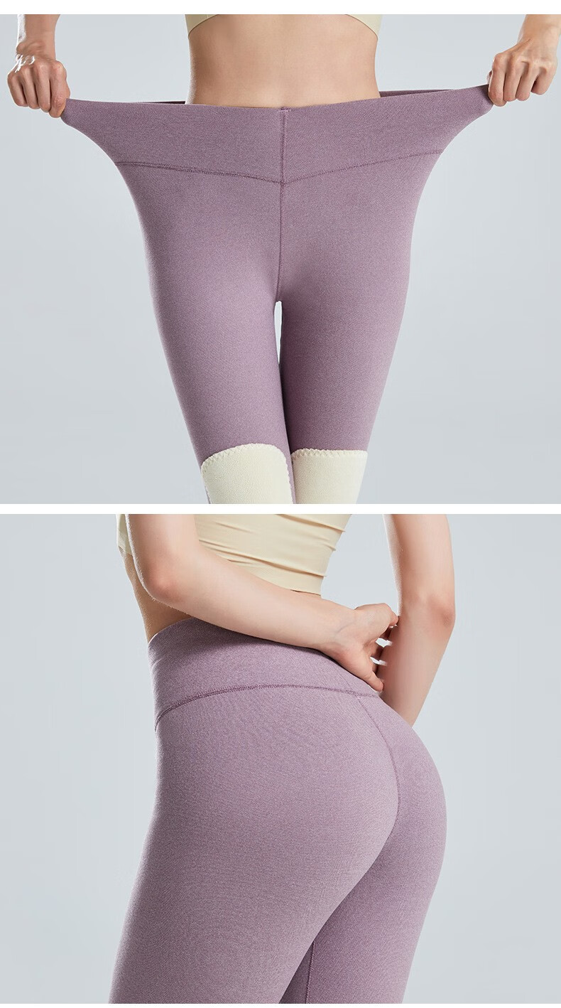 恒源祥外穿打底裤女羊毛加绒加厚保暖秋冬季九分裤新款高腰显瘦踩脚女士 CI2110216 粉色 均码 【80-120斤】