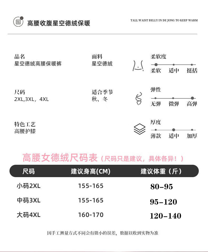 蜓秀高腰德绒秋裤女士保暖裤毛裤衬裤线裤 男加长户膝-深灰 3XL