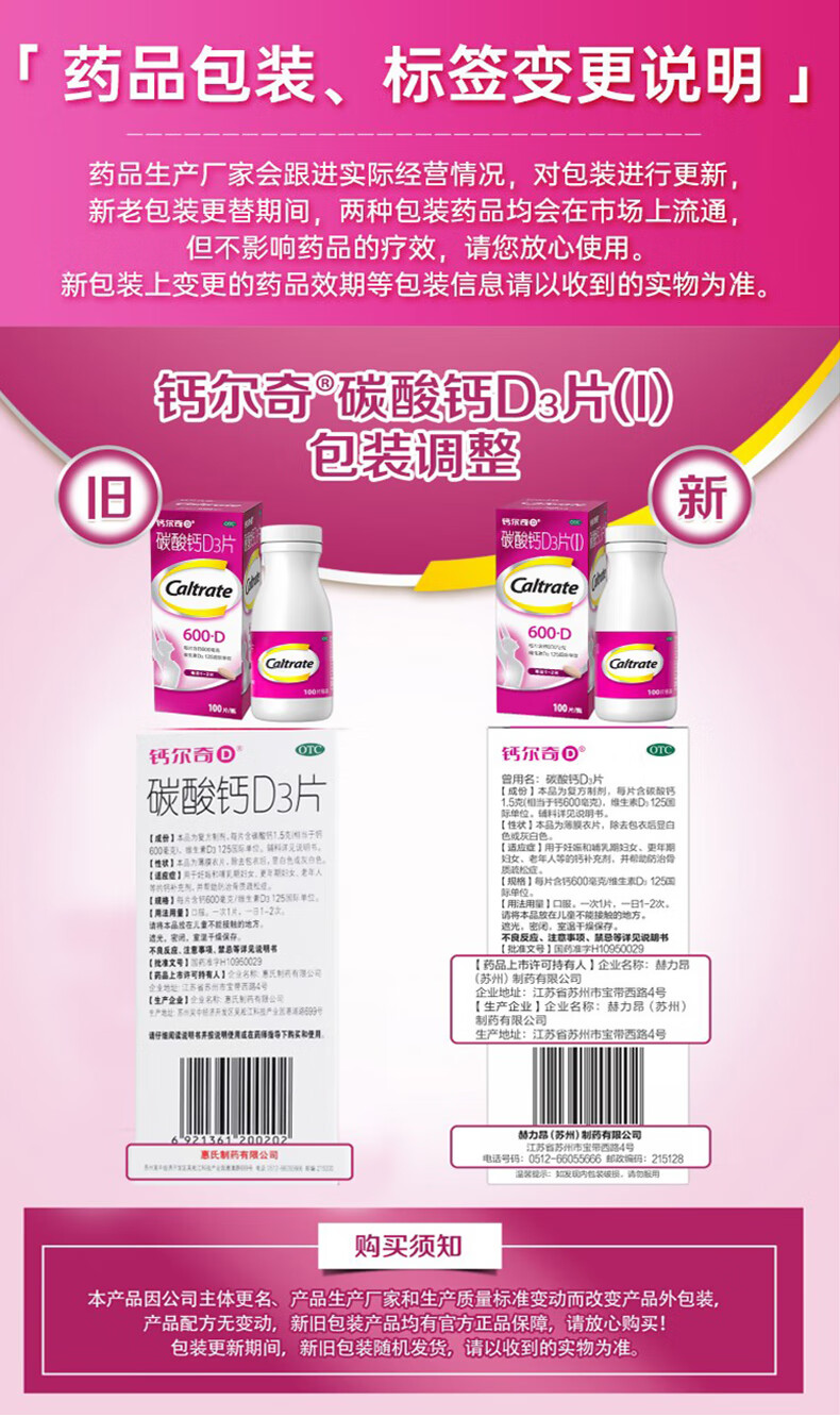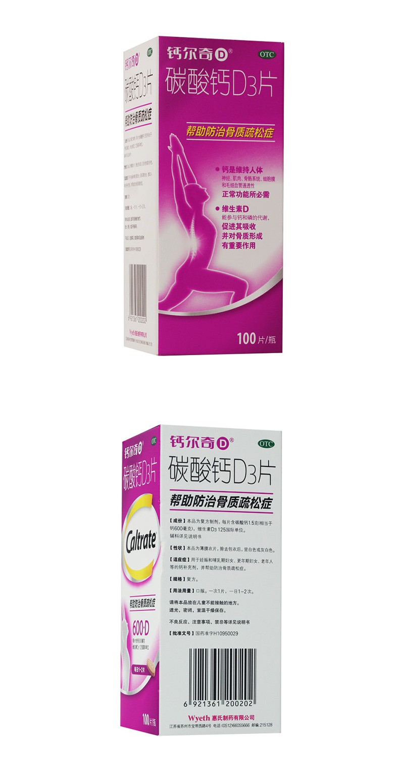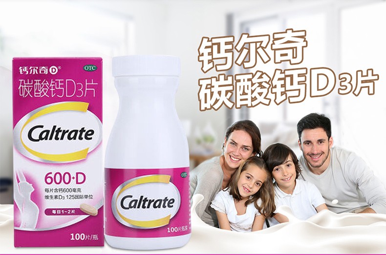 [钙尔奇(Caltrate)]碳酸钙D3片(Ⅰ) 0.6g:125IU*100片 1盒装 孕妇成人老年人补钙 妊娠哺乳钙补充