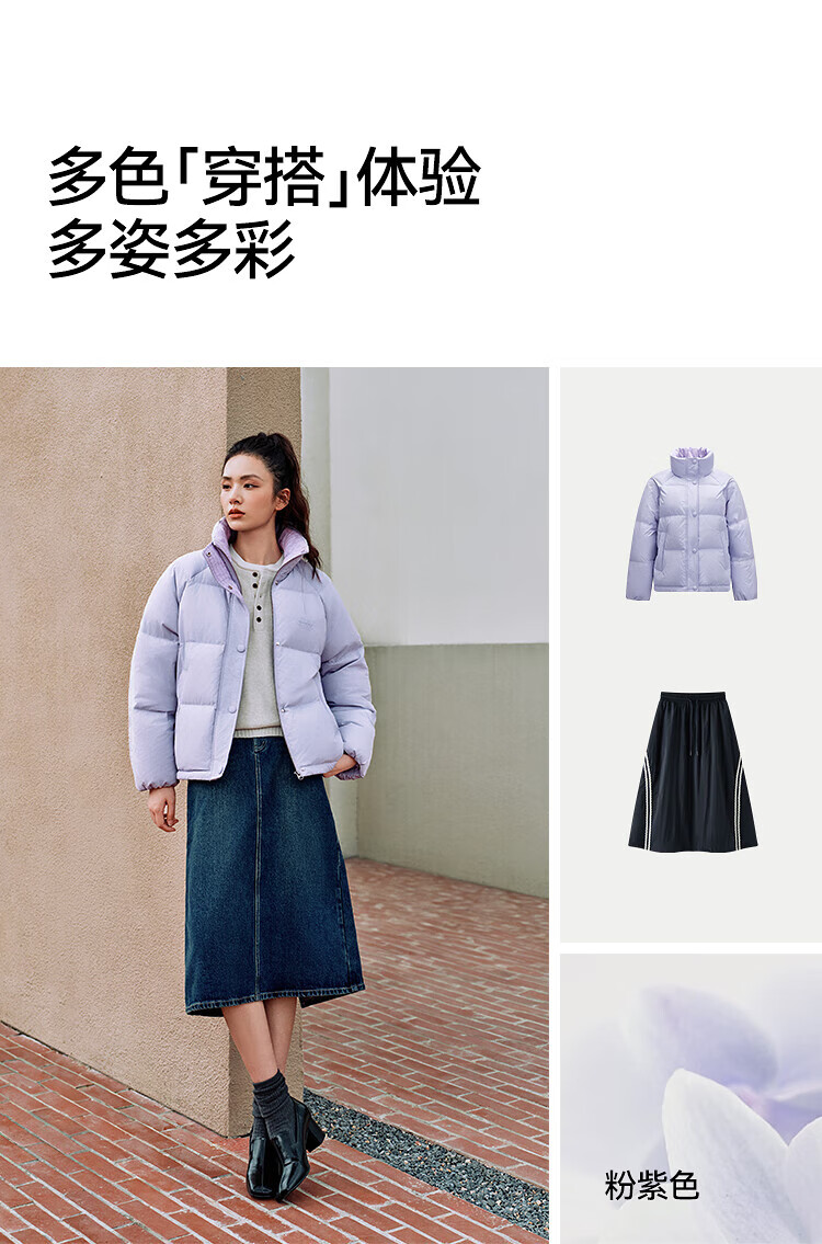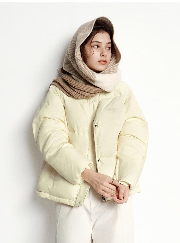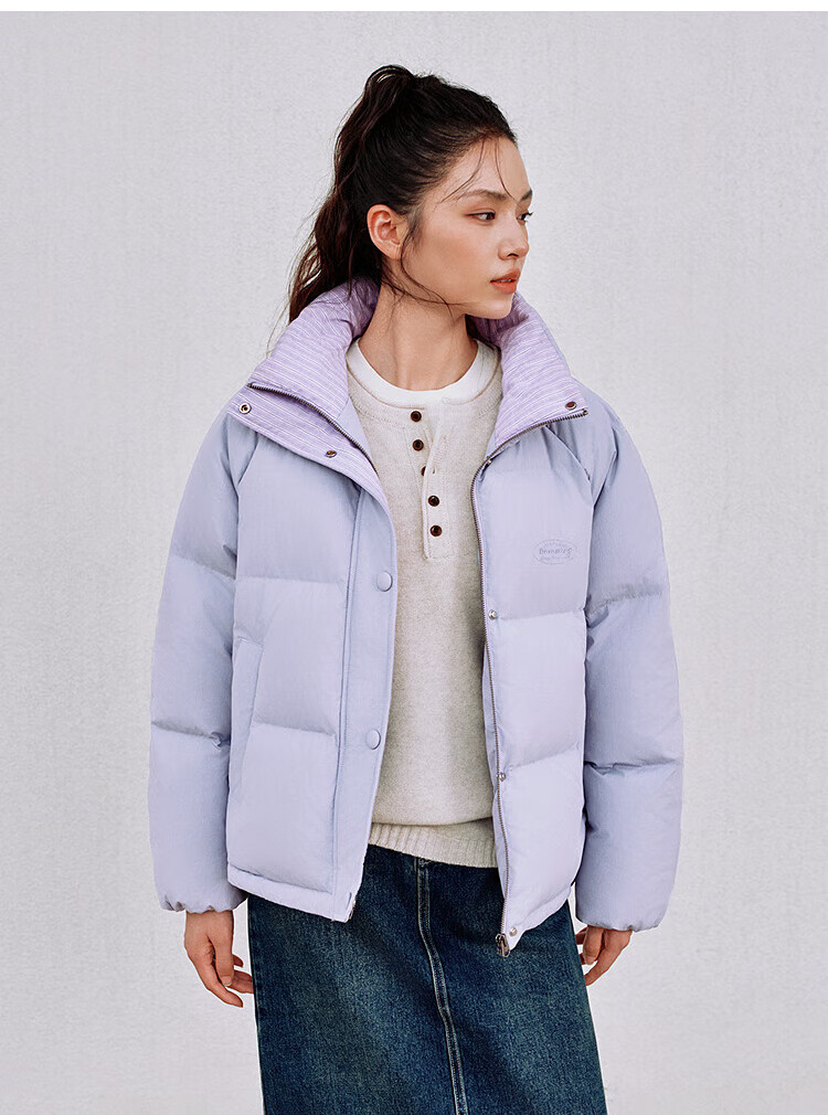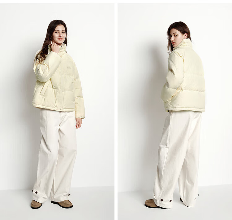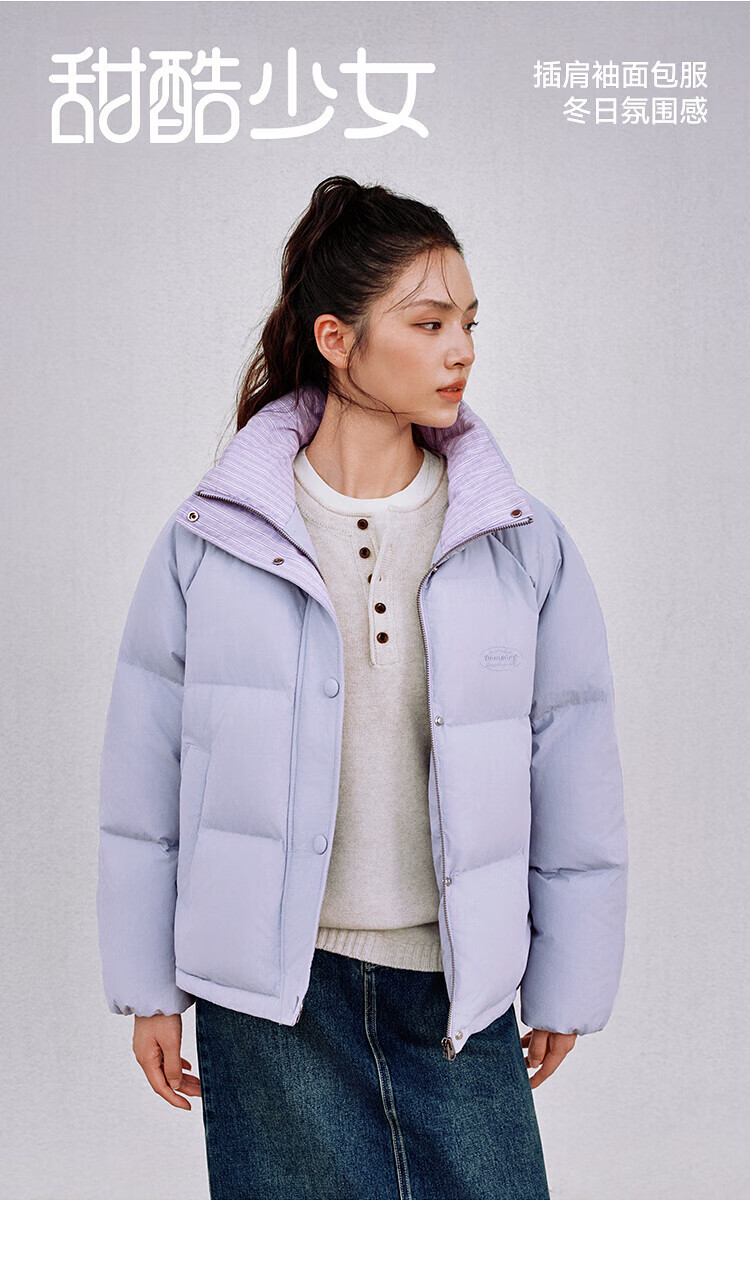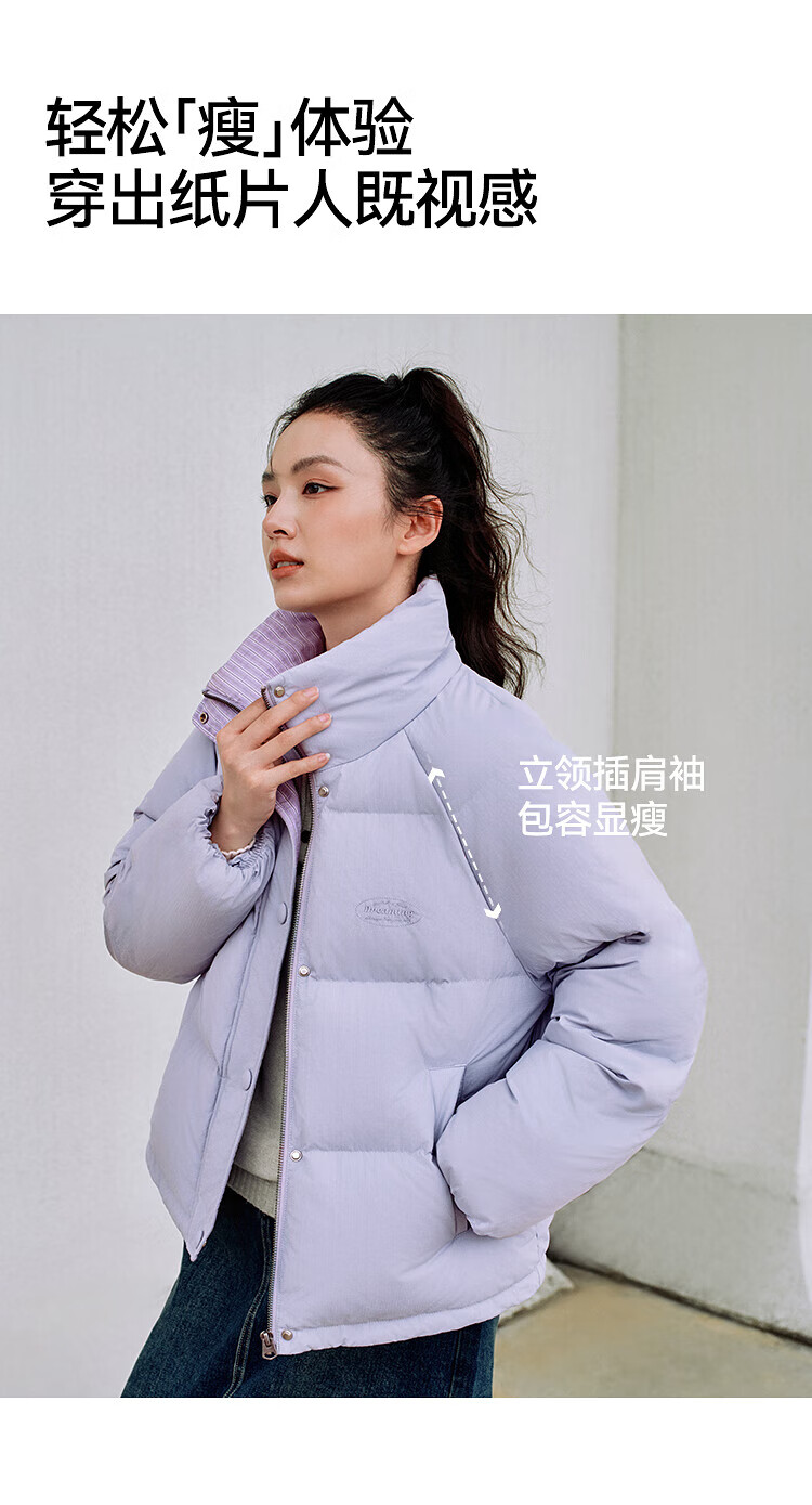 森马(Semir)羽绒服女肌理拼接条纹学院风2025冬新款立领宽松插肩袖面包服 香草白(白鸭绒)10710 S