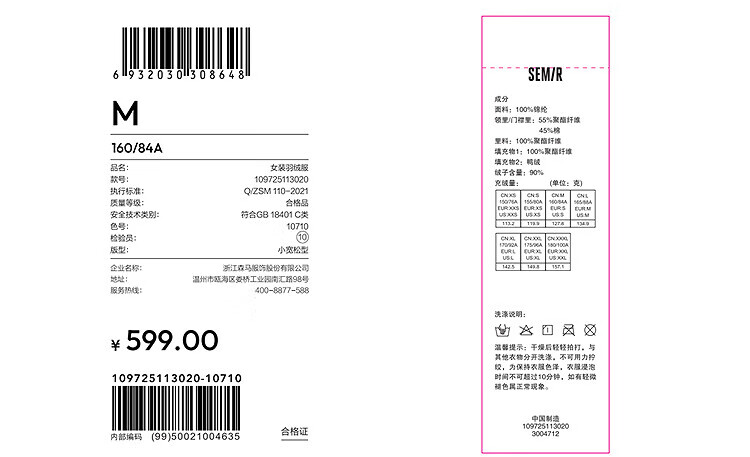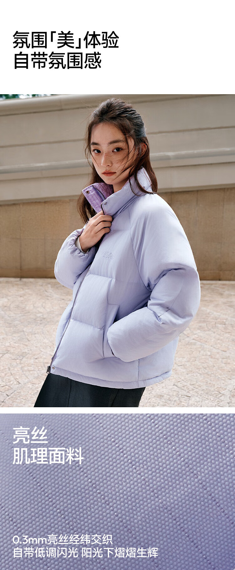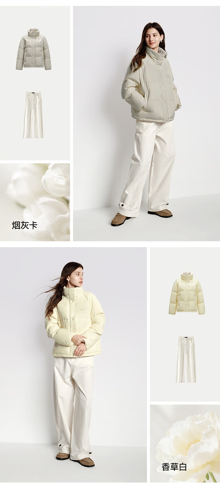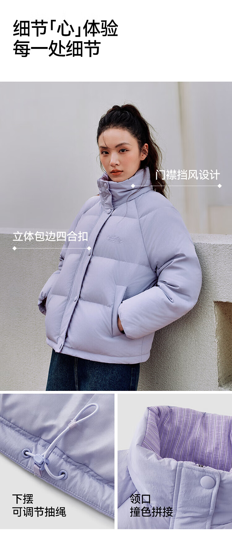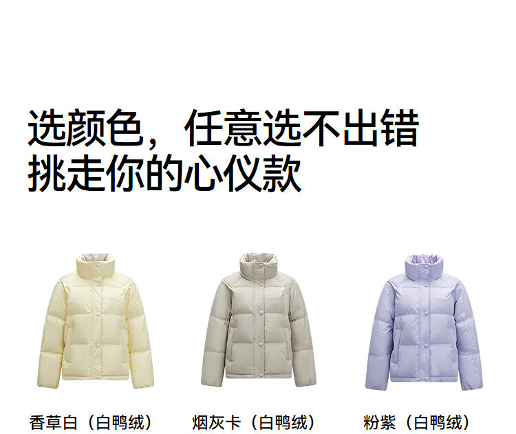 森马(Semir)羽绒服女肌理拼接条纹学院风2025冬新款立领宽松插肩袖面包服 香草白(白鸭绒)10710 S