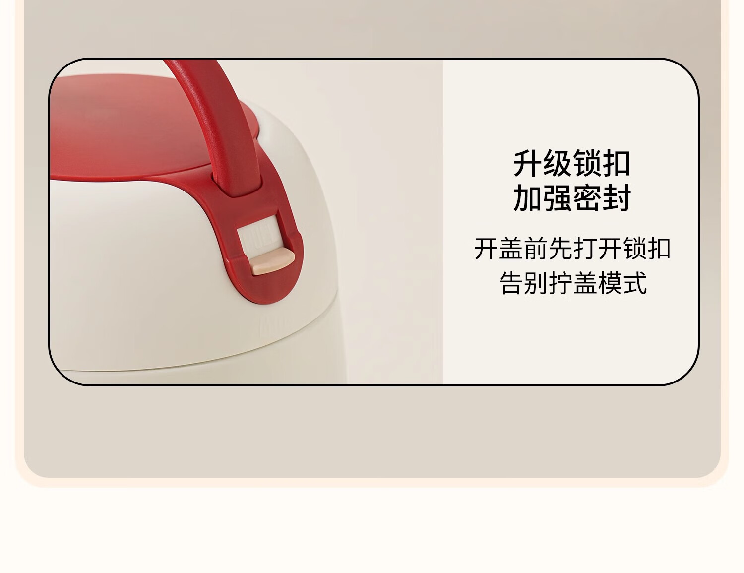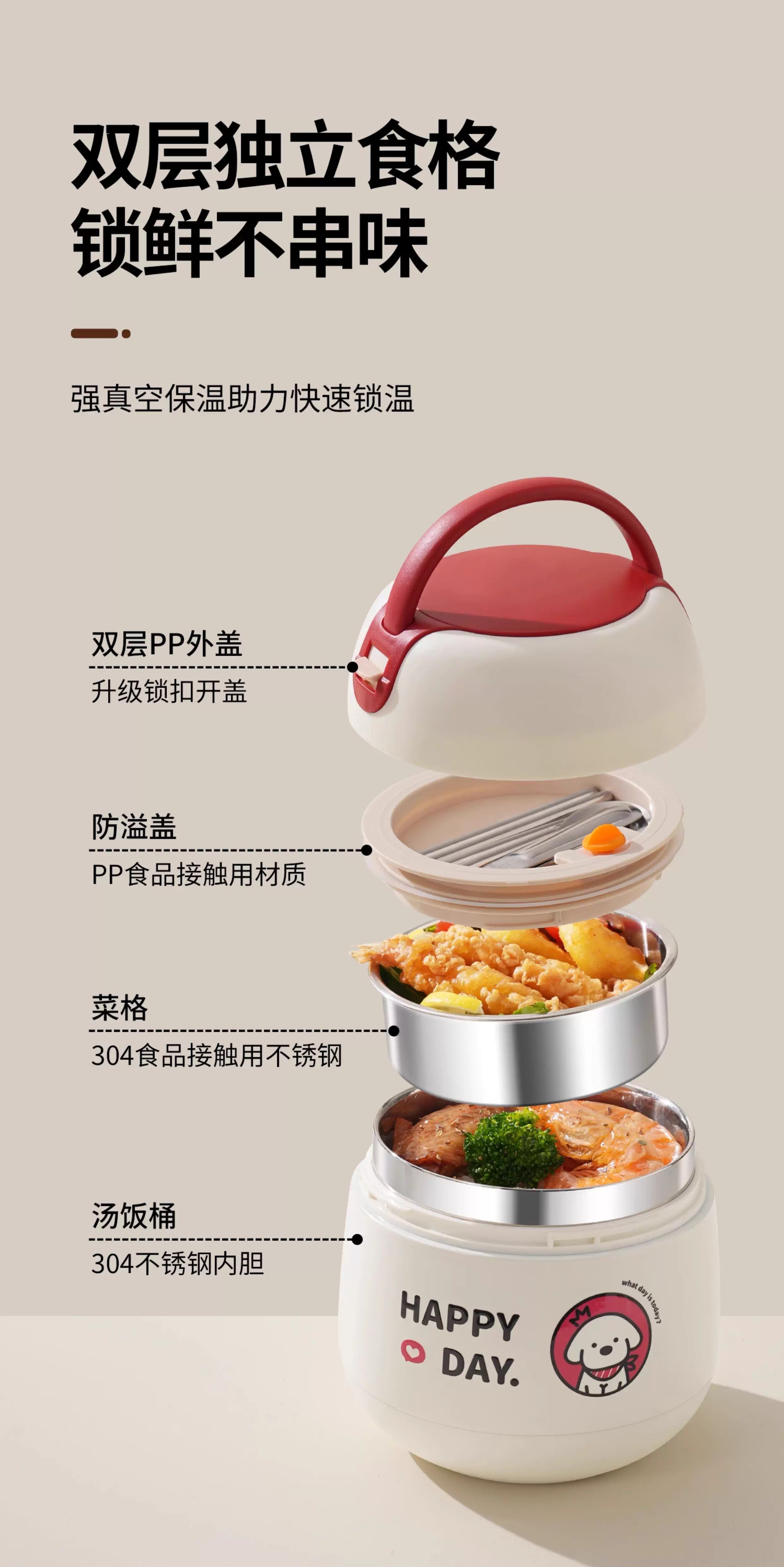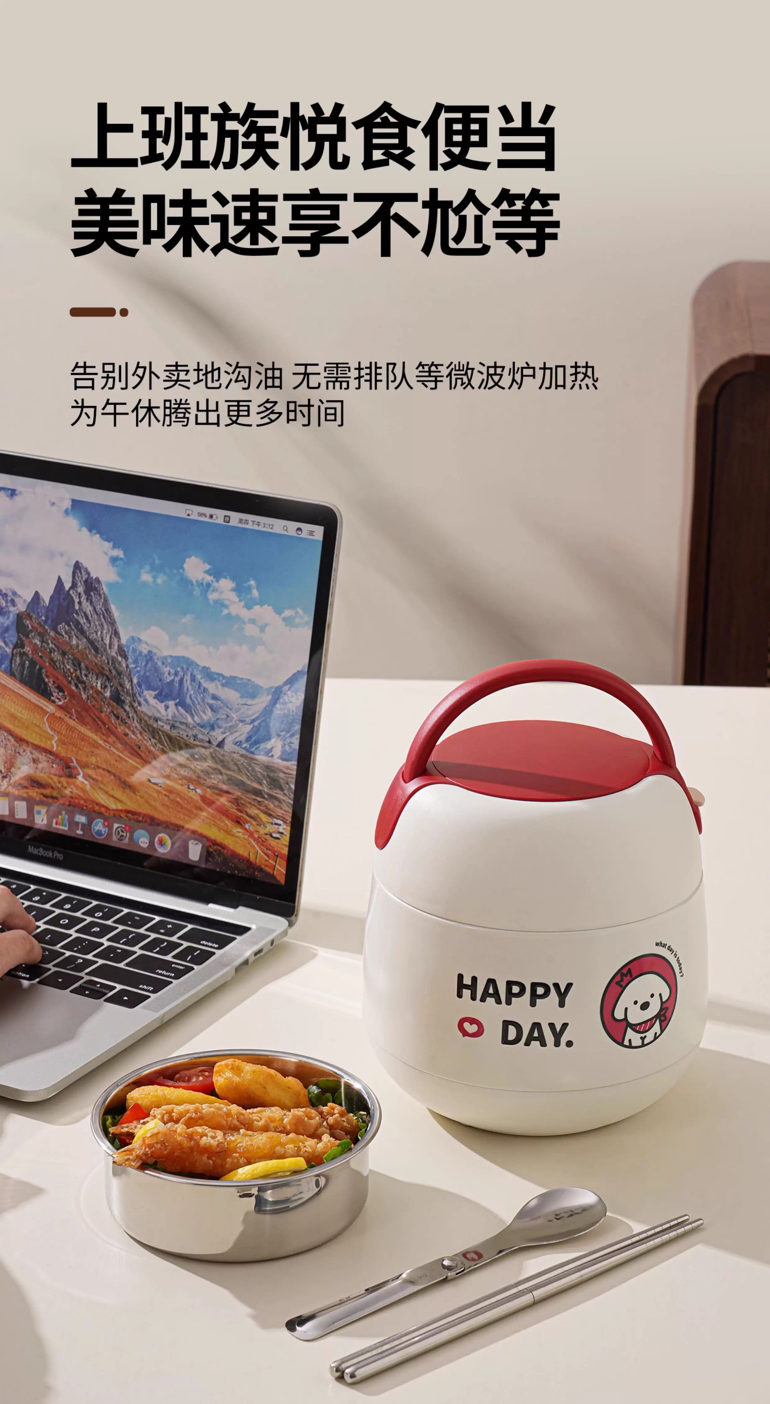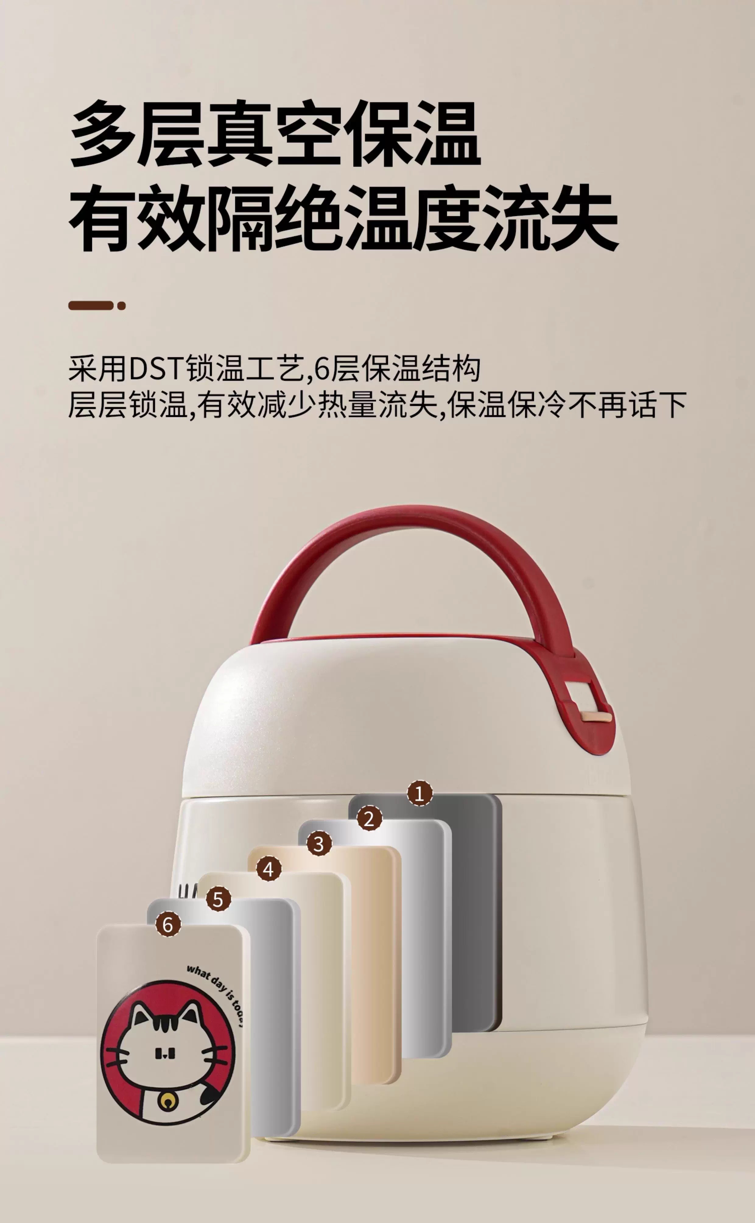 AILUKI日本保温桶饭盒24小时长效保温上班族小学生专用便当带饭提桶神器 白红-小猫1200ml【送折叠筷勺】
