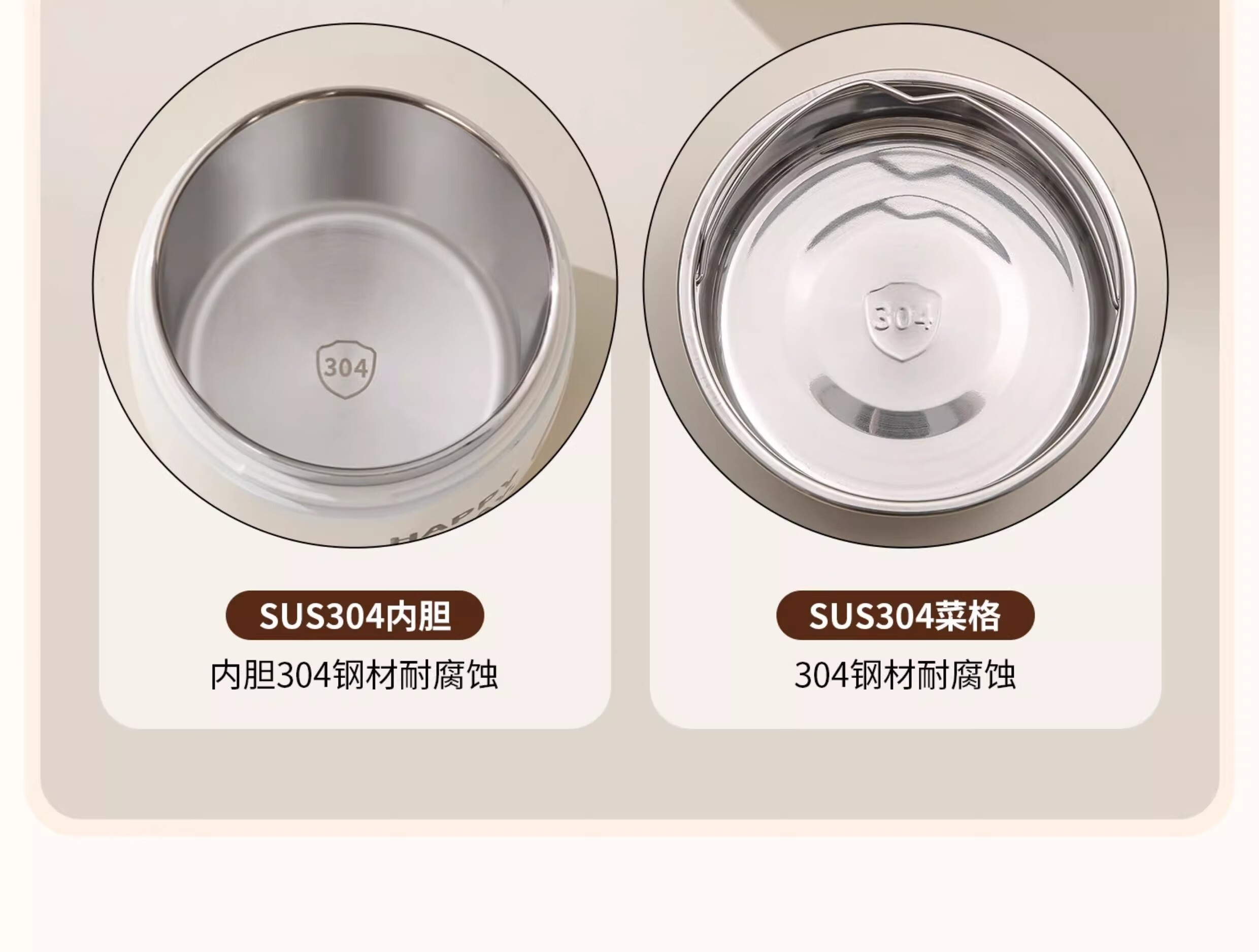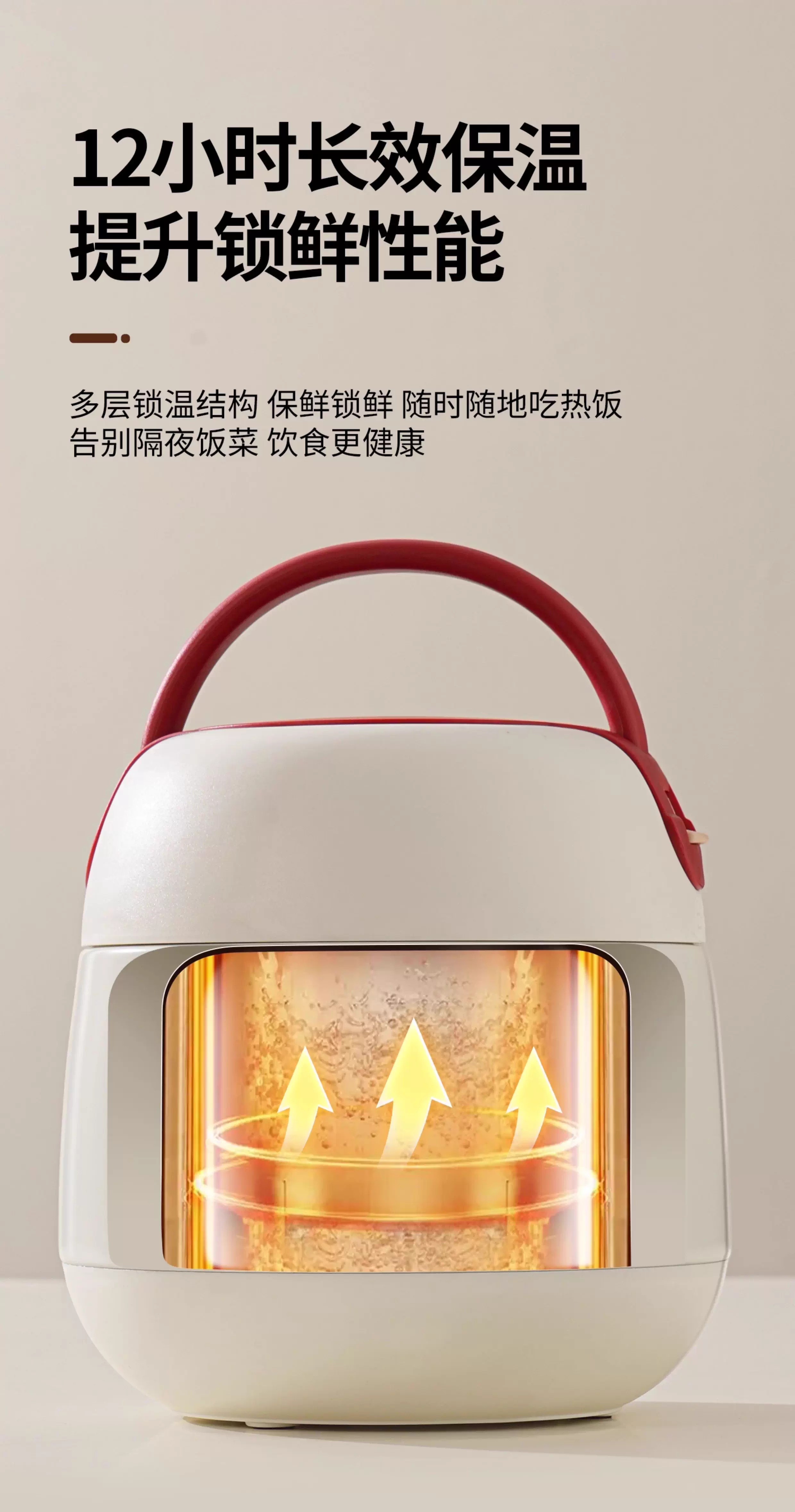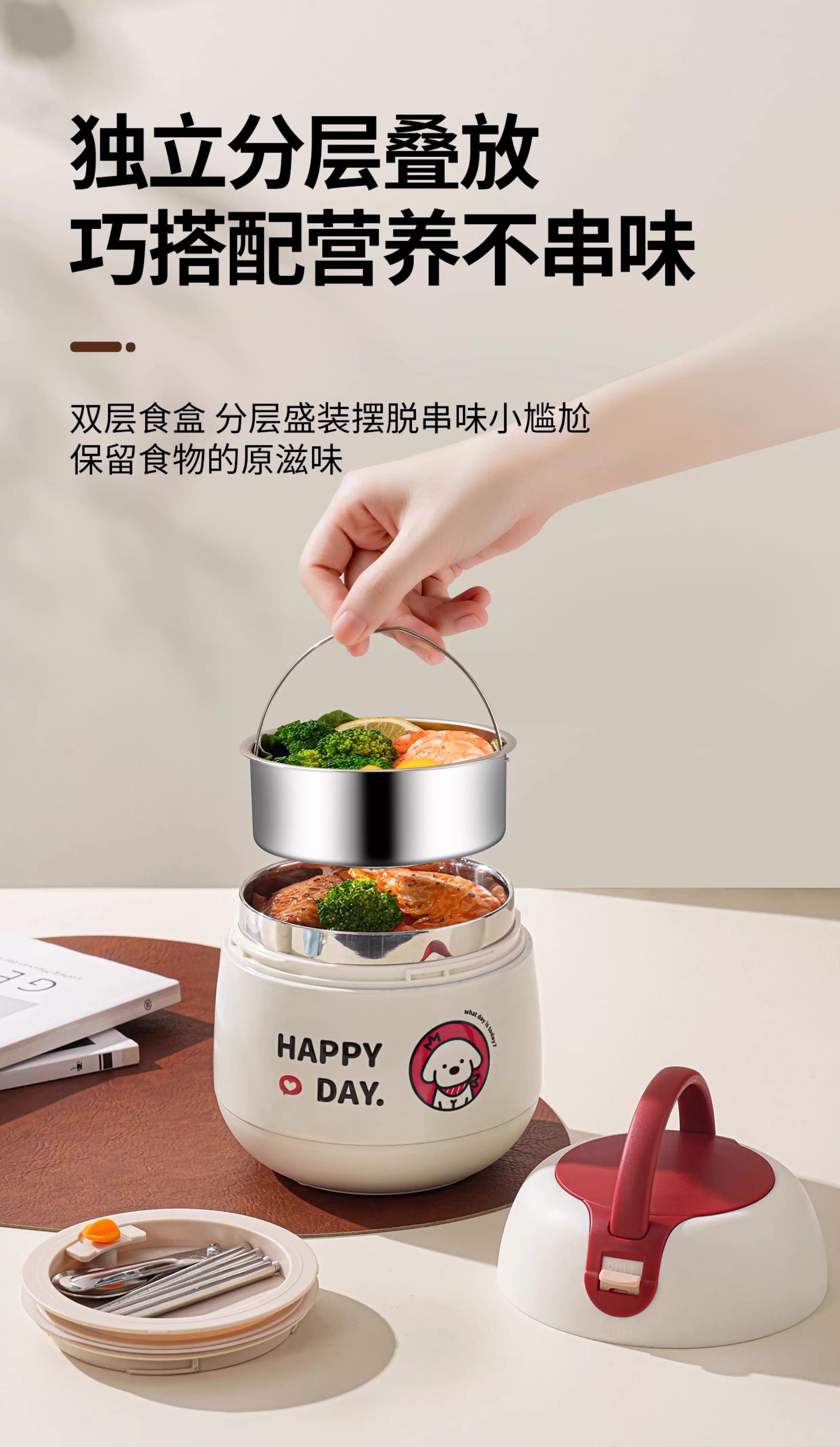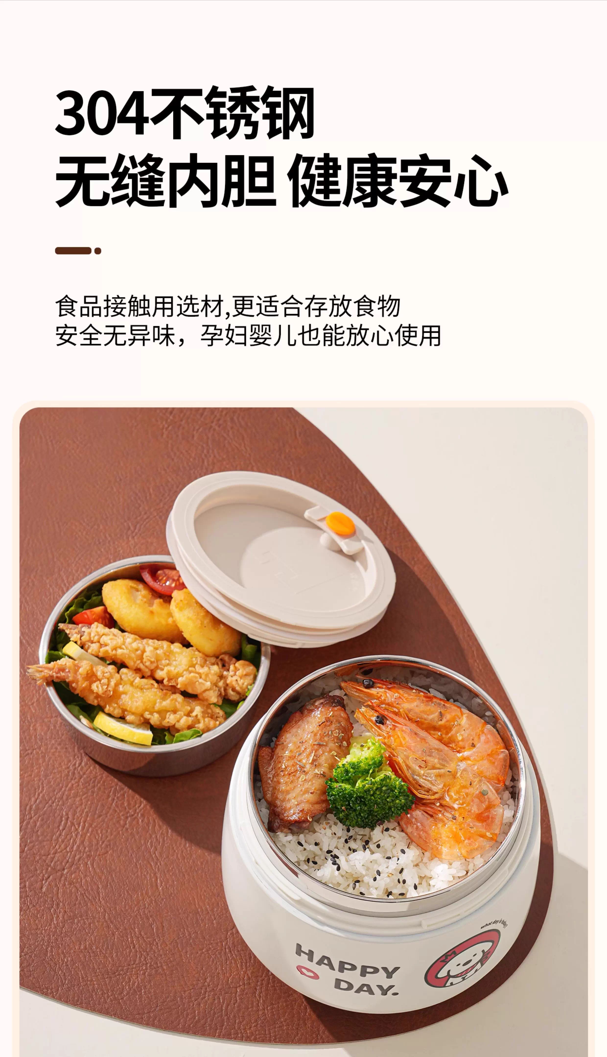 AILUKI日本保温桶饭盒24小时长效保温上班族小学生专用便当带饭提桶神器 白红-小猫1200ml【送折叠筷勺】