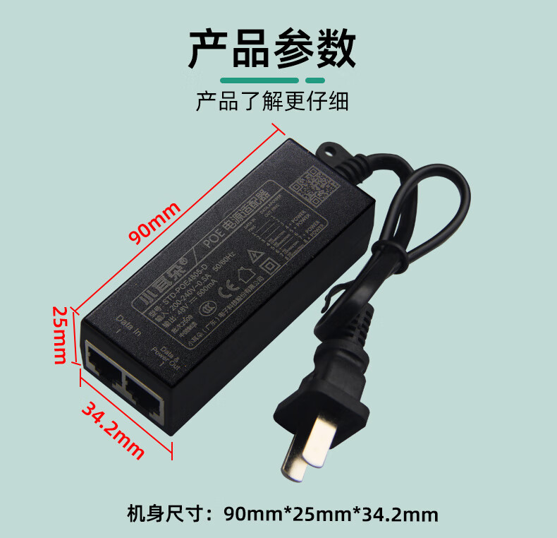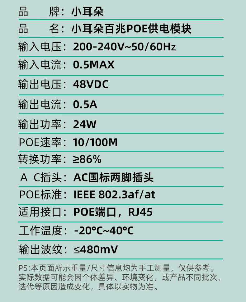小耳朵 监控电源 百兆POE供电电源模块 48V0.35A网桥适配器无线 AP供电器3C认证 百兆POE供电电源模块 【48V0.5A】