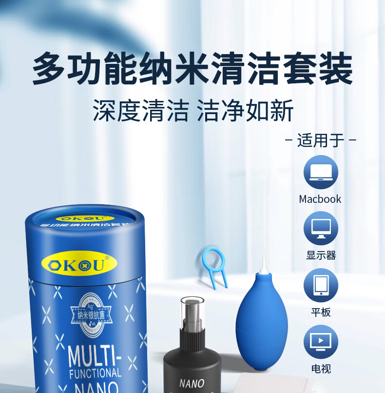 OKOU多功能纳米清洁套装适用于笔记本电脑清洁套装 眼镜手机屏幕清洁平板键盘鼠标显示器充电器