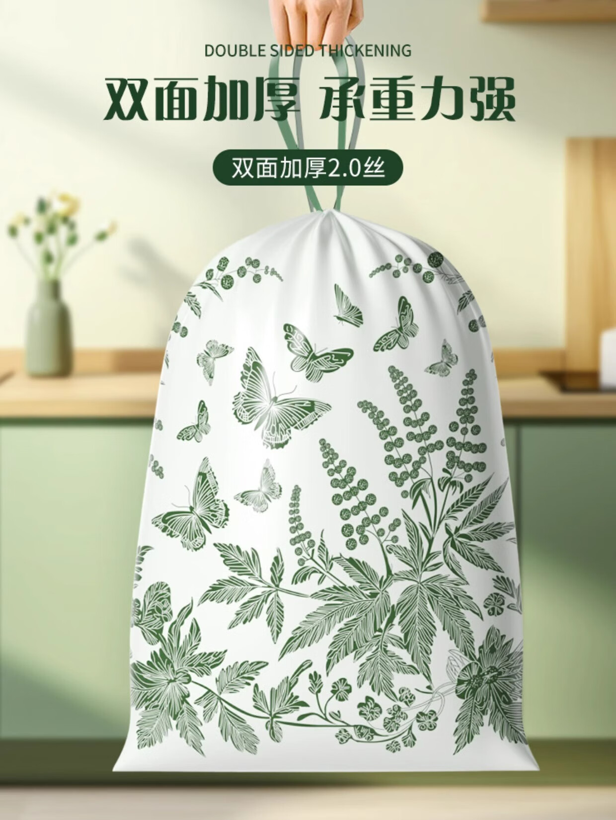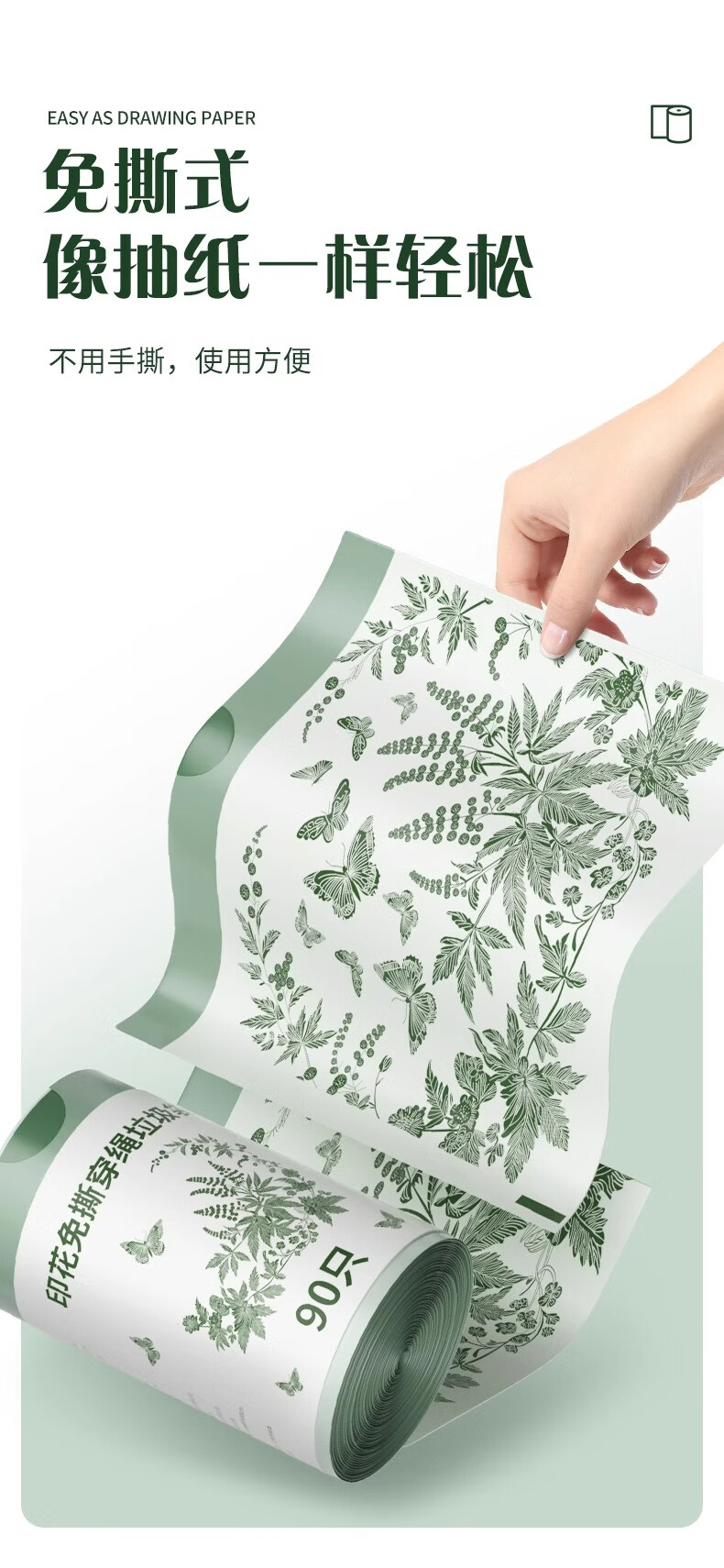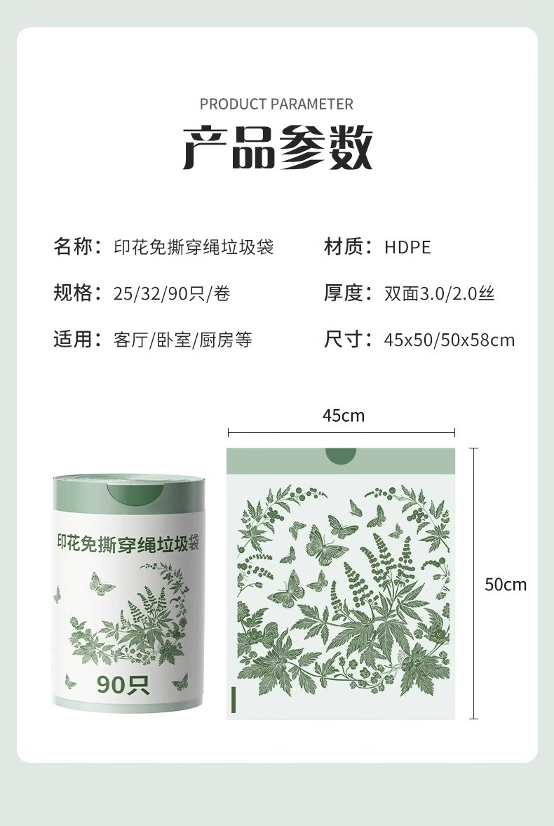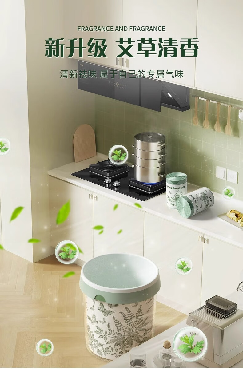 欧凯斯(OKISS)艾草垃圾袋家用免撕手提式厨房特厚加大号抽绳塑料袋45*50cm90只