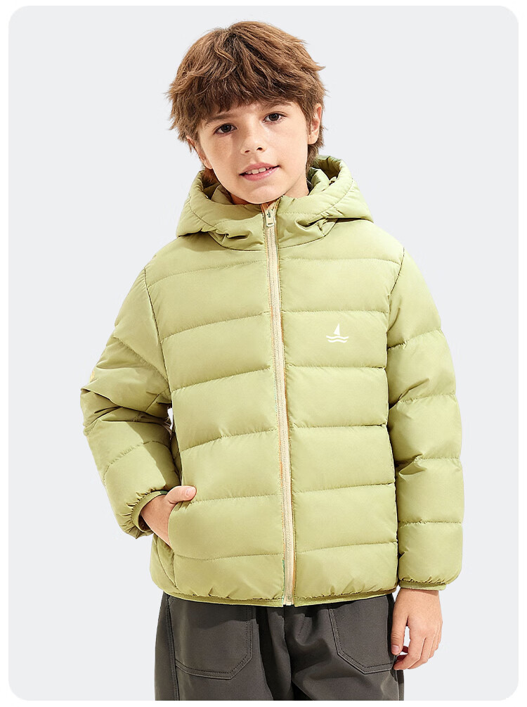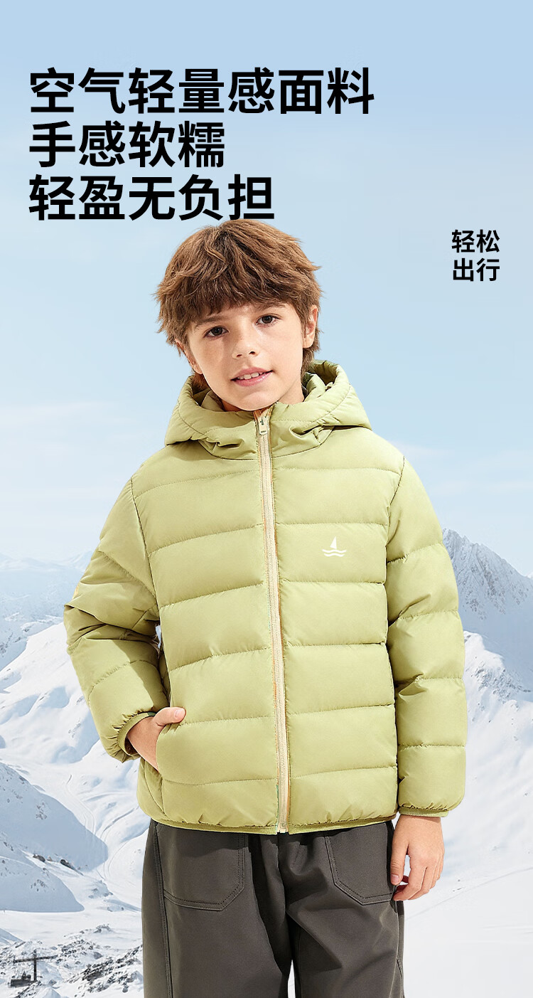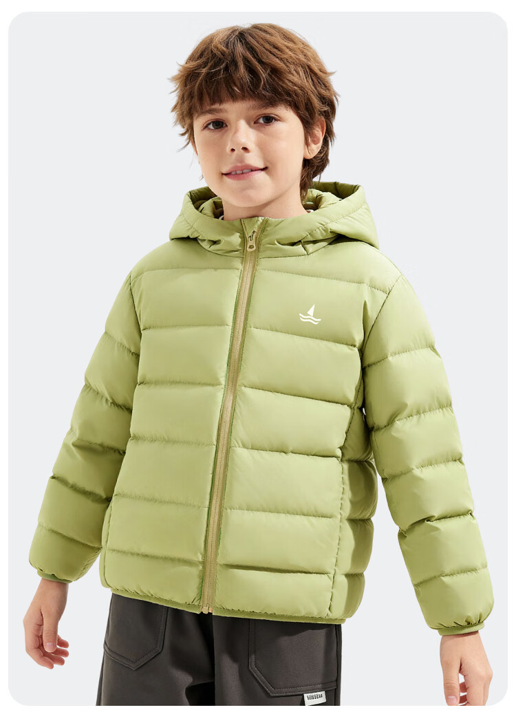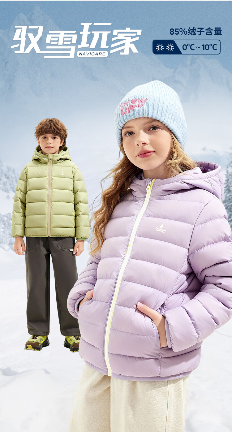 纳维凯尔儿童羽绒服冬季新款男童羽绒服女童外套学生上衣百搭舒适防寒保暖 连帽撞色果绿 110