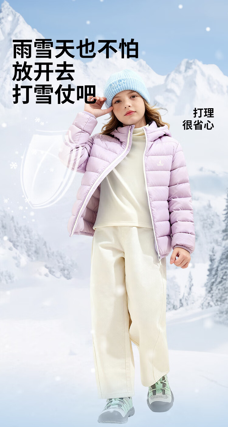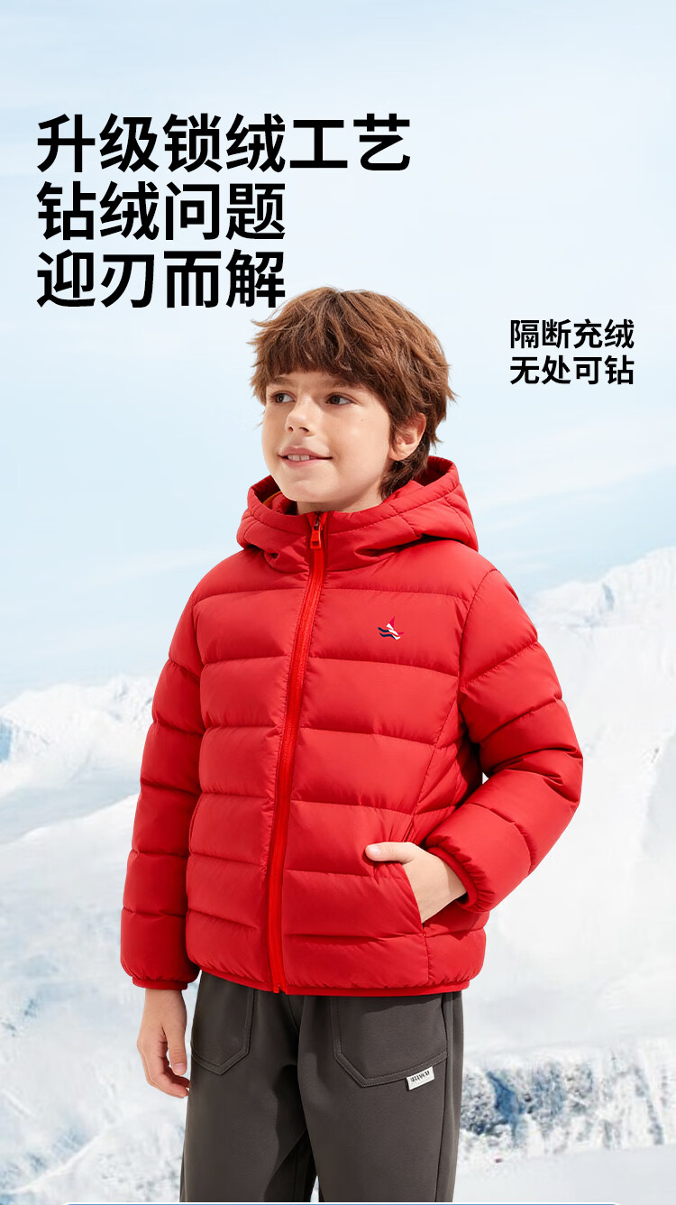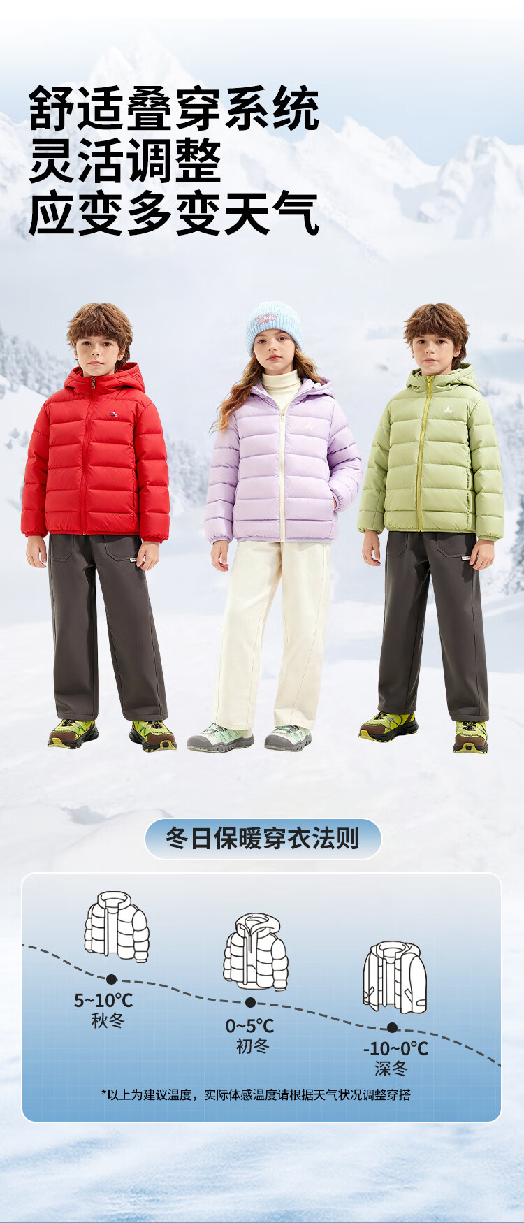 纳维凯尔儿童羽绒服冬季新款男童羽绒服女童外套学生上衣百搭舒适防寒保暖 连帽撞色果绿 110