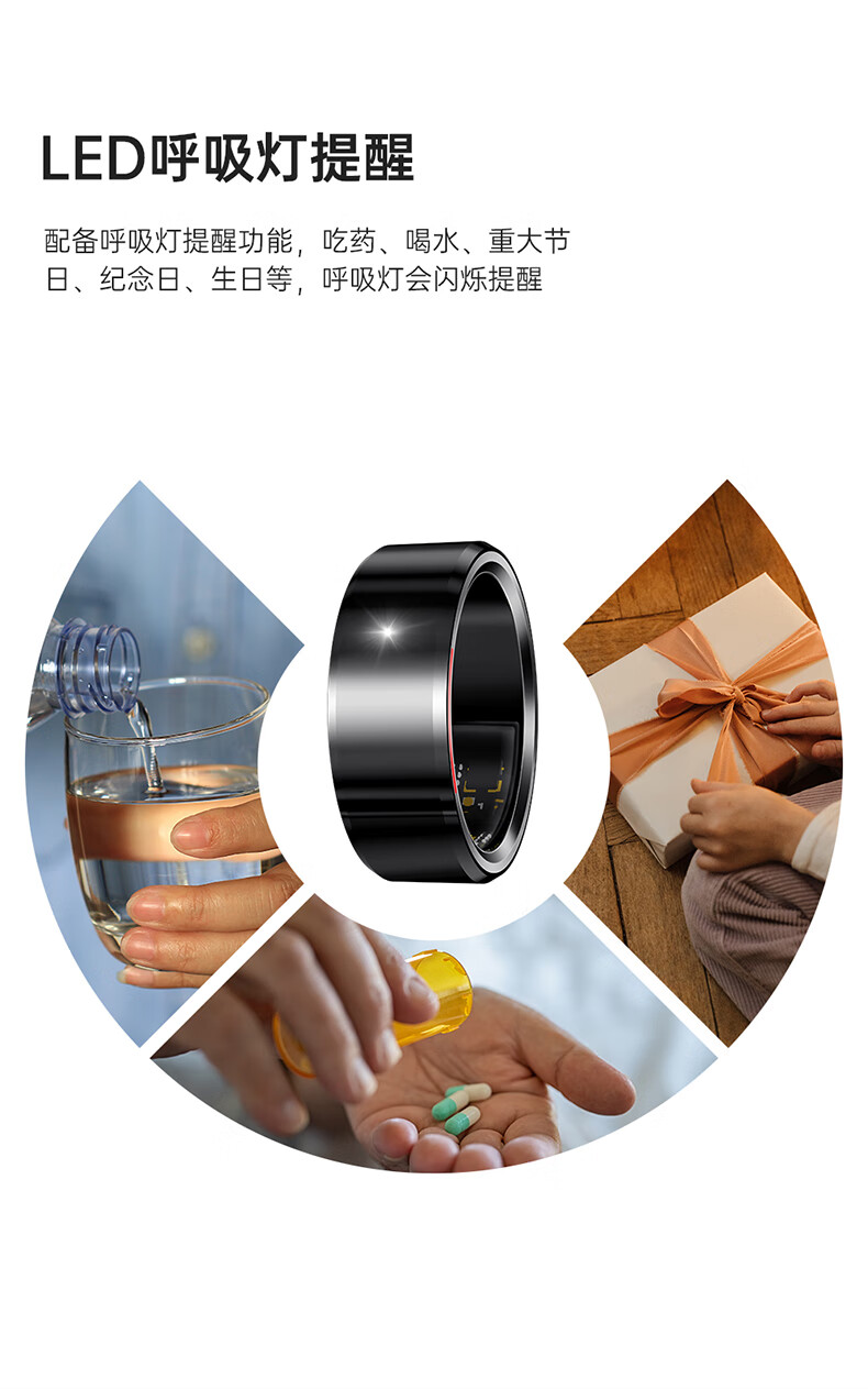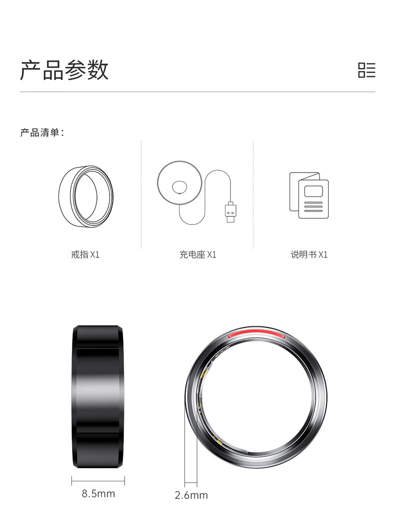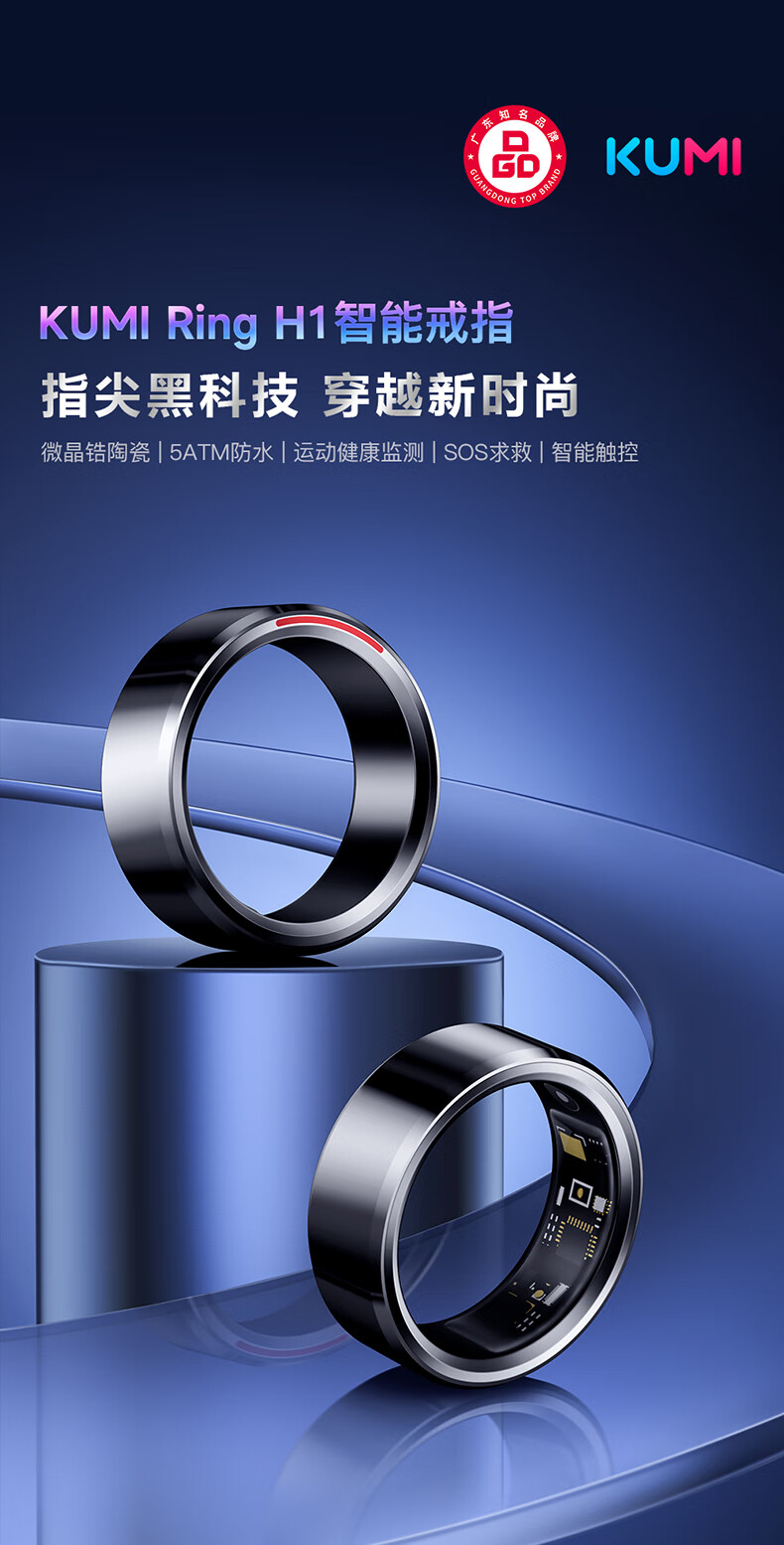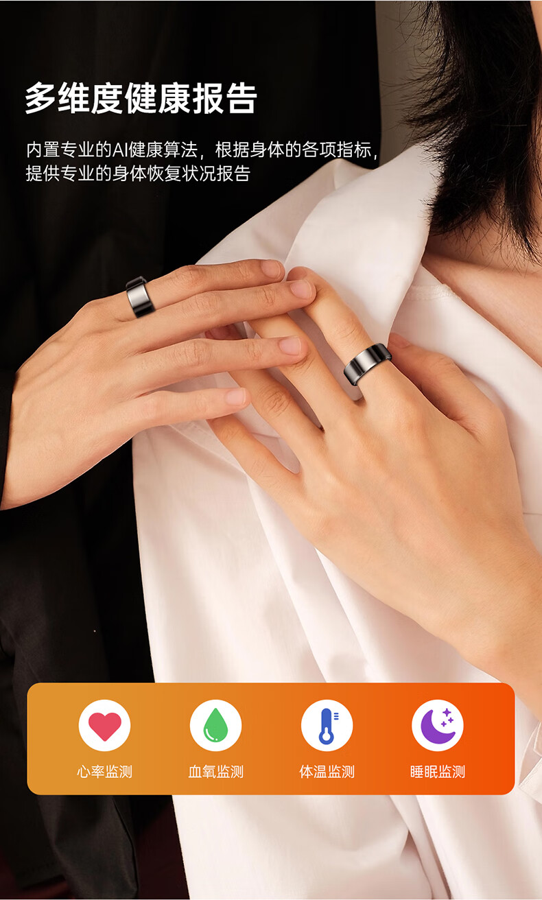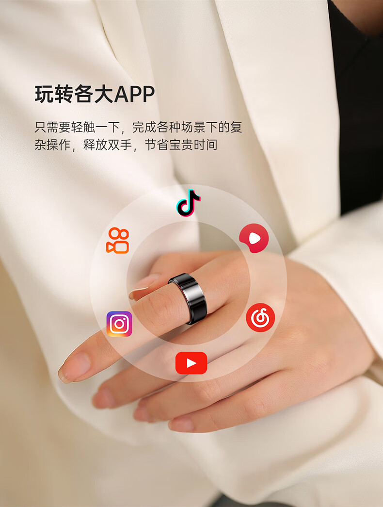 KUMIRing H1 智能指环 运动戒指 50米防水远程拍照心率血氧睡眠健康监测 蓝牙多功能魔戒 黑色12号-XFQ