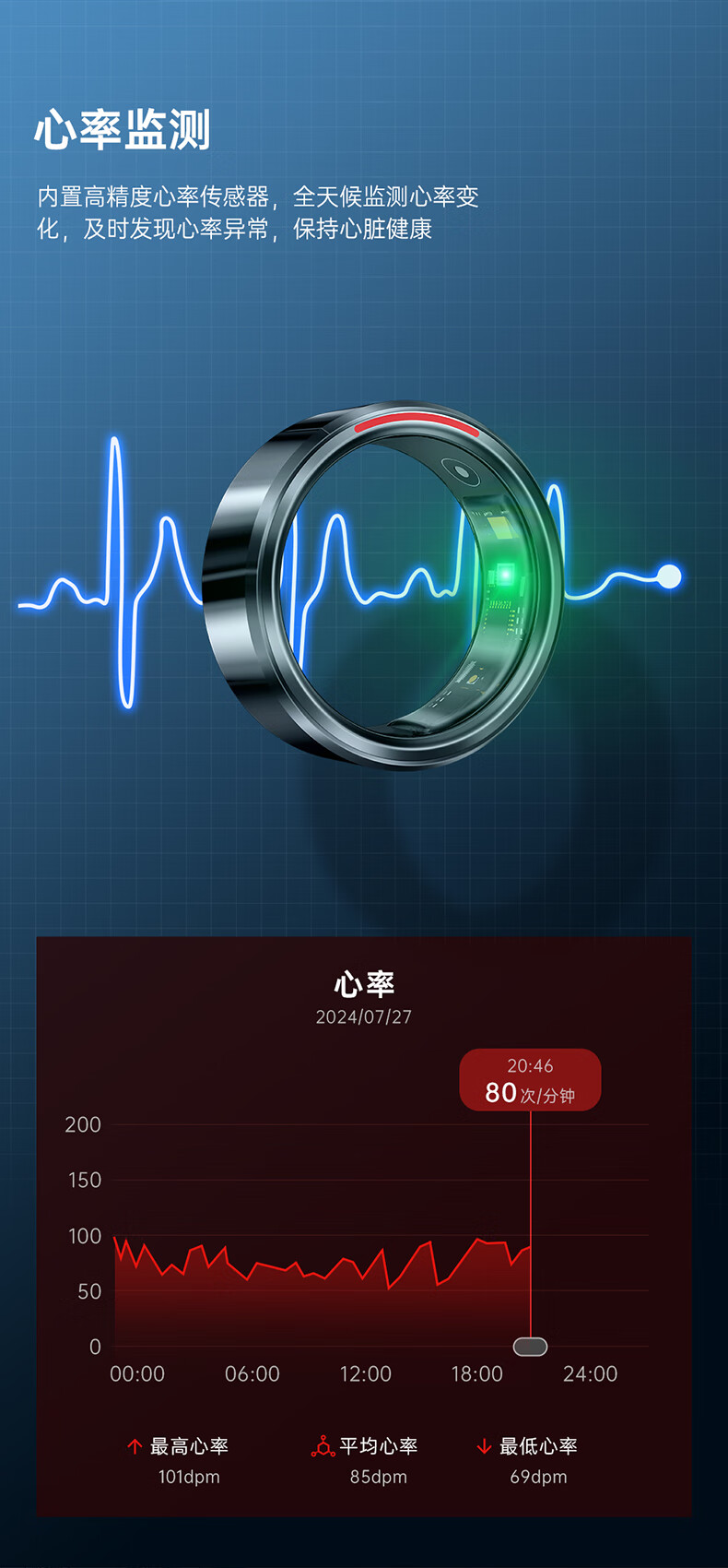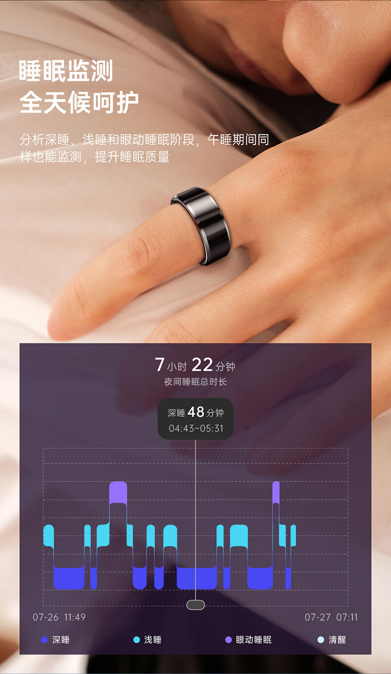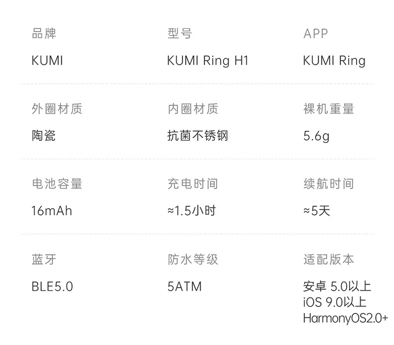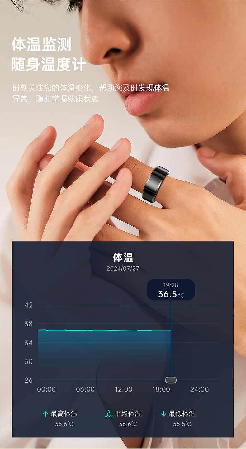 KUMIRing H1 智能指环 运动戒指 50米防水远程拍照心率血氧睡眠健康监测 蓝牙多功能魔戒 黑色12号-XFQ