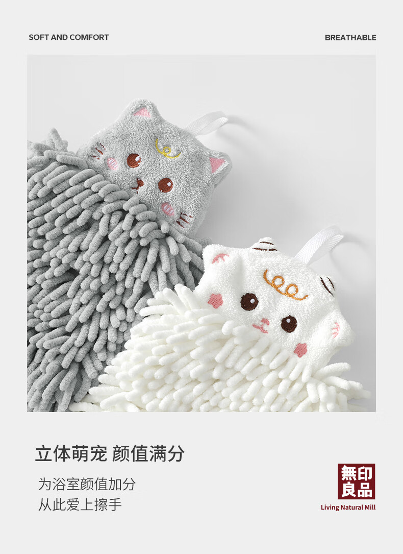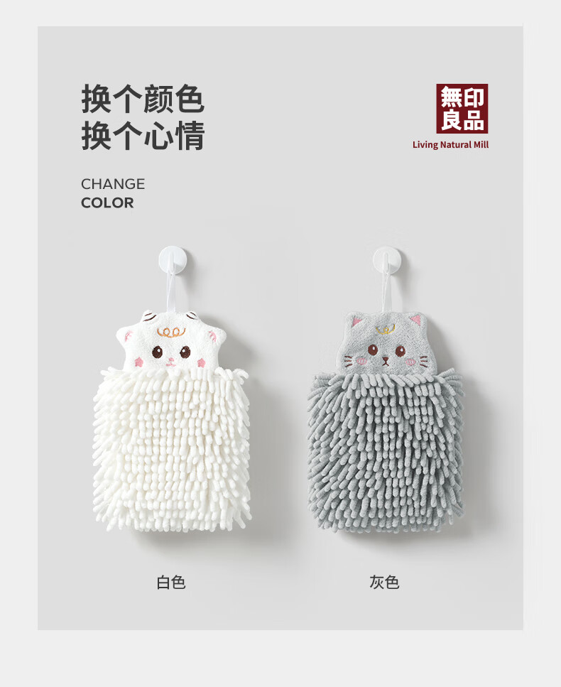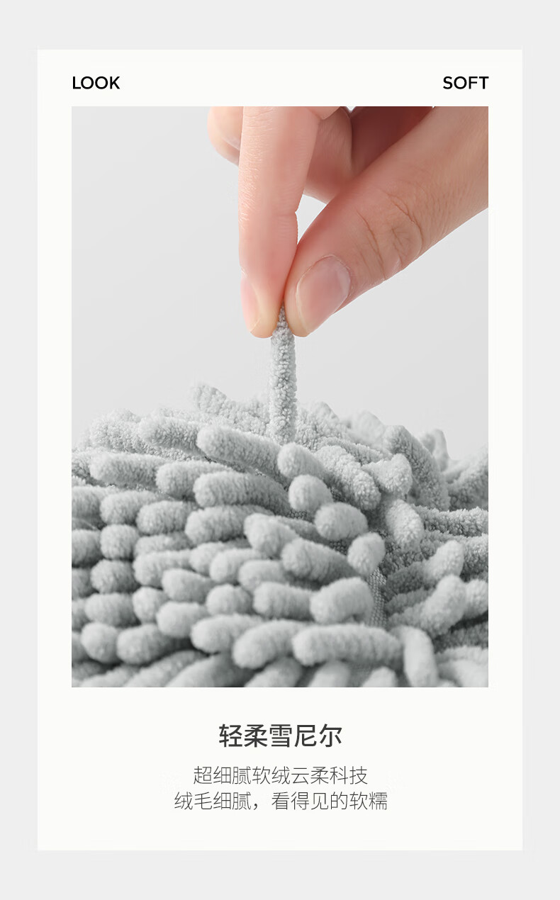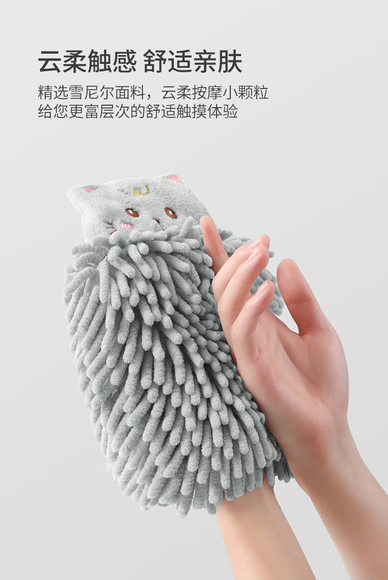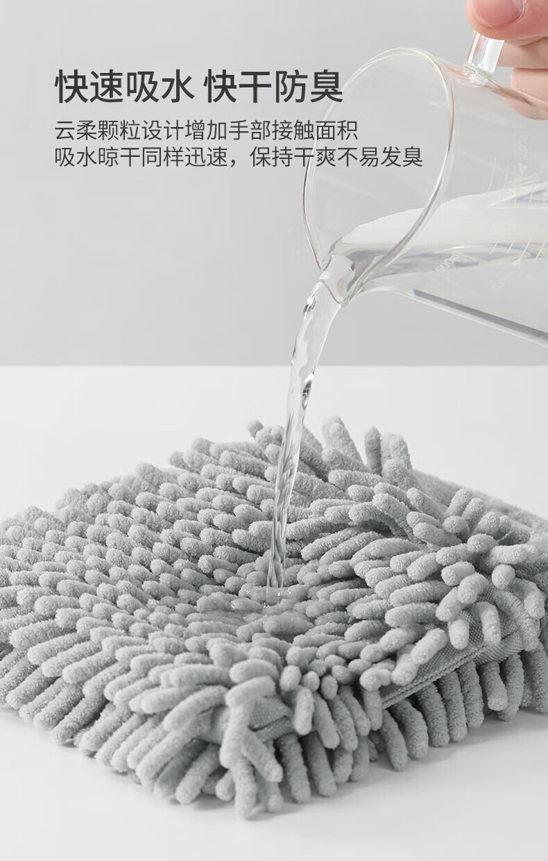 无印良品雪尼尔擦手球2条擦手毛巾厨房卫生间可爱抗菌不易掉毛擦手巾灰+白