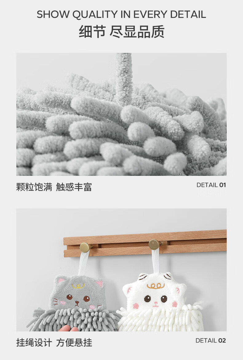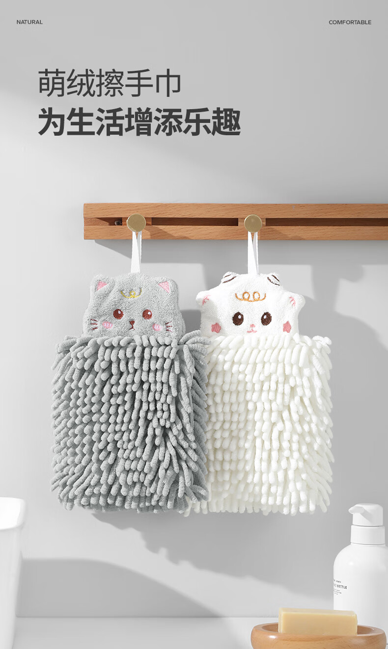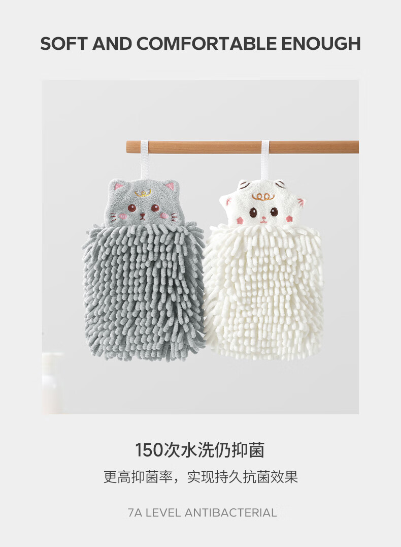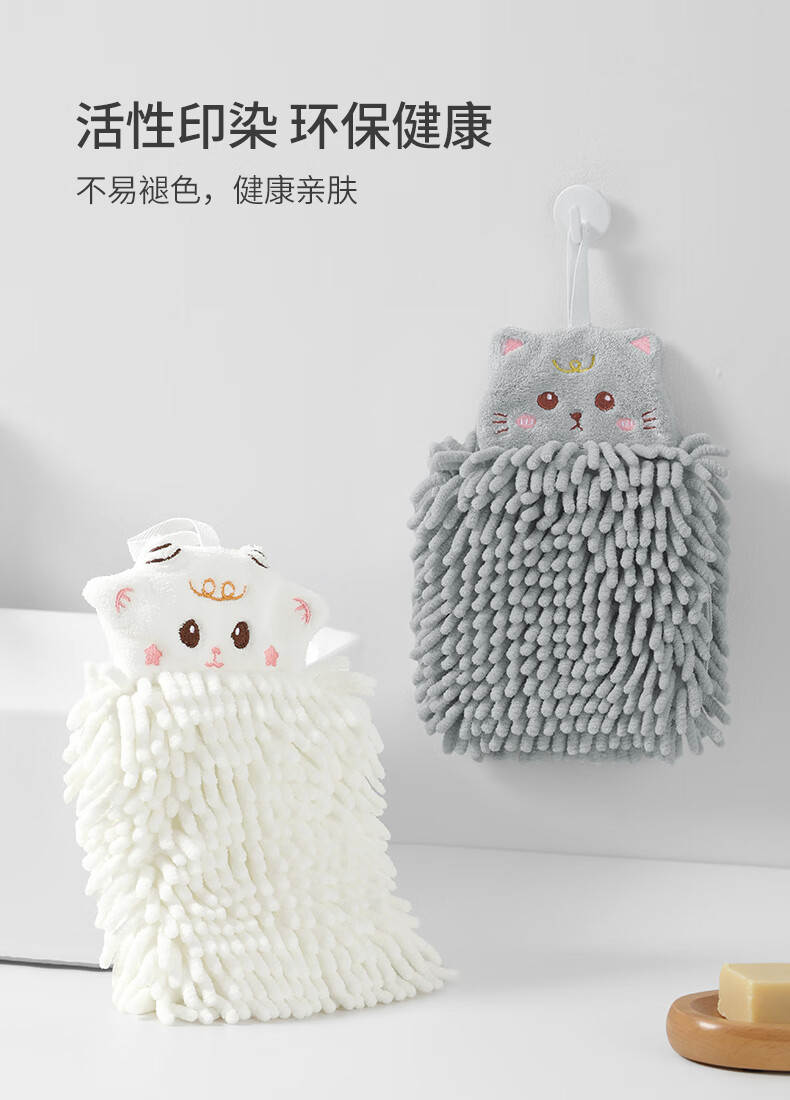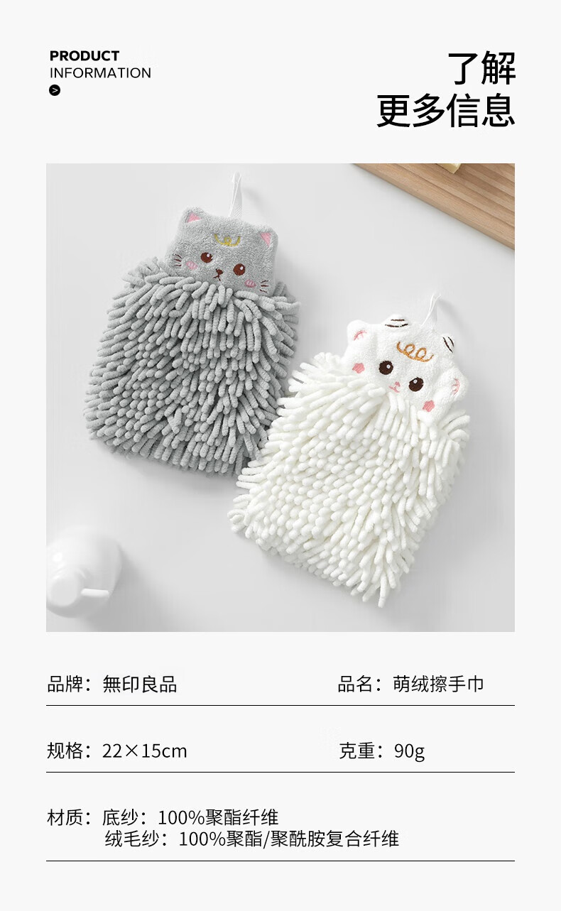 无印良品雪尼尔擦手球2条擦手毛巾厨房卫生间可爱抗菌不易掉毛擦手巾灰+白